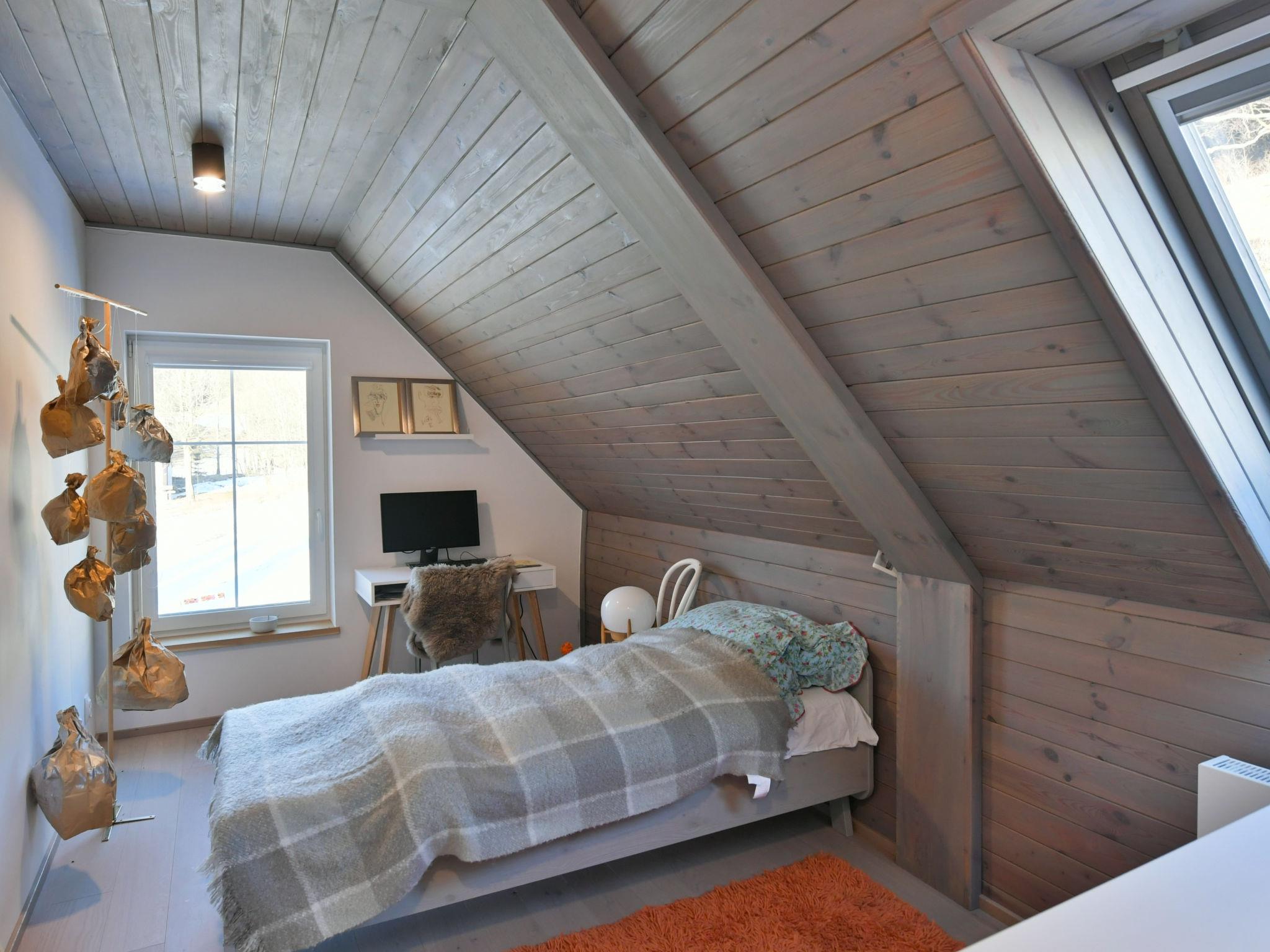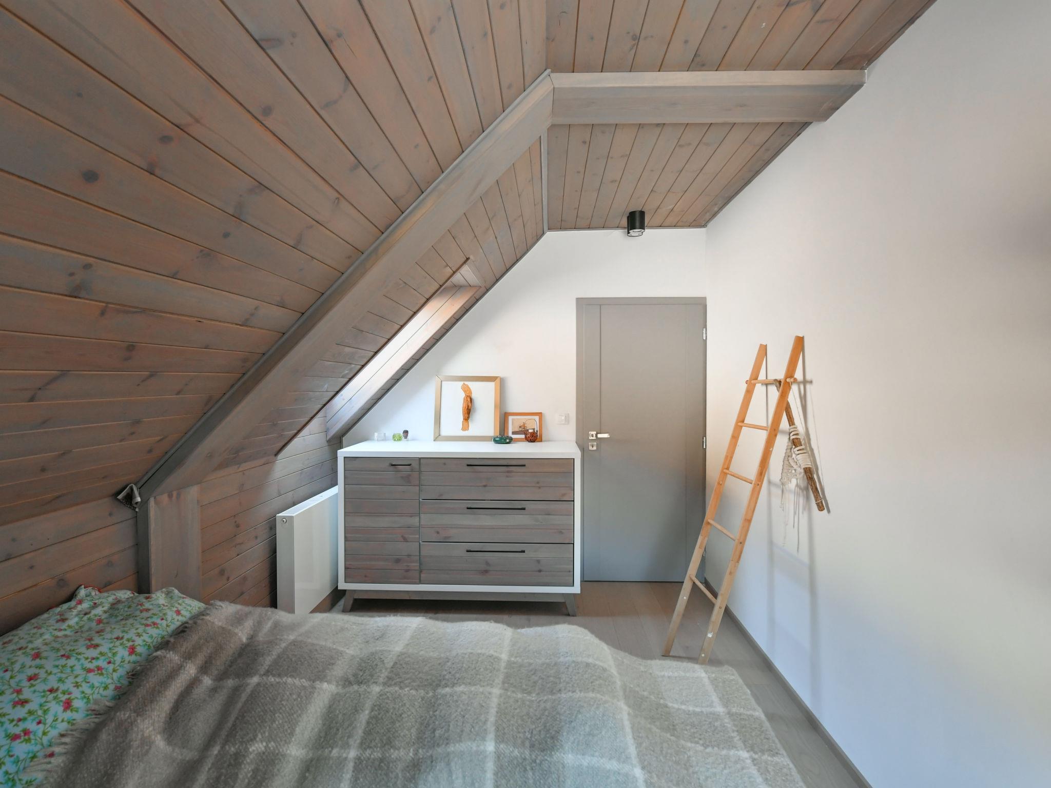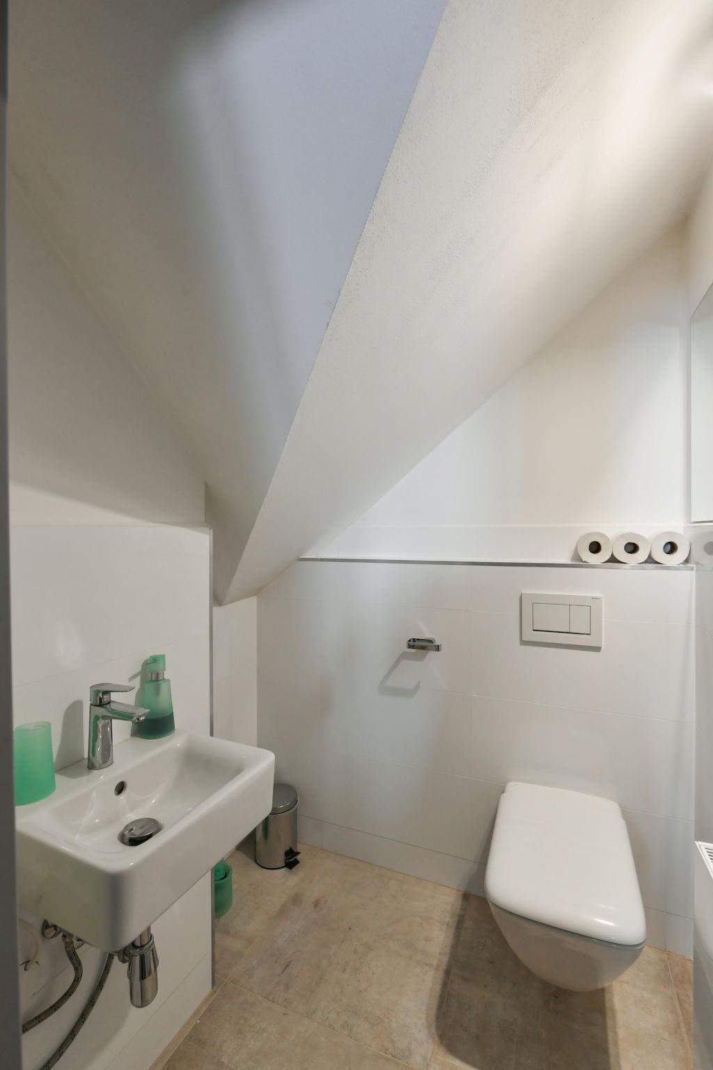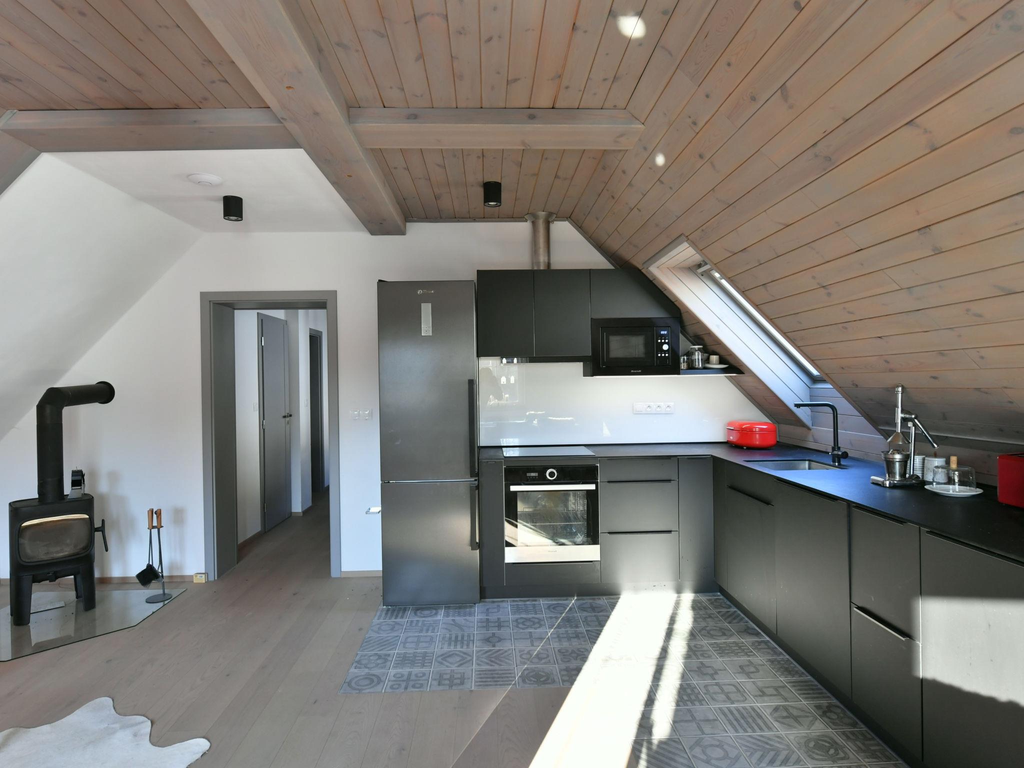 4-room apartment 100 m2, on the top floor. Very beautiful and tasteful furnishings: living/dining room with sloping ceilings with rooflight with dining table, digital TV and wood-burning stove. 2 rooms, each room with 2 beds. 1 room with 1 double bed. Kitchenette (oven, dishwasher, 4 induction hot plates, toaster, microwave, electric coffee machine). Shower/bidet/WC, sep. WC. Beautiful view of the countryside and the forest. Facilities: sauna. Internet (WiFi, free). Parking (2 cars) at the house. Please note: suitable for families. Non-smokers only. Smoke alarm, fire extinguisher.