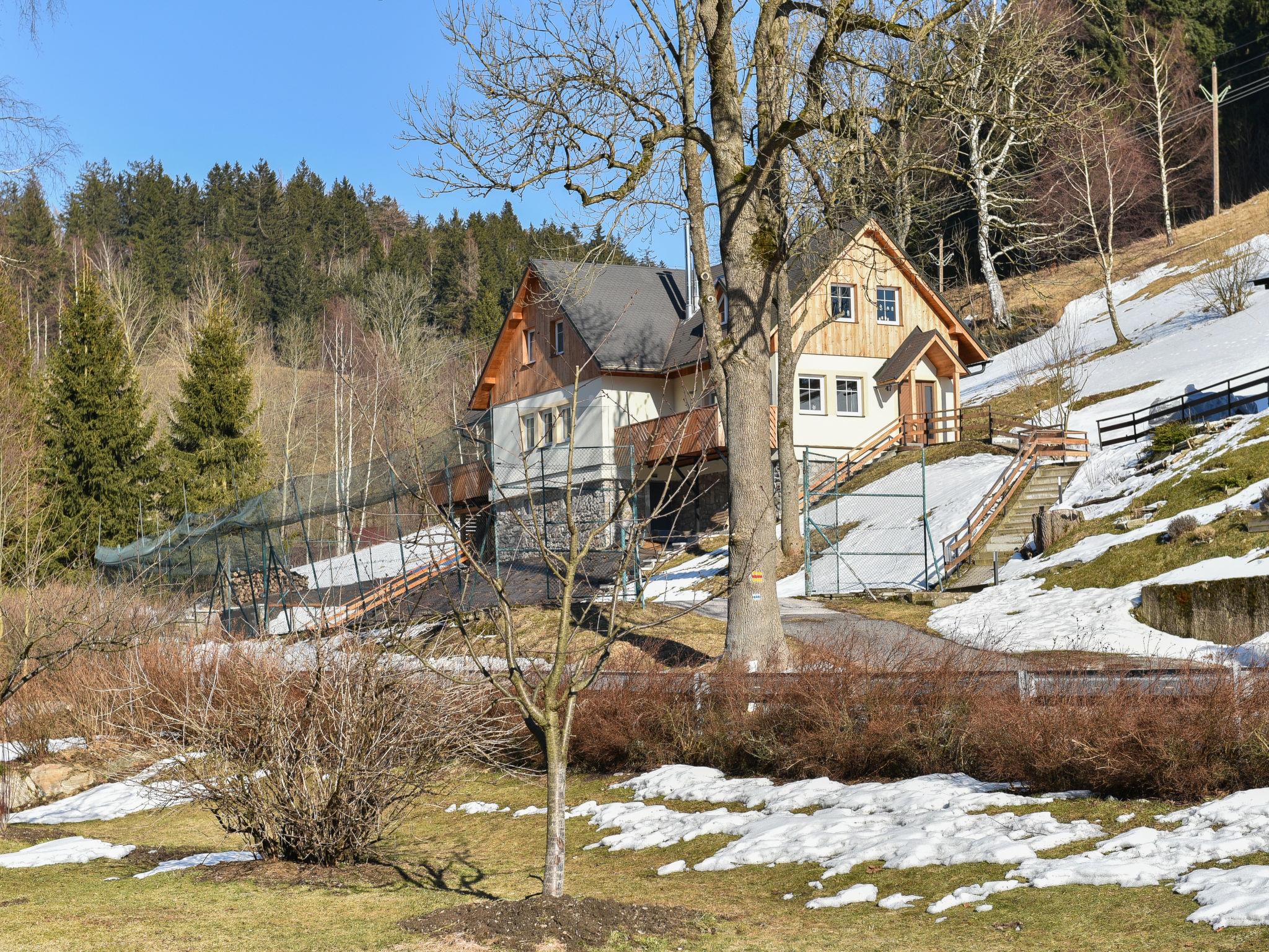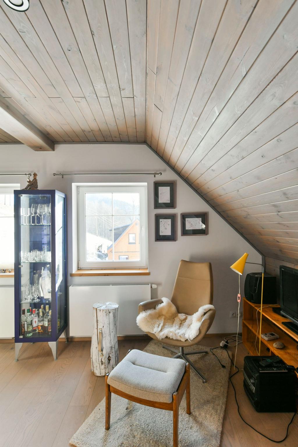 Dolní Lyseciny 2 km from Horní Maršov: Cottage "Dolní Lyseciny", 3 storeys, detached, renovated in 2021. In a secluded, quiet, sunny position, traffic calmed area, 100 m from the edge of the forest, 8 km from the skiing area. For shared use: property 600 m2 with lawn. Patio, fireplace. In the house: storage room for bicycles, central heating system. Parking at the house. Grocery 1.5 km, restaurant 1 km, bus stop "Horní Maršov, most" 2 km, railway station "Svoboda nad Úpou" 6 km, outdoor swimming pool 10 km, indoor swimming pool 8 km. Golf course (18 hole) 10 km, tennis 8 km, riding stable 6 km, ski lift 2 km, chair lift 8 km, gondola lift 8 km, skisport facilities 8 km, slopes 2 km, ski rental 8 km, ski school 8 km, children's ski school 8 km, cross country ski track 1.8 km. Nearby attractions: Muzeum Vápenka Horní Alberice 3 km, hrádek Aichelburg 4 km, Janské Lázne Spa 4 km, Stezka korunami stromu, Pec pod Snežkou, Relaxpark, bobová dráha 10 km, Malá Úpa 12 km, Trutnov 17 km, Vrchlabí 25 km, Zoo Dvur Králové, Adršpach, Karpacz 37 km. Well-known ski regions can easily be reached: Horní Alberice 2 km, Cerná Hora - Pec, Janské Lázne 8 km, Pec pod Snežkou 10 km. Hiking paths: Staré dobré lázenské cesty, Krkonošská magistrála.