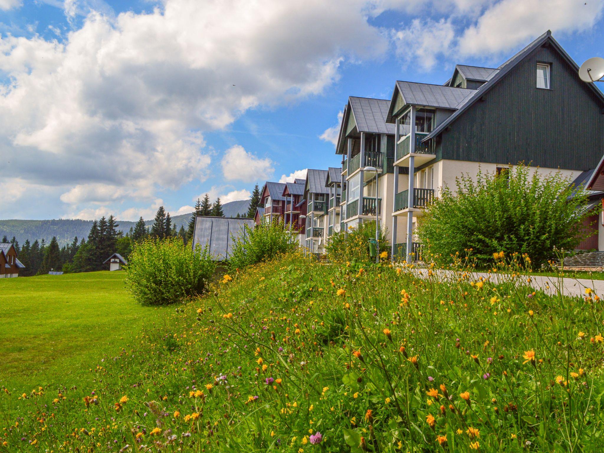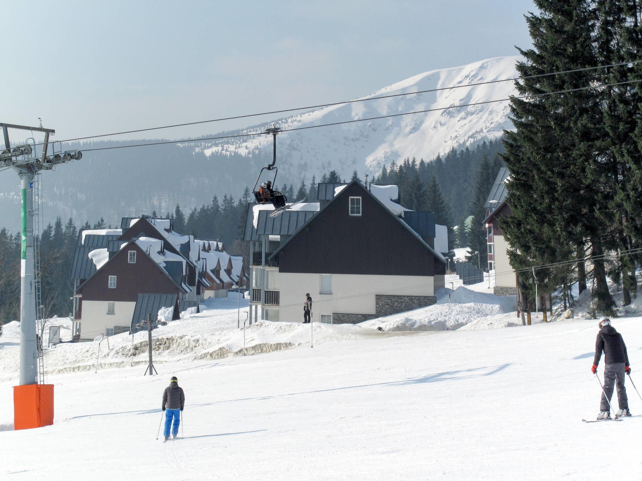 Modern, beautiful apartment block "Horní Mísecky", 1'000 m a.s.l.. 10 m from the centre of Horní Mísecky, 9 km from the centre of Vítkovice, 20 km from the centre of Jilemnice, 50 m from the skiing area. For shared use: property. In the house: storage room for bicycles, storage room for skis. Roofed, parking. Shop 9 km, supermarket 20 km, restaurant 200 m, bus stop "Vítkovice, Horní Mísecky" 200 m. Walking paths from the house 50 m, cycle lane, chair lift 500 m, slopes 50 m, ski rental, ski school 500 m, children's ski school, cross country ski track 100 m, children's playground 500 m. Nearby attractions: Mohyla Hance a Vrbaty, Zlaté návrší 3 km, Pancavský vodopád, Pramen Labe 5 km, Jilemnice 20 km, Harrachov 35 km. Well-known ski regions can easily be reached: Horní Mísecky, Špindleruv Mlýn, Rokytnice nad Jizerou. Well-known lakes can easily be reached: Vodní nádrž Labská. Hiking paths: Krkonošská magistrála, Bucharova cesta.