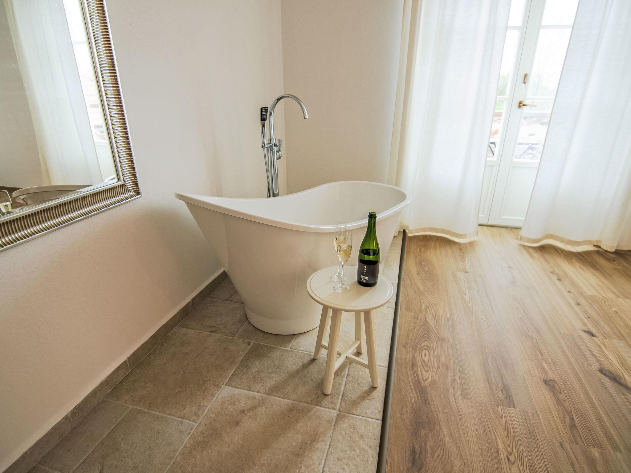 "Zvonková", 6-room apartment 188 m2 on 3 levels, on the ground floor. Spacious and bright, very beautiful and stylish furnishings: living/dining room with 1 sofabed and dining nook. 1 room with 1 double bed. Kitchenette (oven, 4 ceramic glass hob hotplates, kettle, electric coffee machine). Exit to the garden. Shower/WC. Upper floor: 1 room with 1 double bed and bathroom. Exit to the terrace. 1 room with 1 bed and 1 double bed. Bath/shower/WC. Top floor: 1 open room with 3 beds. 1 open room with 1 french bed (140 cm, length 200 cm), separate WC. Terrace. Terrace furniture. Facilities: baby cot. Internet (WiFi, free). Suitable for families. Maximum 1 pet/ dog allowed.