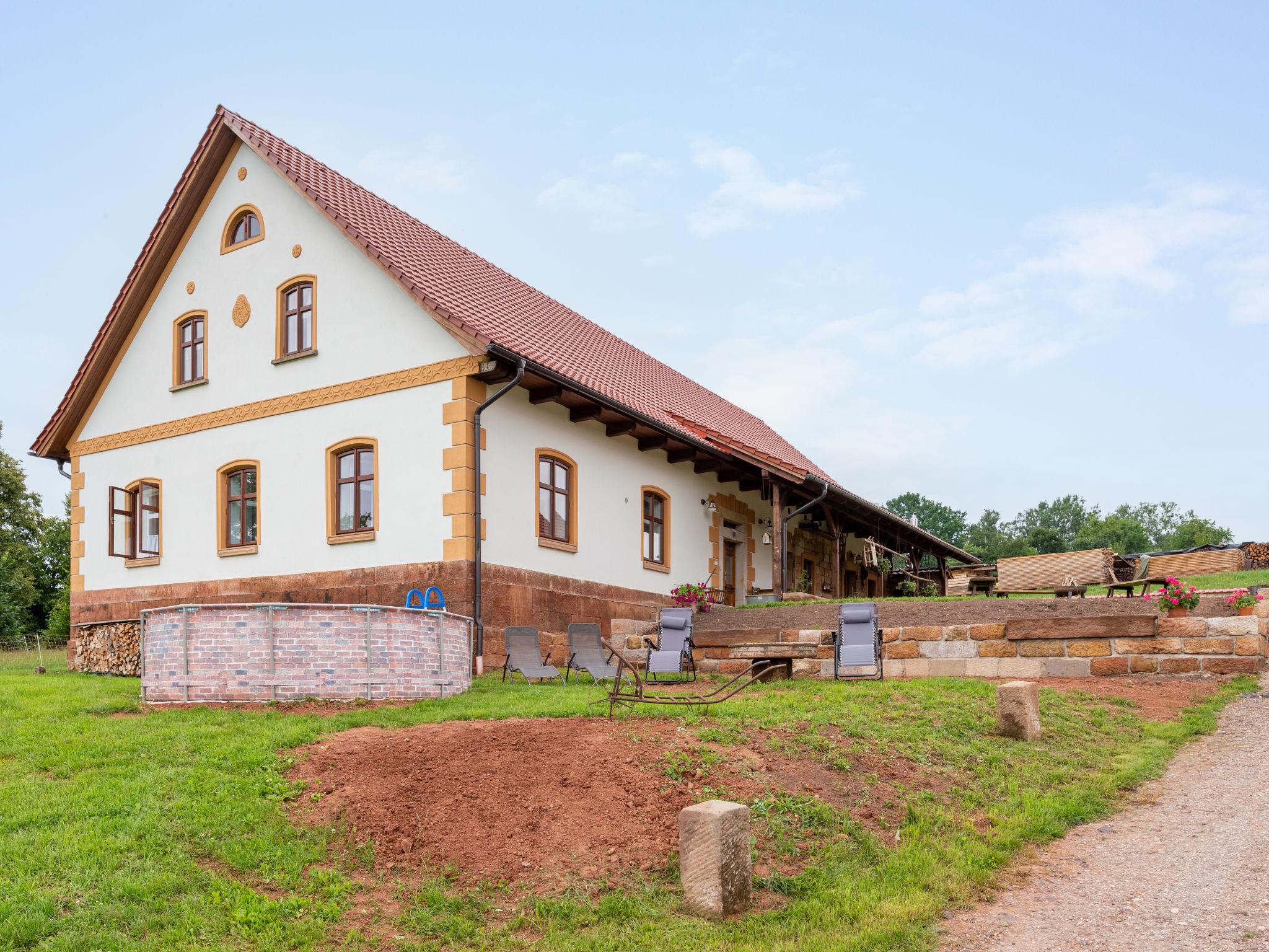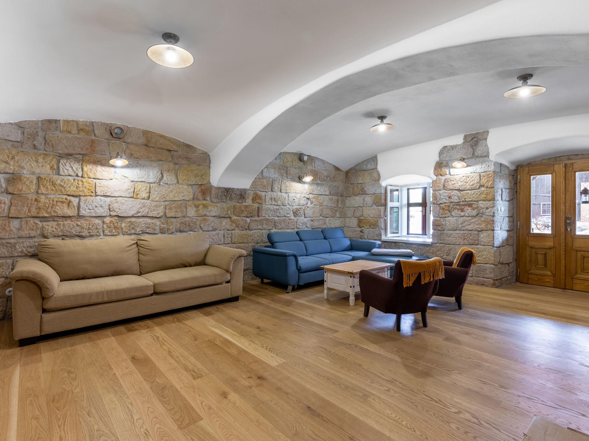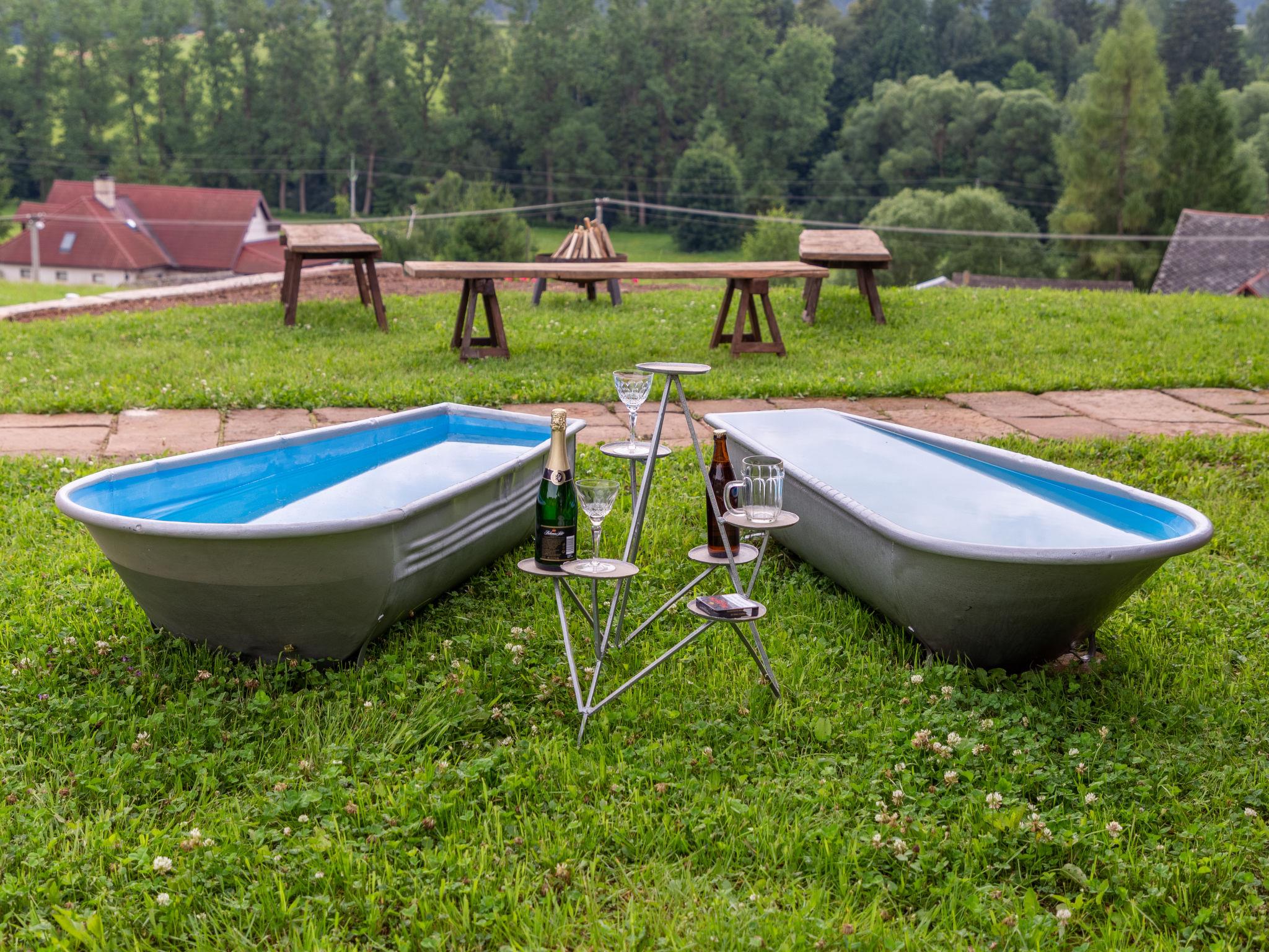 Dolní Olešnice 7 km from Hostinné: Luxurious farmhouse detached, built in 1868, renovated in 2021. Private: property, swimming pool (2 x 4 m, depth 120 cm, seasonal availability: 01.Jun. - 30.Sep.). Terrace, garden furniture, barbecue, fireplace, children's playground (sandbox). In the house: WiFi, table tennis, billiard table, table football, trampoline, washing machine. Steep motor access to 50 m from the grounds. Parking at the house. Shop 5 km, restaurant 4 km, bus stop "Dolní Olešnice, Nové Zámky" 3 km, railway station "Chotevice" 5 km. Nearby attractions: Zvicina 10 km, Vrchlabí 17 km, Trutnov 19 km, Jilemnice 20 km, Janské Lázne 25 km. Well-known ski regions can easily be reached: Knežický vrch-Vrchlabí 19 km, Mladé Buky 25 km, Cerná hora-Pec pod Snežkou 36 km. Well-known lakes can easily be reached: Dolce 18 m. Hiking paths: Les Království 12 km. Please note: animals in the neighbourhood. Separate grass pitch available including goals and net for ball games.