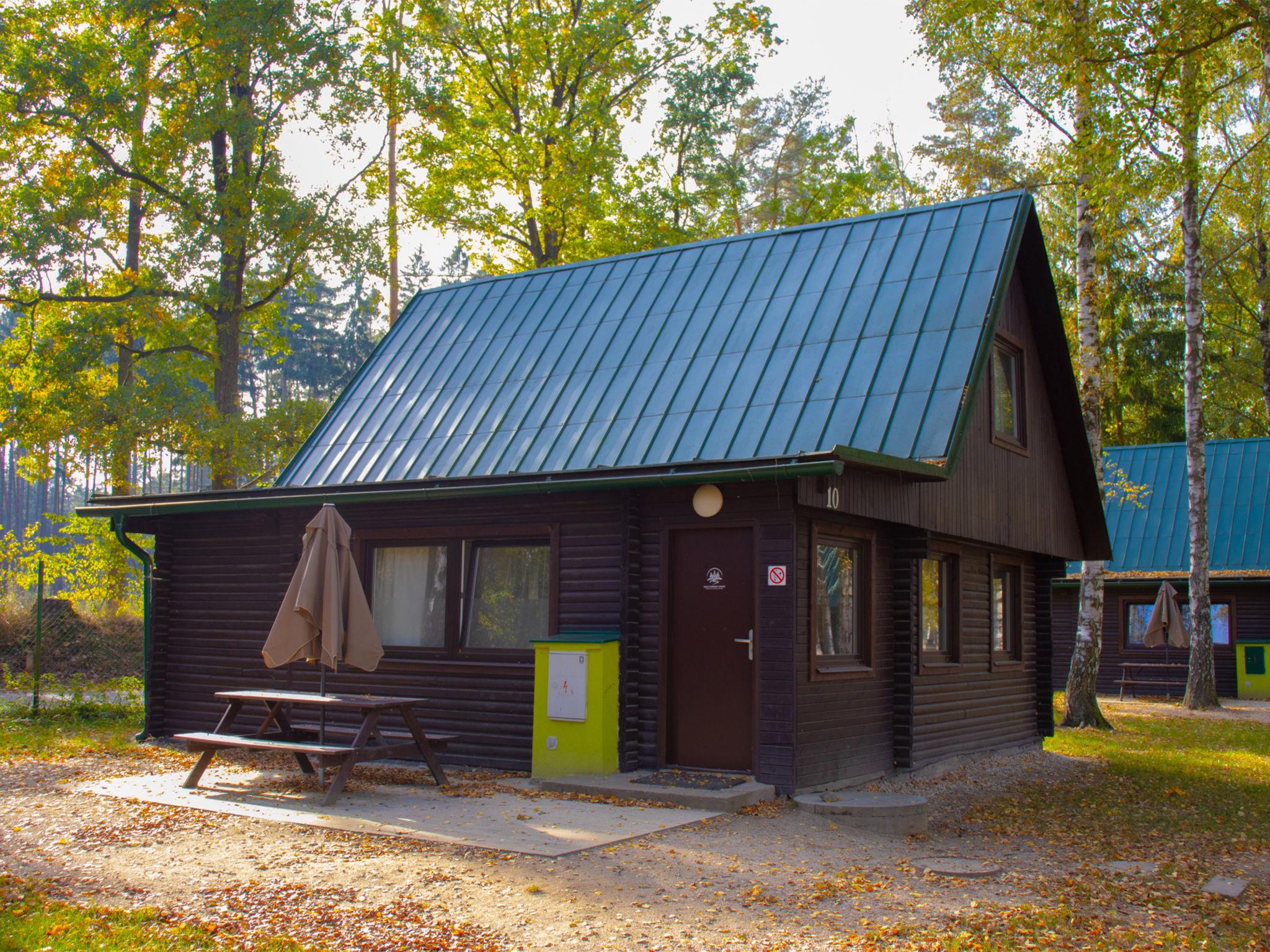 Child friendly holiday village "Kemp Stríbrný rybník". 25 houses in the resort. In the district of Malšova Lhota, 5 km from the centre of Hradec Králové, along the wooded area, on the lake. For shared use: property. Table tennis, boccia (extra), beach volleyball, arbour, barbecue, fireplace, children's playground, bathing jetty. In the complex: reception, restaurant, bar, bistro, playroom, washing machine (for shared use, extra), bicycle rental. Parking (extra) on the premises. Bus stop "Stríbrný rybník" 700 m, railway station "Blešno" 5 km, sandy beach, bathing lake 50 m. Sports harbour, minigolf, sports centre, walking paths from the house, cycle lane, fishing possibilities 50 m. Nearby attractions: Adventure park Firmsport, letní kino, tutistický vlácek do lesa, Stezka siluet, Rytírské hradište 3 km, Park Na Vetvi 3 km, Obory se zverí 4.2 km, Obrí akvárium, Botanická zahrada 4.7 km. Hiking paths: Pohádková, Vodnická stezka 6 km, Planetárium, planetární stezka 8.4 km, Zoopark Stežery, Rozhledna Milír 15 km. Please note: entertainment in the season. Suitable for families. Fishing [permit required]. The photograph shows a typical example.