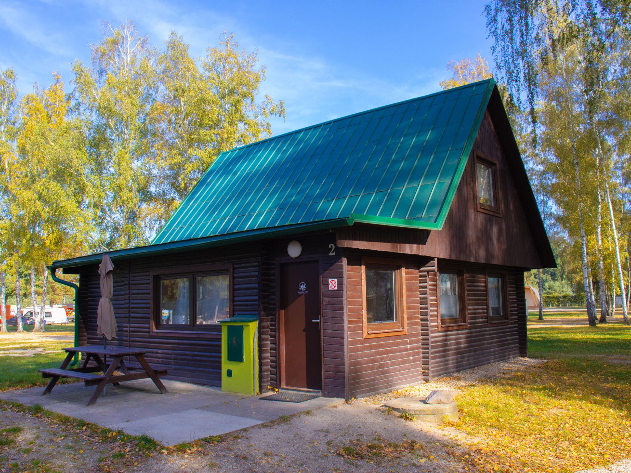 Child friendly holiday village "Kemp Stríbrný rybník". 25 houses in the resort. In the district of Malšova Lhota, 5 km from the centre of Hradec Králové, along the wooded area, on the lake. For shared use: property. Table tennis, boccia (extra), beach volleyball, arbour, barbecue, fireplace, children's playground, bathing jetty. In the complex: reception, restaurant, bar, bistro, playroom, washing machine (for shared use, extra), bicycle rental. Parking (extra) on the premises. Bus stop "Stríbrný rybník" 700 m, railway station "Blešno" 5 km, sandy beach, bathing lake 50 m. Sports harbour, minigolf, sports centre, walking paths from the house, cycle lane, fishing possibilities 50 m. Nearby attractions: Adventure park Firmsport, letní kino, tutistický vlácek do lesa, Stezka siluet, Rytírské hradište 3 km, Park Na Vetvi 3 km, Obory se zverí 4.2 km, Obrí akvárium, Botanická zahrada 4.7 km. Hiking paths: Pohádková, Vodnická stezka 6 km, Planetárium, planetární stezka 8.4 km, Zoopark Stežery, Rozhledna Milír 15 km. Please note: entertainment in the season. Suitable for families. Fishing [permit required]. The photograph shows a typical example.