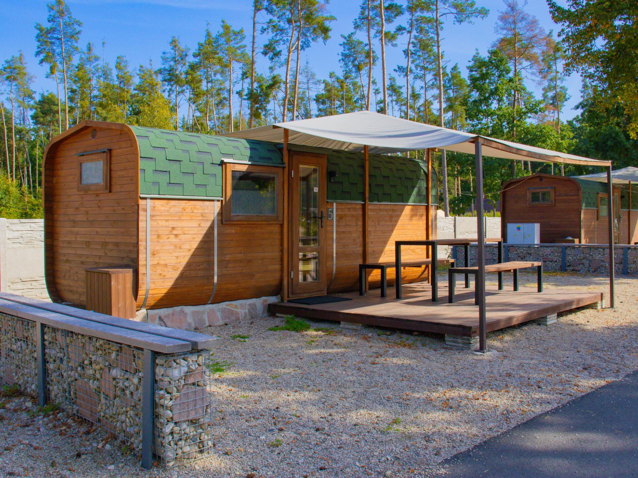 2-room mobile home. 1 room with 1 double bed and satellite TV. Kitchen-/living room (2 ceramic glass hob hotplates, kettle, microwave) with 1 x 2 bunk beds. Shower/WC. Heating, air-conditioning. Terrace furniture. Facilities: Internet (WiFi, free). Maximum 2 pets/ dogs allowed.