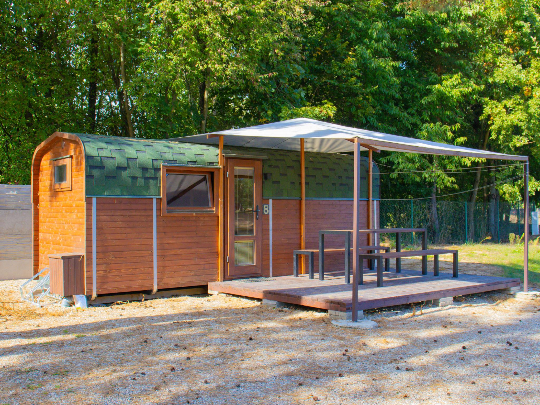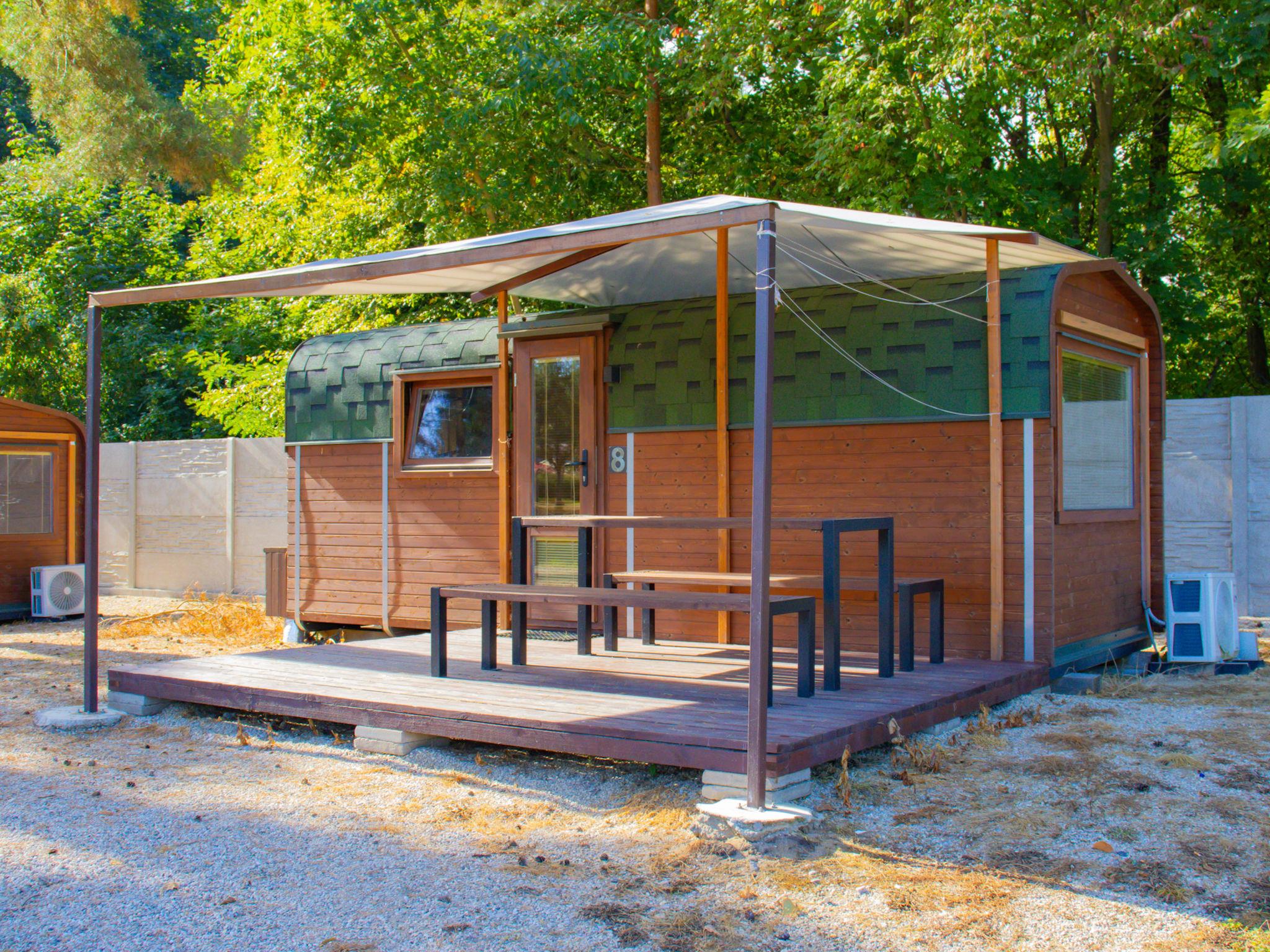 2-room mobile home. 1 room with 1 double bed and satellite TV. Kitchen-/living room (2 ceramic glass hob hotplates, kettle, microwave) with 1 x 2 bunk beds. Shower/WC. Heating, air-conditioning. Terrace furniture. Facilities: Internet (WiFi, free). Maximum 2 pets/ dogs allowed.