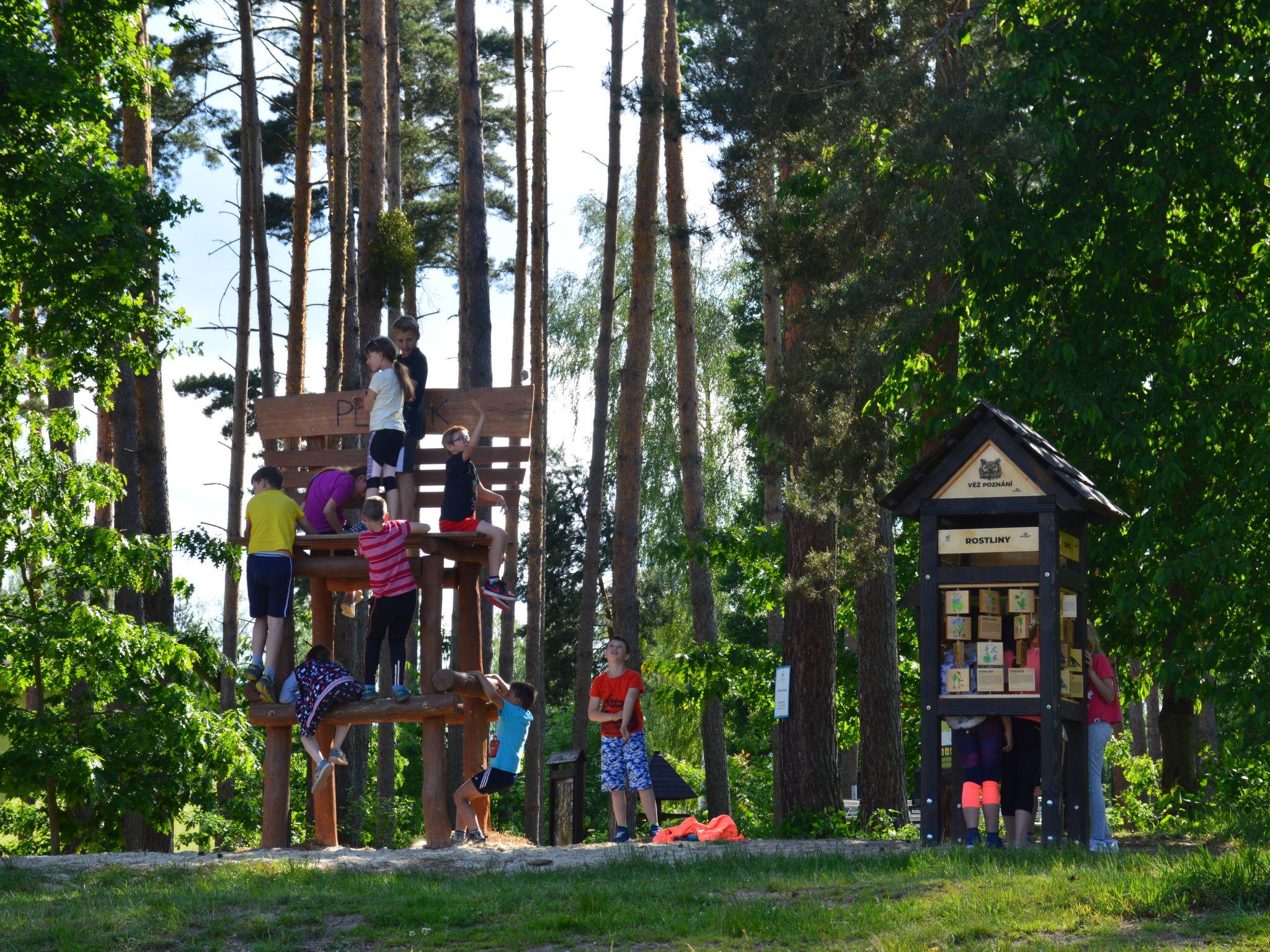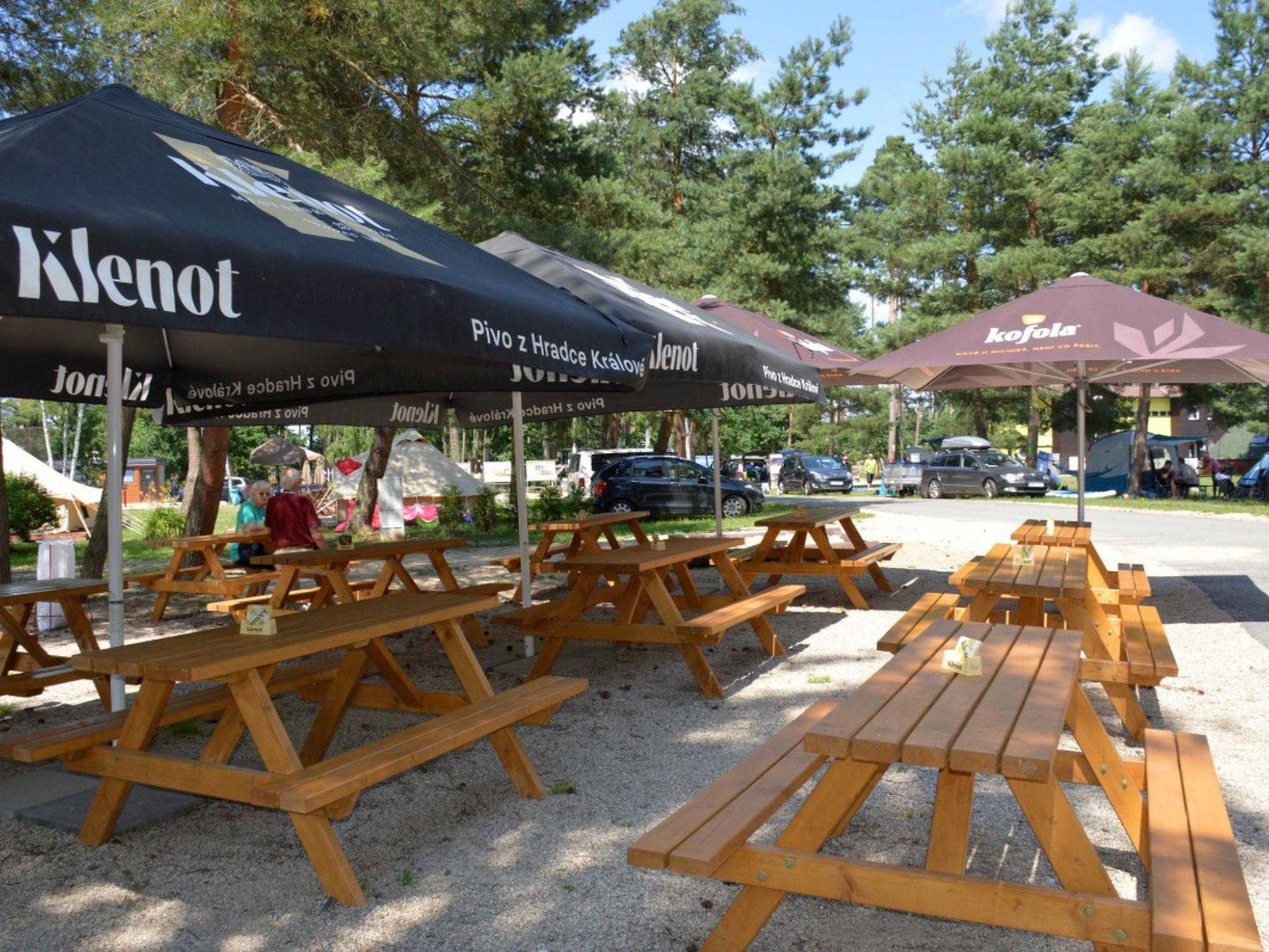 Child friendly holiday village "Kemp Stríbrný rybník". 25 houses in the resort. In the district of Malšova Lhota, 5 km from the centre of Hradec Králové, along the wooded area, on the lake. For shared use: property. Table tennis, boccia (extra), beach volleyball, arbour, barbecue, fireplace, children's playground, bathing jetty. In the complex: reception, restaurant, bar, bistro, playroom, washing machine (for shared use, extra), bicycle rental. Parking (extra) on the premises. Bus stop "Stríbrný rybník" 700 m, railway station "Blešno" 5 km, sandy beach 50 m, bathing lake "50". Sports harbour, minigolf, sports centre, walking paths from the house, cycle lane, fishing possibilities 50 m. Nearby attractions: Adventure park Firmsport, letní kino, tutistický vlácek do lesa, Stezka siluet, Rytírské hradište 3 km, Park Na Vetvi 3 km, Obory se zverí 4.2 km, Obrí akvárium, Botanická zahrada 4.7 km. Hiking paths: Pohádková, Vodnická stezka 6 km, Planetárium, planetární stezka 8.4 km, Zoopark Stežery, Rozhledna Milír 15 km. Please note: entertainment in the season. Suitable for families. Fishing [permit required]. The photograph shows a typical example.