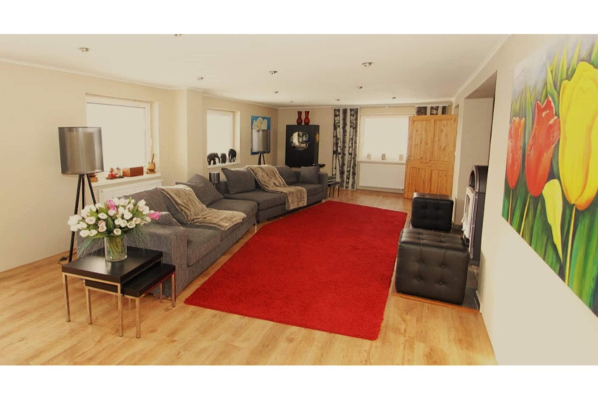 Stueetage: (Stue(Fjernsyn(fladskærm, parabol, Hollandske TV-kanaler, Tyske TV-kanaler, Internationale TV-kanaler), kakkelovn(træ), sofahjørne, DVD-afspiller, balkon), Køkken(spisebord(12 personer), elkedel, komfur(Komfur med fire kogeplader, glaskeramisk, induktion), emhætte, kaffemaskine, ovn, mikrobølgeovn, opvaskemaskine , køle-fryseskab), badeværelse(badekar, håndvask, toilet), toilet(håndvask)) På 1. etage: (Soveværelse med badeværelse(dobbeltseng, bruser, håndvask, toilet), Soveværelse med badeværelse(dobbeltseng, bruser, håndvask, toilet), Soveværelse med badeværelse(dobbeltseng, bruser, håndvask, toilet)) På 2. etage: (Soveværelse med badeværelse(dobbeltseng, badekar med bruser, håndvask, toilet), DVD-afspiller) Kælderetage: (vaskerum (tørretumbler, håndvask, toilet, vaskemaskine), opholdsrum(spisebord, sofahjørne, hyggespil), pulterkammer) Gæsteophold På 1. etage: (soveværelse(køjeseng, sofahjørne), soveværelse med gennemgang(dobbeltseng), badeværelse(bruser, håndvask, toilet)) terrasse(privat), have(privat), havemøbler, grill, parkering, barneseng, barnestol, føntørrer