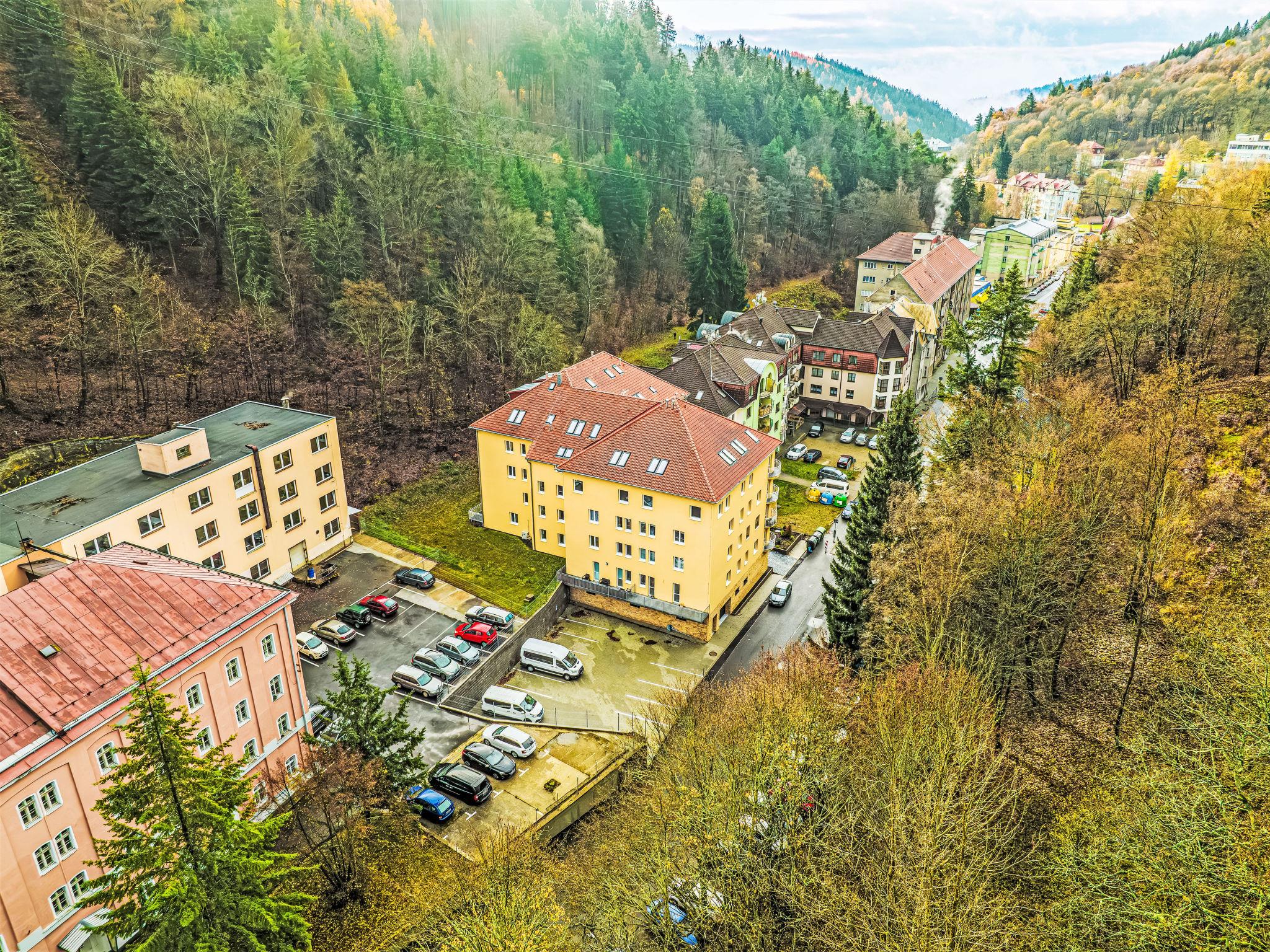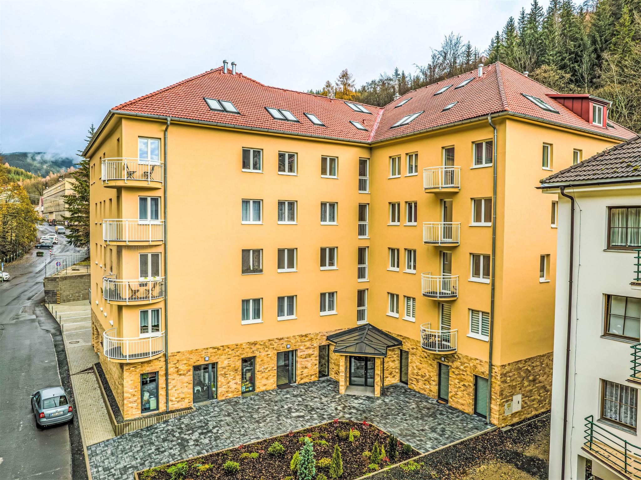 Modern apartment block, 4 storeys, built in 2023. In the centre of Jáchymov, 2.5 km from the skiing area. In the house: lift, central heating system. Breakfast on request (extra). Storeroom available. Parking at the house. Grocery 100 m, supermarket 150 m, shopping centre 6 km, restaurant 100 m, pub garden, bus stop "Jáchymov" 150 m, outdoor swimming pool 15 km, indoor swimming pool 150 m. Walking paths from the house 10 m, cycle lane, chair lift 2.5 km, slopes 2.5 km, ski rental 2.5 km, ski bus stop 30 m, ski school 2.5 km, cross country ski track 5 km, ice rink 6 km, children's playground 500 m. Nearby attractions: Aqua Centre Agricola 500 m, Spa&Wellness Centre 500 m, Boží Dar 8 km, Karlovy Vary 20 km, Oberwiesetnhal 13 km, Annaberg-Buchholz 33 m. Well-known ski regions can easily be reached: Klínovec 2.5 km, Plešivec 13 km, Fichtelberg 11 km. Hiking paths: Krušnohorská magistrála, Ježíškova cesta. Please note: baby equipment on request (extra). Smoking is prohibited in all areas of the building and, with the exception of the ground floor, the use of ski boots is also prohibited.