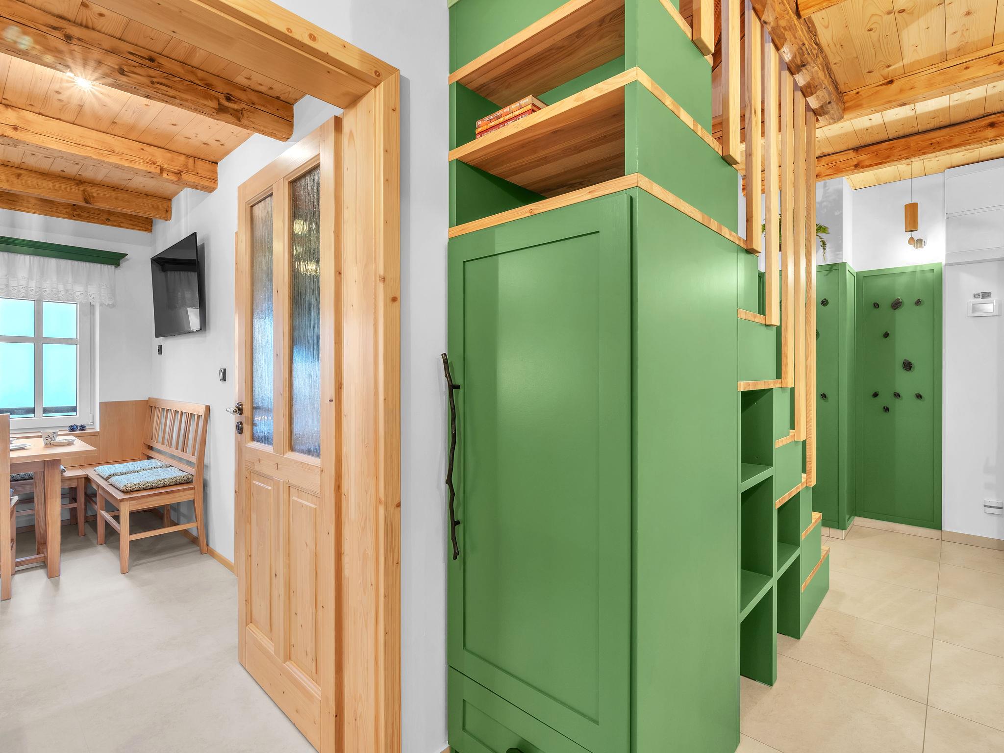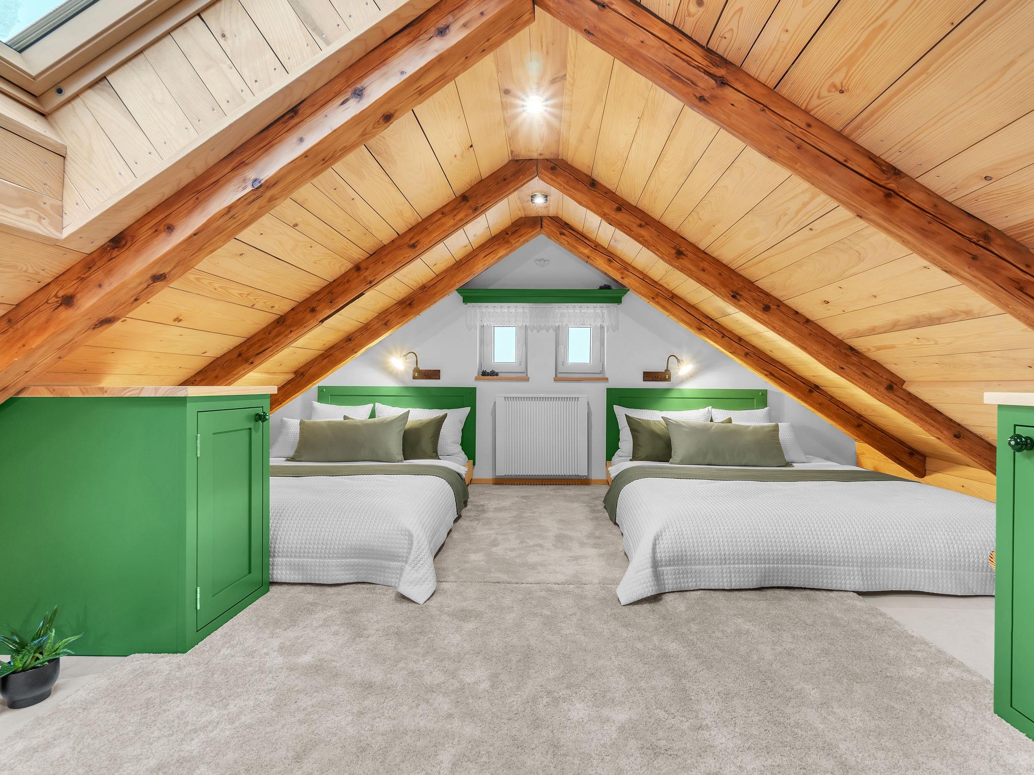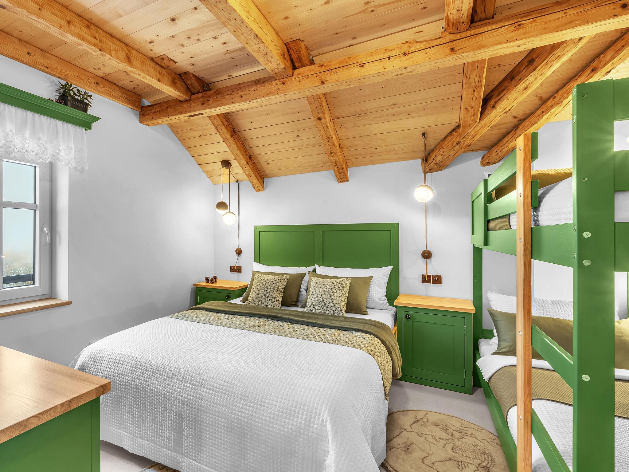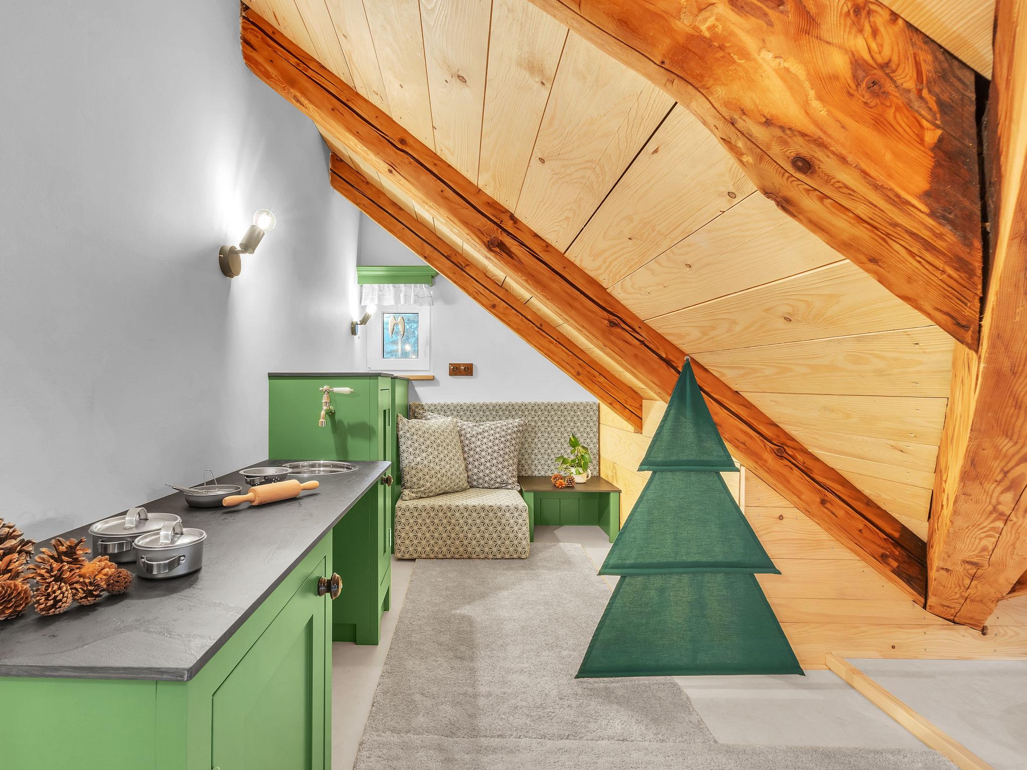 "V Mechu", 3-room apartment 47 m2 on 2 levels, on the top floor. Object suitable for 4 adults + 2 children. Luxurious and stylish furnishings: large living/dining room with dining nook and TV (flat screen). 1 room with 1 x 2 bunk beds, 1 double bed. Kitchenette (oven, dishwasher, 2 ceramic glass hob hotplates, toaster, kettle, microwave, electric coffee machine). Bath/WC. Floor heating. Upper floor: (steep stair), 1 open room with sloping ceilings with 2 beds (140 cm). Open small living room. Beautiful panoramic view of the valley. Facilities: washing machine. Internet (WiFi, free). Please note: suitable for families. No lift.