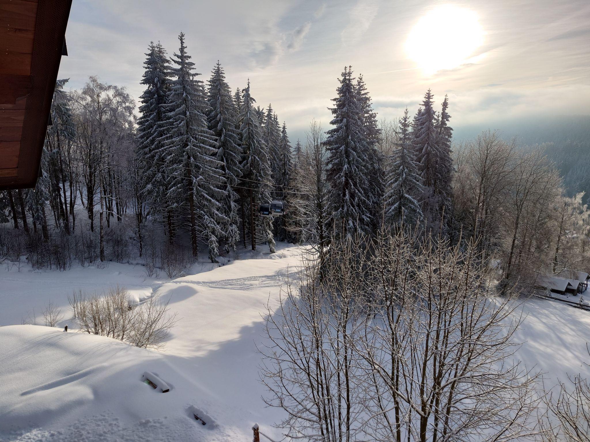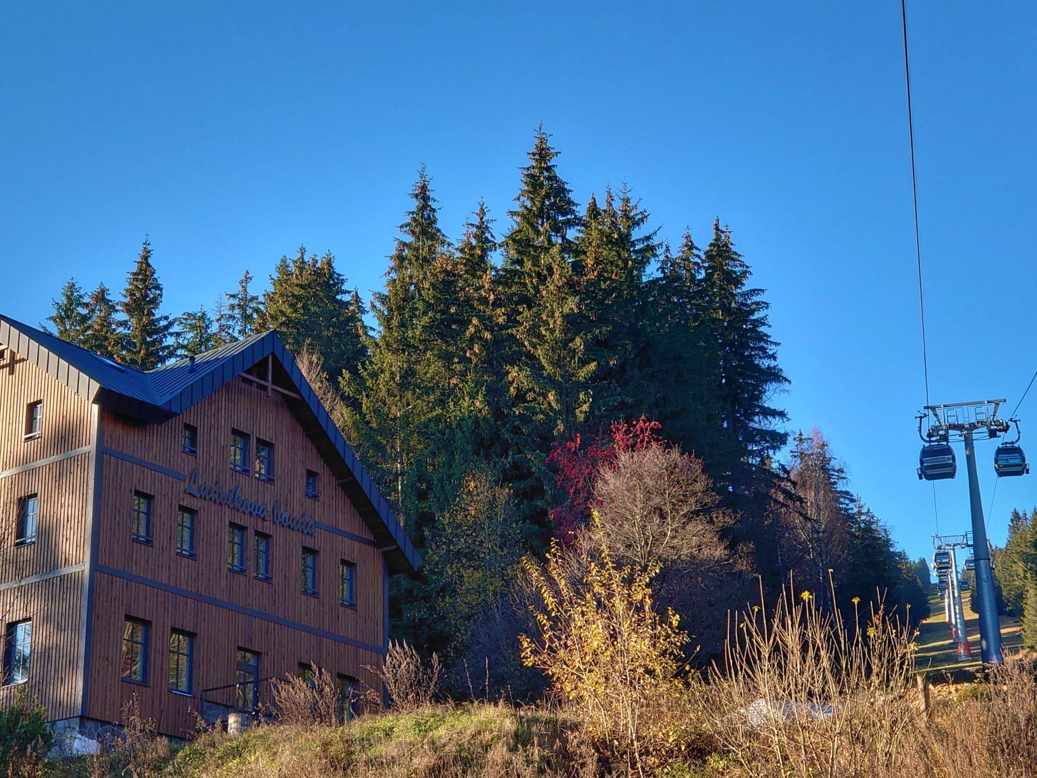Beautiful chalet "Ludvíkova bouda", 3 storeys, detached, renovated in 2023. 15 apartments in the property. On the outskirts, 1.5 km from the centre of Janské Lázne, in a secluded, quiet, elevated position, along the wooded area, 500 m from the skiing area. In the house: restaurant, WiFi, central heating system. Breakfast and half board on request (extra). Parking at the house. Grocery 1.7 km, restaurant 10 m, bar 1.7 km, bus stop "Janské Lázne, Zátiší" 320 m, outdoor swimming pool 8 km, indoor swimming pool 2 km. Tennis 1.7 km, minigolf 800 m, cable car 600 m, chair lift, gondola lift, slopes 100 m, ski rental 700 m, ski school 700 m, children's ski school, sled run 800 m, cross country ski track. Nearby attractions: Lanovka na Cernou horu 600 m, Janské Lázne Spa, Stezka korunami stromu 500 m, bobová dráha 5 km, Pec pod Snežkou, Relaxpark, bobová dráha 11 km, Vrchlabí 10 km, Trutnov 12 km, Malá Úpa 15 km, Zoo Dvur Králové, Adršpach 35, Karpacz 40 km. Well-known ski regions can easily be reached: SkiResort CERNÁ HORA - PEC 600 m, Mladé Buky 5 km, Horní Malá Úpa 16 km, Špindleruv Mlýn 30 km. Hiking paths: Krkonošské naucné stezky. Please note: suitable for families, suitable for seniors.