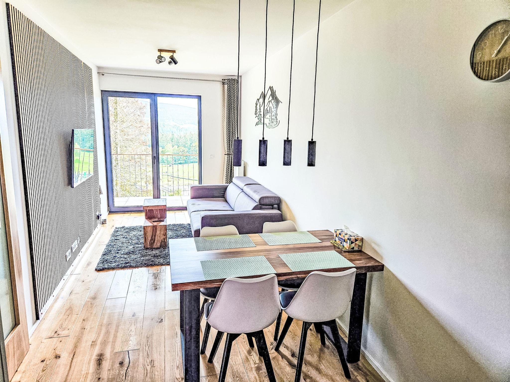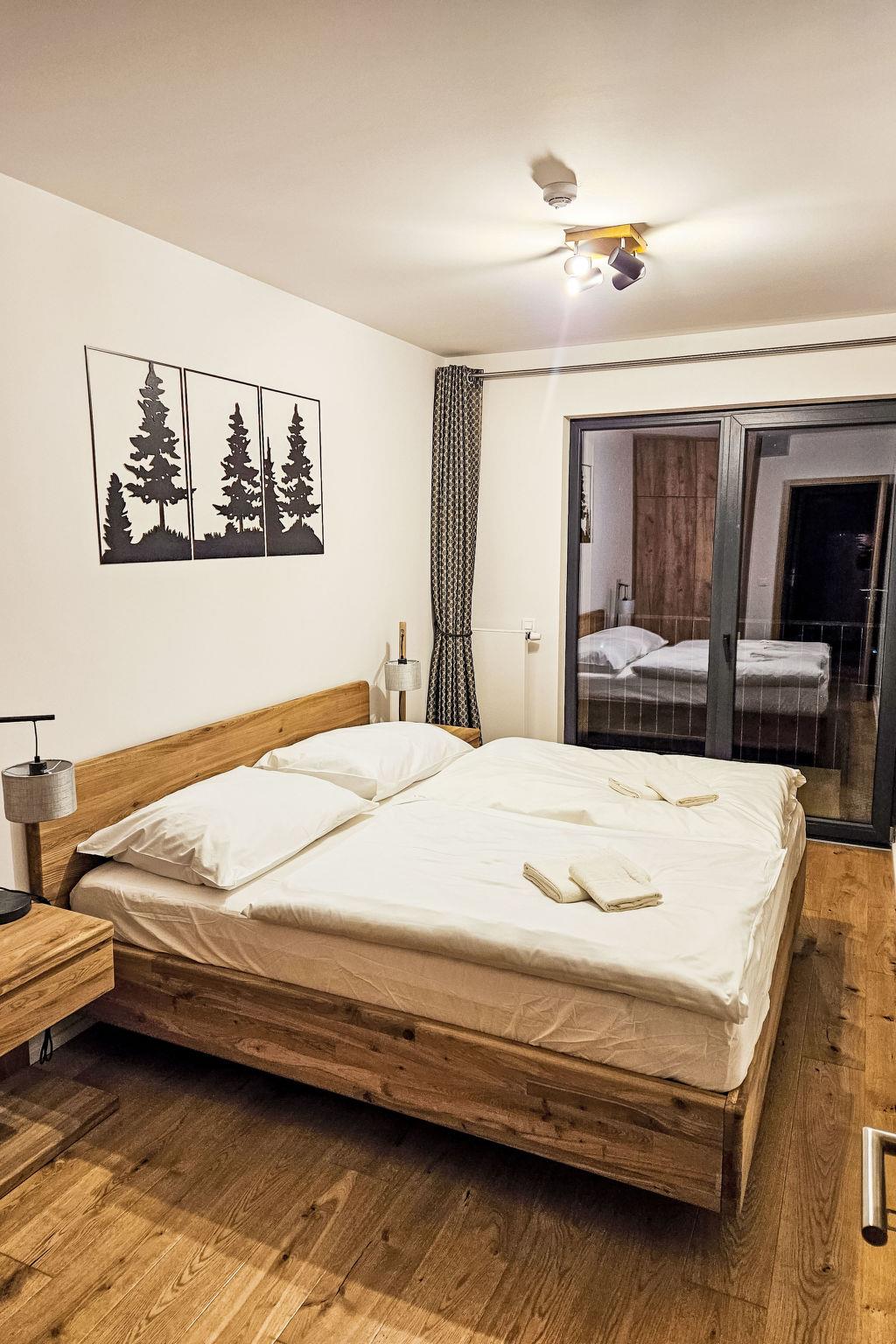 "Ski&Bike Siréna", 2-room apartment. Spacious: living room with 1 double sofabed and TV. Exit to the balcony. 1 room with 1 double bed. Kitchenette (oven, dishwasher, 4 ceramic glass hob hotplates, toaster, kettle, microwave, freezer, electric coffee machine) with dining table. Shower/WC. Balcony. Balcony furniture. Beautiful view of the countryside. Facilities: Internet (WiFi, free). Parking space n 24. Please note: suitable for families. Non-smokers only.