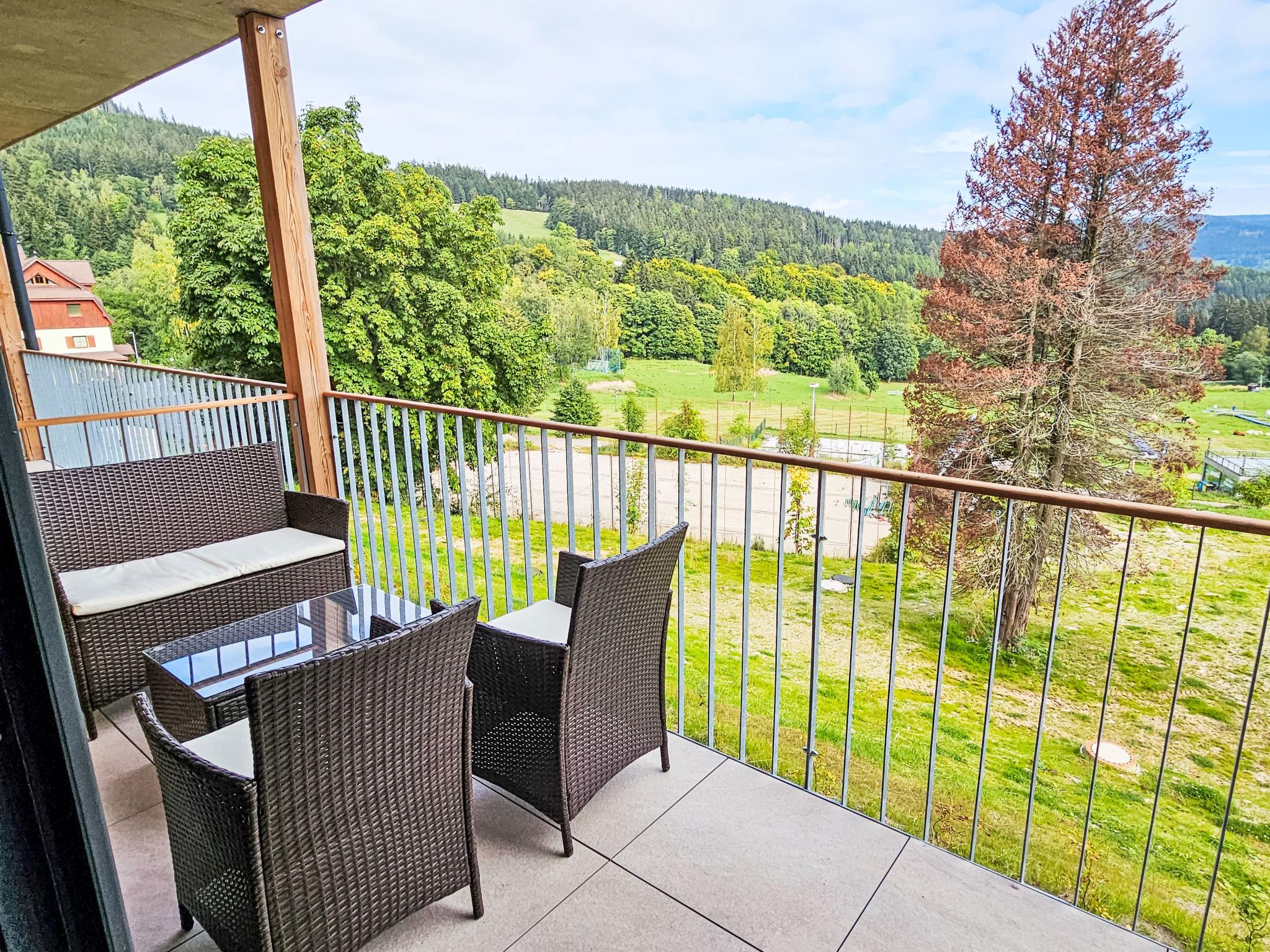 Comfortable apartment block, 5 storeys, detached, built in 2023. In the resort, 500 m from the centre, in a sunny position, 150 m from the skiing area. In the house: storage room for skis, central heating system. Single garage. Grocery 300 m, restaurant 50 m, bus stop "Janské Lázne - Lesní dum" 200 m, railway station "Svoboda nad Úpou" 3.8 km, park "Farmapark Muchomurka" 1 km, outdoor swimming pool 7 km, indoor swimming pool 300 m. Golf course (18 hole) 7.5 km, tennis 1 km, minigolf 4.5 km, walking paths from the house, cycle lane 100 m, chair lift, gondola lift, slopes, ski rental 150 m, ski bus stop 200 m, ski school, children's ski school, sled run 150 m, cross country ski track 300 m. Nearby attractions: Lanovka na Cernou horu 100 m, Janské Lázne Spa, Stezka korunami stromu 700 m, bobová dráha 5 km, Pec pod Snežkou, Relaxpark, bobová dráha 15 km, Vrchlabí 10 km, Trutnov 12 km, Malá Úpa 20 km, Zoo Dvur Králové, Adršpach 35, Karpacz 40 km. Well-known ski regions can easily be reached: SkiResort CERNÁ HORA - PEC, Mladé Buky 5 km, Horní Malá Úpa 16 km, Špindleruv Mlýn 30 km. Hiking paths: krkonošské naucné stezky. Please note: suitable for families.