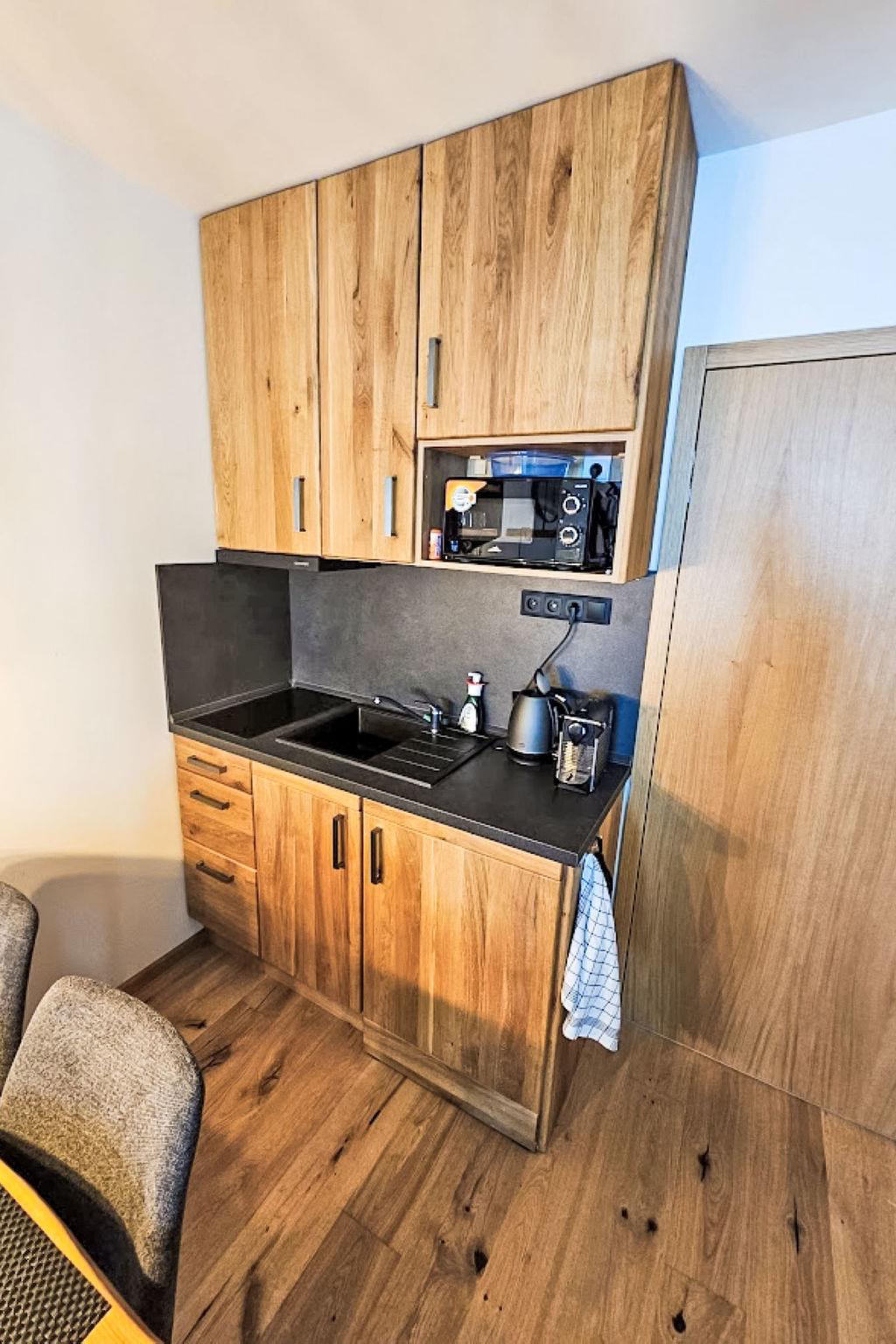 "Ski&Bike Siréna", 1-room studio. Spacious: living/sleeping room with 1 sofabed, 1 double bed and TV. Kitchenette (oven, dishwasher, 4 ceramic glass hob hotplates, toaster, kettle, microwave, freezer, electric coffee machine) with dining table. Shower/WC. View of the countryside. Facilities: Internet (WiFi, free). Parking at the house. Please note: suitable for families. Non-smokers only.