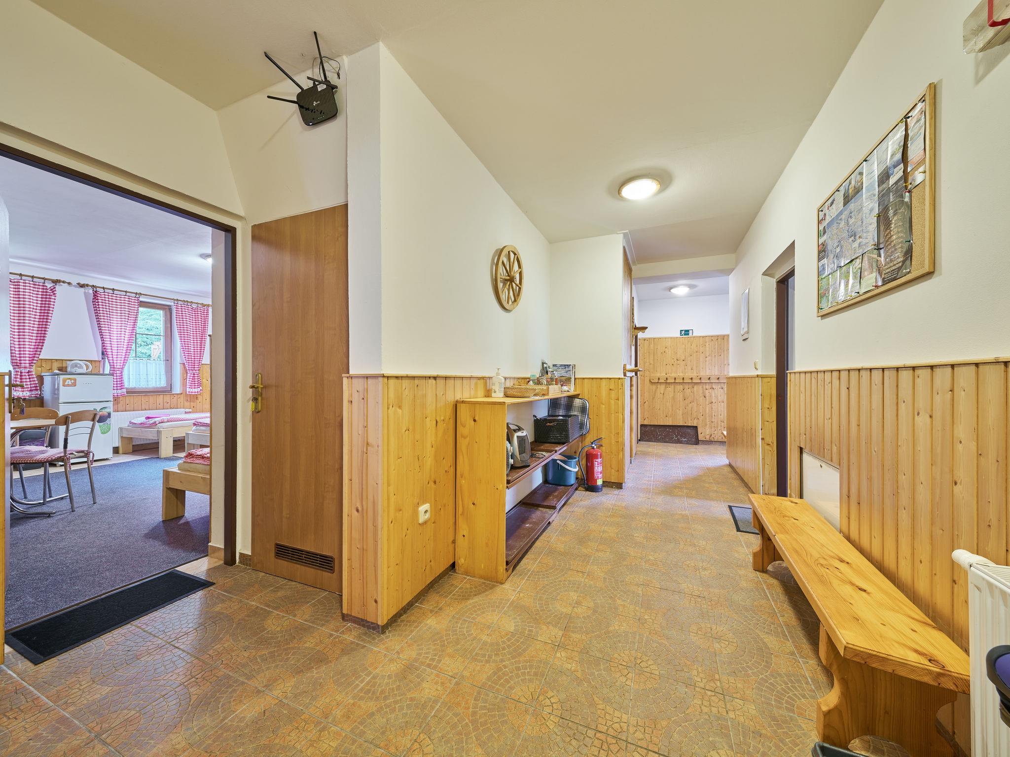 Cosy, comfortable cottage "U Švýcarského dvora", detached, built in 2006. 4 apartments in the property. In the resort 800 m from the centre of Janské Lázne, in a quiet position, 200 m from the skiing area. For shared use: well-kept garden with lawn. Patio, pergola, garden furniture, barbecue, children's playground (swing). In the house: WiFi, central heating system. Parking (for 4 cars) at the house. Grocery 1.2 km, supermarket 2 km, restaurant 1 km, café 1 km, bus stop "Janské Lázne, Lesní dum" 700 m, railway station "Svoboda nad Úpou" 2.8 km, outdoor swimming pool 1 km, indoor swimming pool 1 km, thermal baths "Janské Lázne" 1 km. Golf course (18 hole) 8 km, tennis 800 m, minigolf 2.5 km, riding stable 2 km, walking paths from the house 20 m, cycle lane 700 m, ski lift 900 m, gondola lift 1.7 km, slopes 200 m, ski rental 600 m, ski bus stop 50 m, ski school, sled run 800 m, cross country ski track 2.5 km, children's playground 200 m. Nearby attractions: Aquacentrum, Janské Lázne Spa 1 km, Stezka korunami stromu Janské Lázne 3 km, RelaxPark Pec, lanovka Snežka 15 km, zámek Vrchlabí, Aquacentrum Vrchlabí 18 km, Špindleruv Mlýn, Zoo Safari Dvur Králové 33 km, Adršpašské skály 42 km. Well-known ski regions can easily be reached: Janské Lázne - Koštálka 1.5 km, Cerná hora - Pec 1900 m, Mladé Buky 7 km, Horní Malá Úpa 20 km, Špindleruv Mlýn 34 km. Well-known lakes can easily be reached: Dolce Trutnov 18 km. Hiking paths: krkonošské naucné stezky. Please note: suitable for families. Owner lives in separate semi-detached house.