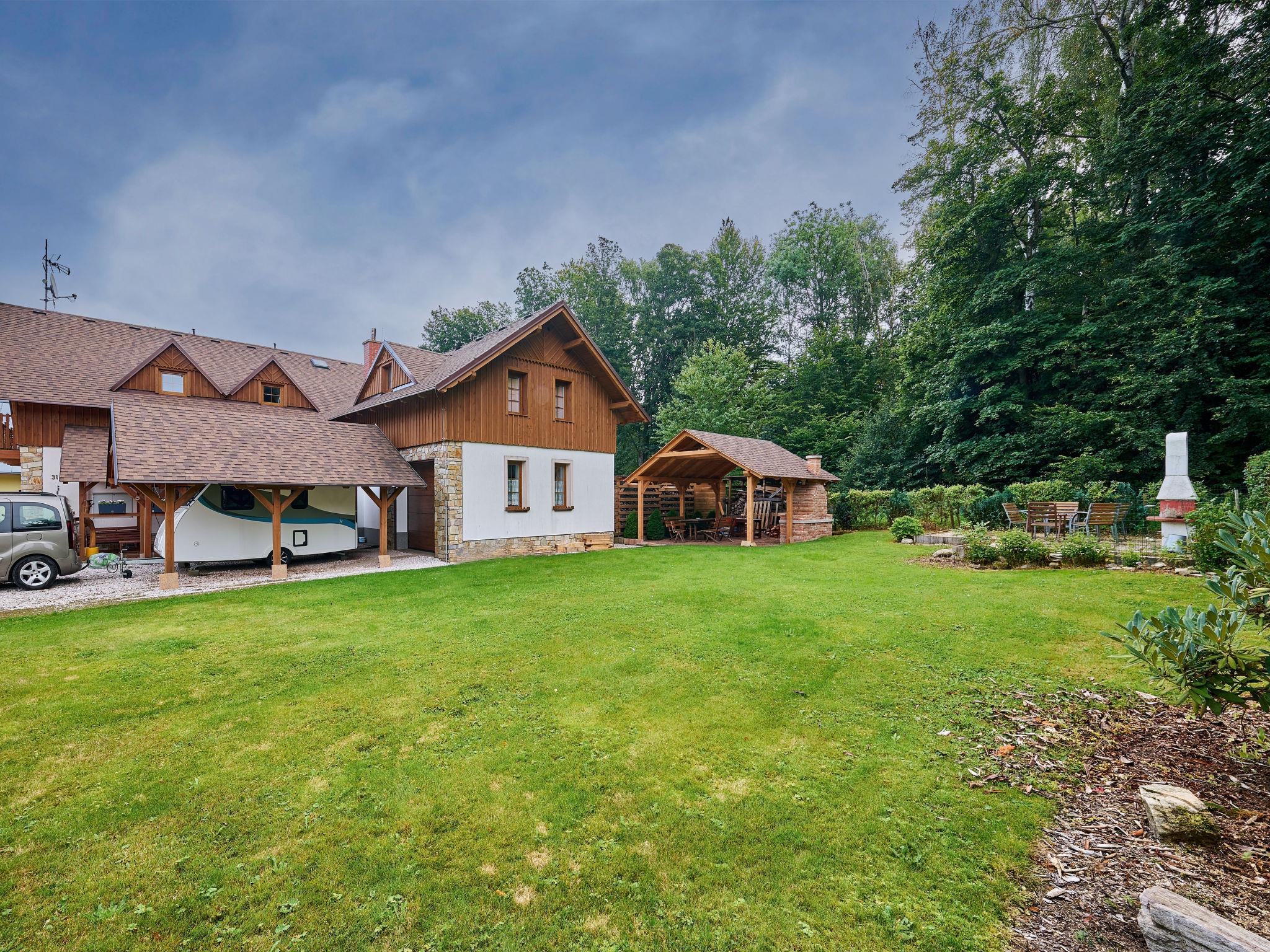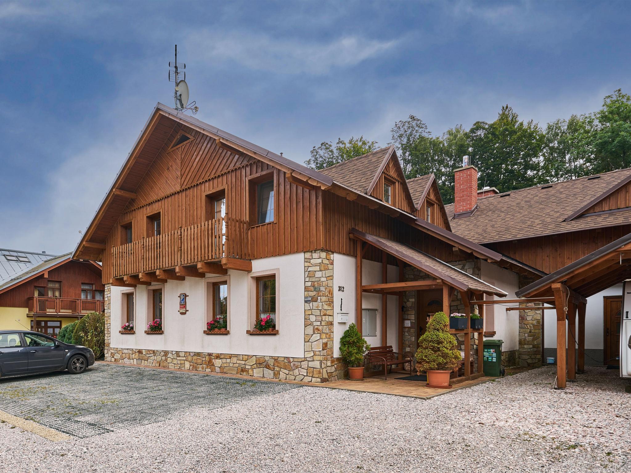 Cosy, comfortable cottage "U Švýcarského dvora", detached, built in 2006. 4 apartments in the property. In the resort 800 m from the centre of Janské Lázne, in a quiet position, 200 m from the skiing area. For shared use: well-kept garden with lawn. Patio, pergola, garden furniture, barbecue, children's playground (swing). In the house: WiFi, central heating system. Parking (for 4 cars) at the house. Grocery 1.2 km, supermarket 2 km, restaurant 1 km, café 1 km, bus stop "Janské Lázne, Lesní dum" 700 m, railway station "Svoboda nad Úpou" 2.8 km, outdoor swimming pool 1 km, indoor swimming pool 1 km, thermal baths "Janské Lázne" 1 km. Golf course (18 hole) 8 km, tennis 800 m, minigolf 2.5 km, riding stable 2 km, walking paths from the house 20 m, cycle lane 700 m, ski lift 900 m, gondola lift 1.7 km, slopes 200 m, ski rental 600 m, ski bus stop 50 m, ski school, sled run 800 m, cross country ski track 2.5 km, children's playground 200 m. Nearby attractions: Aquacentrum, Janské Lázne Spa 1 km, Stezka korunami stromu Janské Lázne 3 km, RelaxPark Pec, lanovka Snežka 15 km, zámek Vrchlabí, Aquacentrum Vrchlabí 18 km, Špindleruv Mlýn, Zoo Safari Dvur Králové 33 km, Adršpašské skály 42 km. Well-known ski regions can easily be reached: Janské Lázne - Koštálka 1.5 km, Cerná hora - Pec 1900 m, Mladé Buky 7 km, Horní Malá Úpa 20 km, Špindleruv Mlýn 34 km. Well-known lakes can easily be reached: Dolce Trutnov 18 km. Hiking paths: krkonošské naucné stezky. Please note: suitable for families. Owner lives in separate semi-detached house.