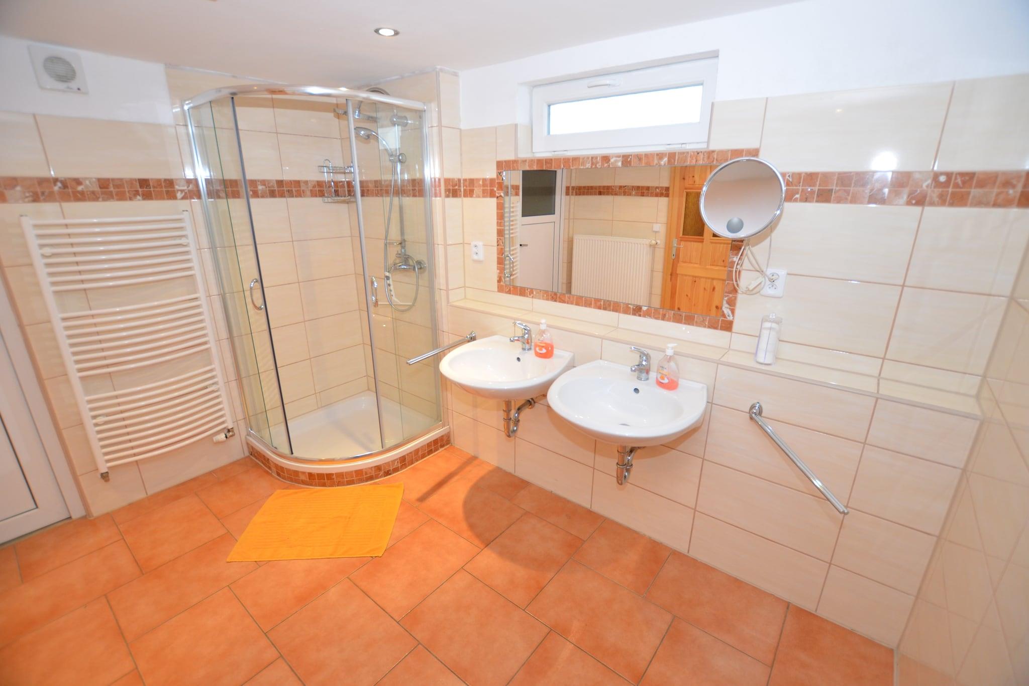Hvorfor blive her? Træd tilbage i tiden i dette charmerende, over 200 år gamle bindingsværkshus, som bevarer sin oprindelige loftshøjde på 182 cm på øverste etage. De andre tre soveværelser ovenpå er blevet gennemtænkt renoveret, komplet med nyt tag og et ekstra toilet. Nyd lidt privatliv og frisk luft i den delvist indhegnede have. Ting at gøre omkring Vinteren byder på gode skimuligheder i Ertsbjergene, mens sommeren inviterer dig til at prøve kitesurfing på den nærliggende kunstige sø Medard. Udforsk de historiske kurbyer Karlovy Vary og Marienbad, der er tilgængelige via Diana-svævebanen. Gå ikke glip af de varme kilders søjlegange, Becherovka-museet og WWI Military Cemetery. Besøg Pod Kaštanem nær Karlovy Vary for at smage det lokale køkken. Schöneck Vogtland tilbyder fremragende spa- og wellnessmuligheder, herunder en swimmingpool. Hvad kan du forvente Kæledyr er velkomne her mod et mindre tillæg. Den nærmeste lufthavn ligger 36 km væk, og offentlig transport er bekvemt placeret kun 2 km fra huset.