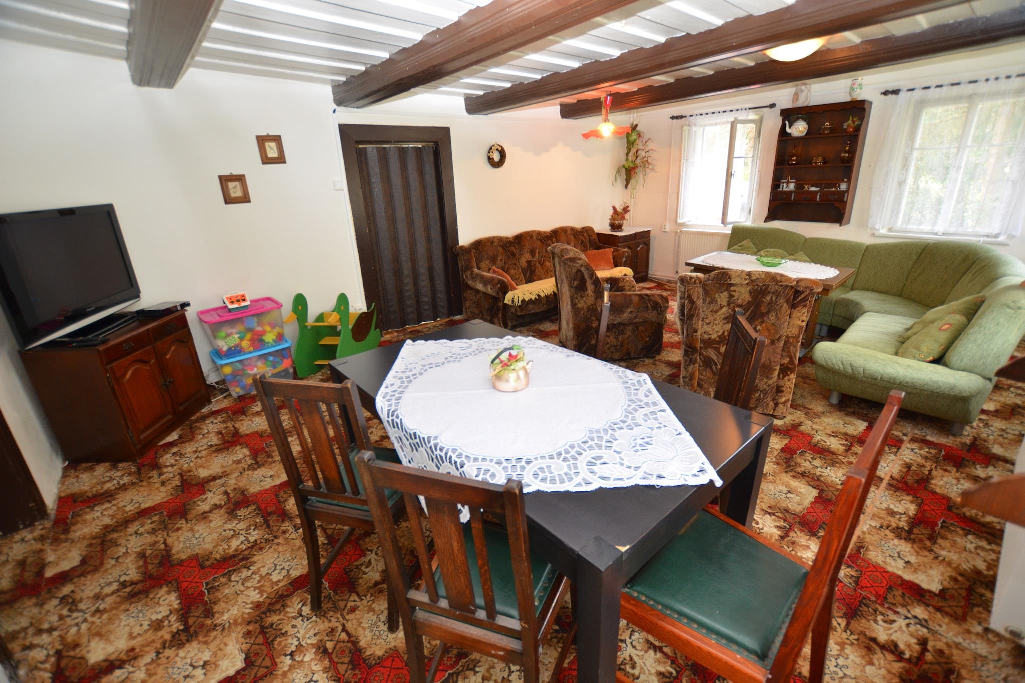 Rummeligt familieretræte Dette ekspansive feriehus i Krásná Lípa byder velkommen til op til 14 gæster fordelt på fem velindrettede soveværelser, hvilket gør det ideelt til familiesammenkomster eller ture med venner. Børn kan nyde legeværelset, sandkassen og trampolinen, mens voksne kan slappe af i den hyggelige opholdsstue med tv og komfortable siddepladser. Det fuldt udstyrede køkken og spiseplads til 14 gør gruppemåltider enkle, og den private indhegnede have med grill giver det perfekte sted til udendørs aftener. Op til 3 kæledyr er velkomne her, så dine lodne venner kan deltage i eventyret. Eventyr og natur Naturentusiaster vil sætte pris på skoven kun 200 meter væk til vandreture eller afslappede gåture. For en dag ved vandet ligger den maleriske Kyjov-sø kun 3 km fra ejendommen, ideel til picnic eller afslapning ved søen. Skiløbere kan nå Horní Podluží-liften på 8 km, og den nærliggende Krásná Lípa byder på restauranter, caféer og almindelige forsyninger inden for en kort gåtur på 1-1,5 km. Lokal charme og bekvemmelighed Den omkringliggende nordbøhmiske region kombinerer charmerende små byer med naturlig skønhed. Efter at have udforsket, kan du vende tilbage for at nyde et spil billard eller slappe af i loungen. Vigtige tjenester, herunder banker, posthus og medicinske faciliteter, ligger inden for 2 km. Dette feriehus balancerer aktive dage i naturen med afslappende aftener på ejendommen, hvilket giver et alsidigt ophold, hvor enhver gæst – inklusive kæledyr – kan føle sig hjemme.
