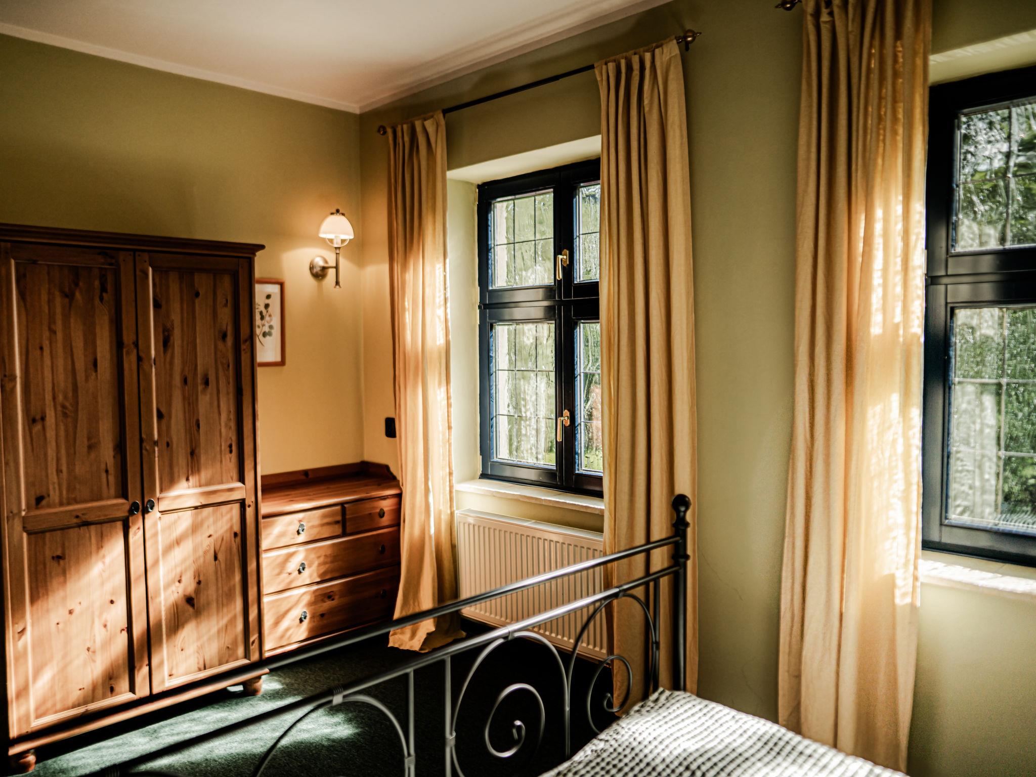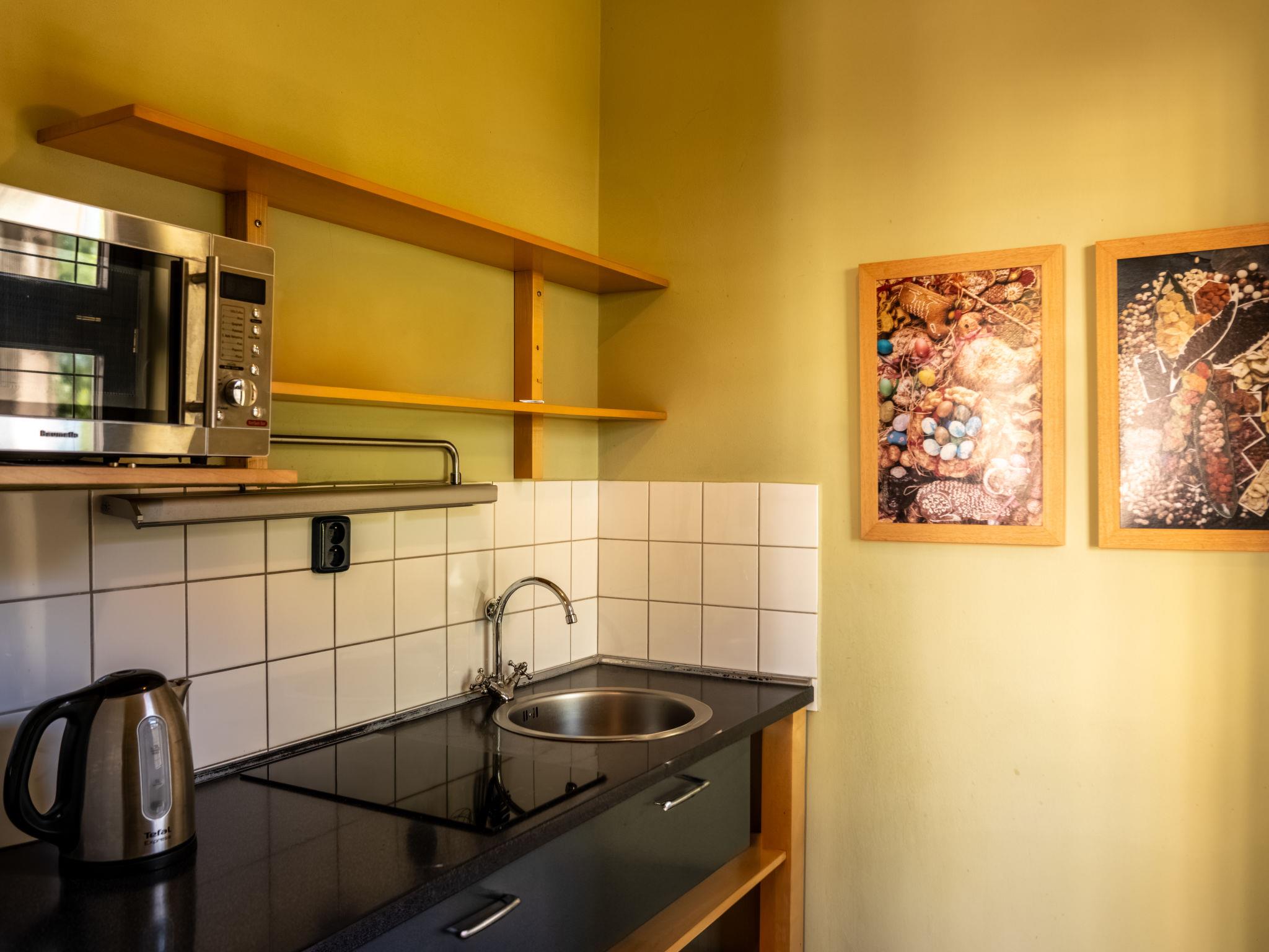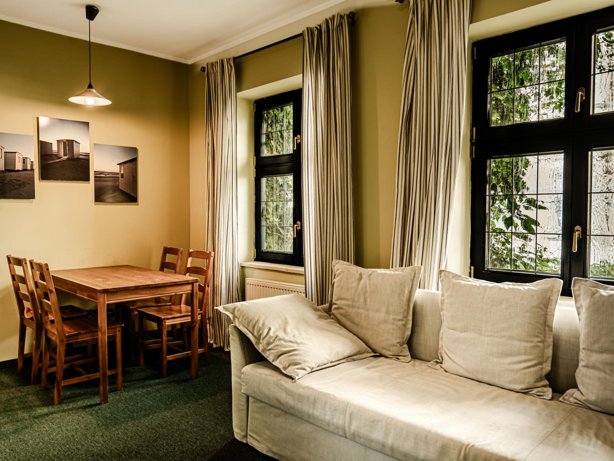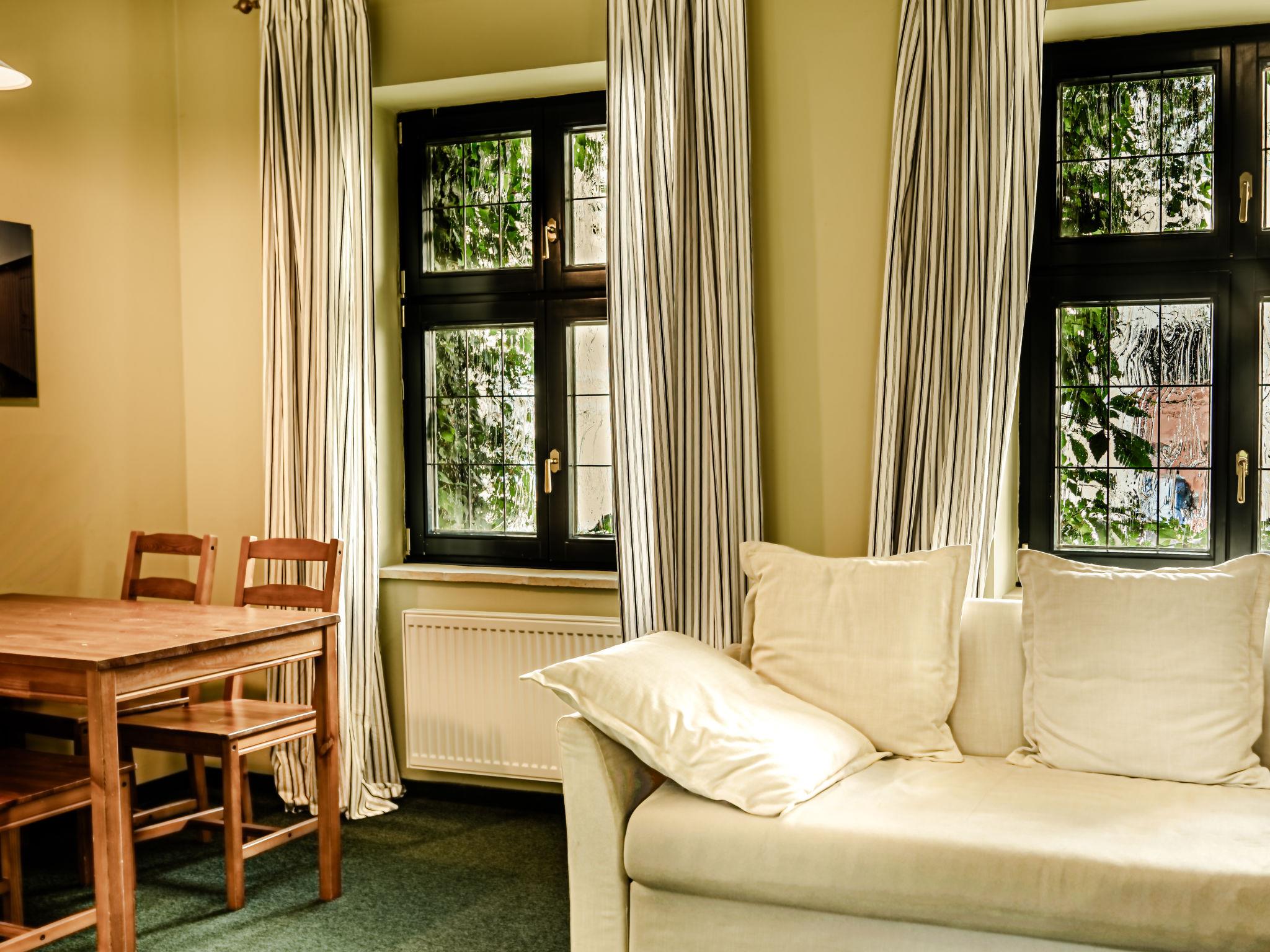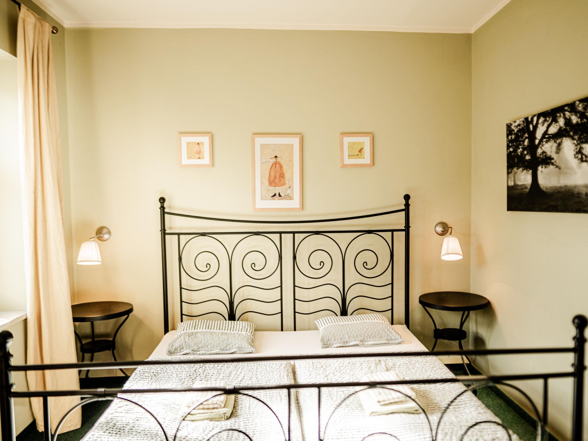 "Twain", 2-room apartment 38 m2 on 2nd floor. Beautiful and cosy furnishings: living/sleeping room with 1 pull-out bed (2 pers.), dining table and satellite TV. 1 room with 1 double bed. Kitchenette (2 hot plates, kettle, microwave, freezer). Shower/WC. Very beautiful view of the garden. Facilities: Internet (WiFi, free). Parking (fenced) at the house. Please note: suitable for families. Non-smokers only. Maximum 1 pet/ dog allowed. Fire extinguisher.
