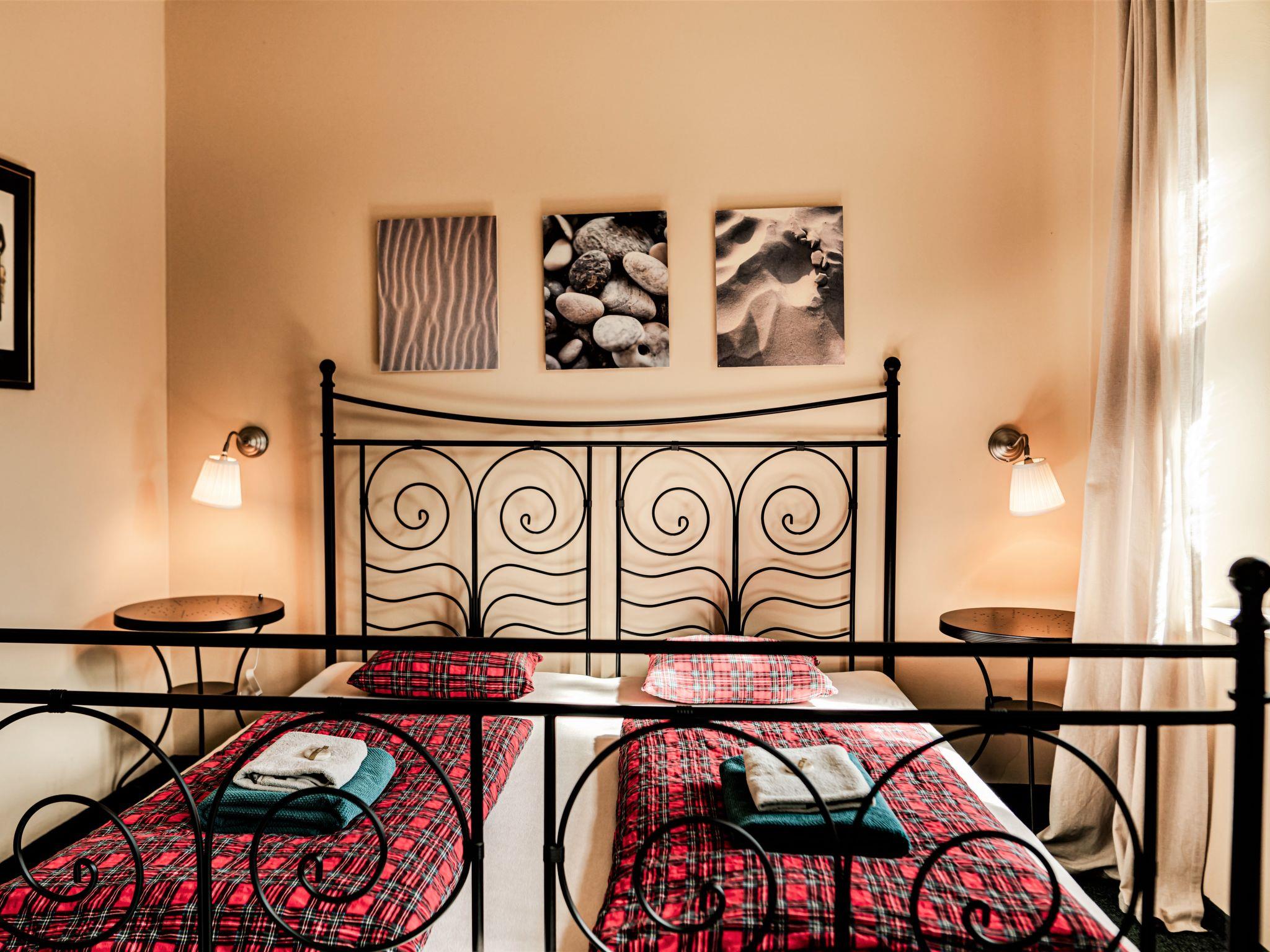 "Kipling", 2-room apartment 38 m2, on the upper ground floor. Beautiful and cosy furnishings: living/sleeping room with 1 pull-out bed (2 pers.), dining table and satellite TV. 1 room with 1 double bed. Kitchenette (2 hot plates, kettle, microwave, freezer). Shower/WC. Very beautiful view of the garden. Facilities: Internet (WiFi, free). Parking (fenced) at the house. Please note: suitable for families. Non-smokers only. Maximum 1 pet/ dog allowed. Fire extinguisher.