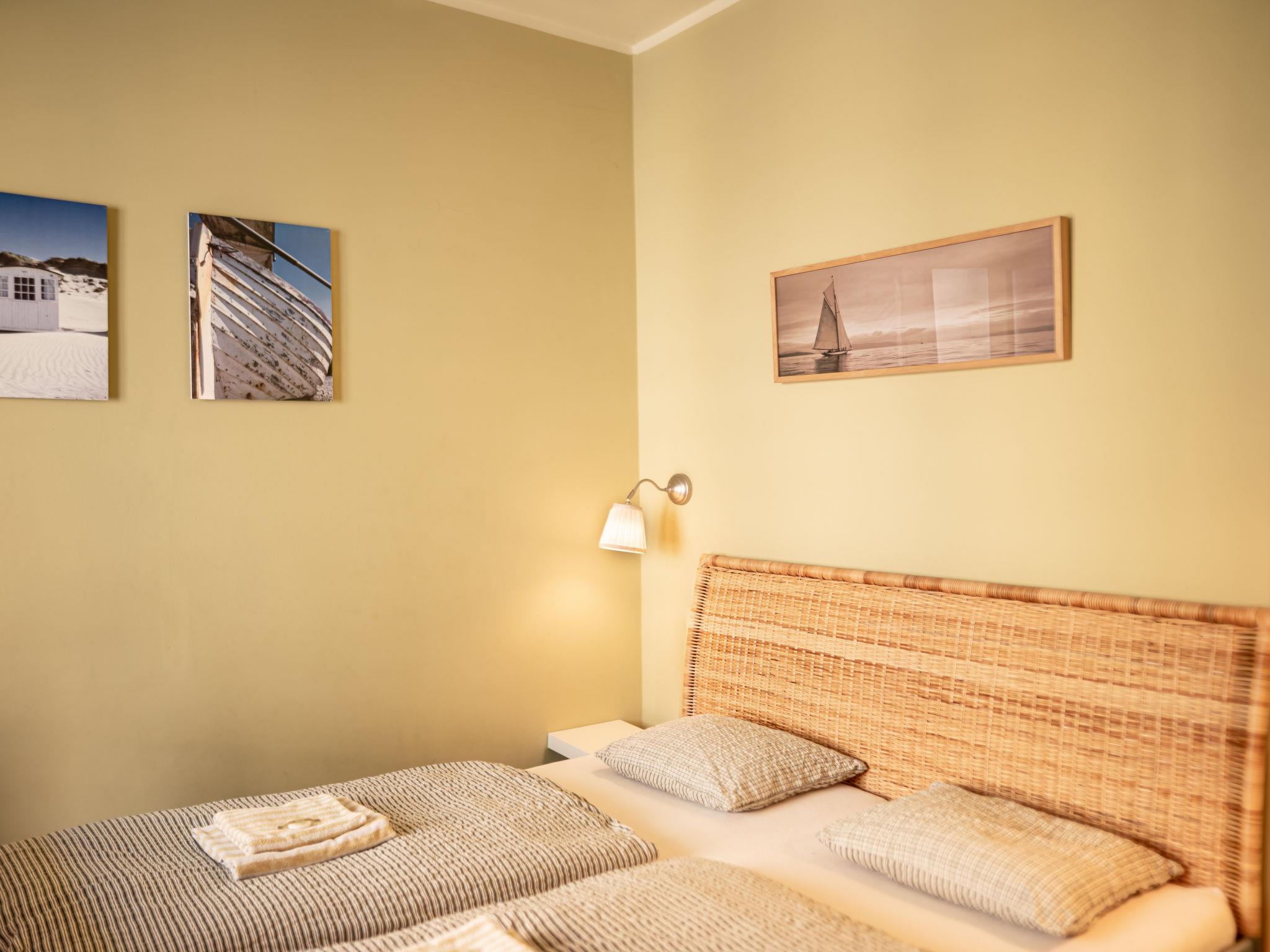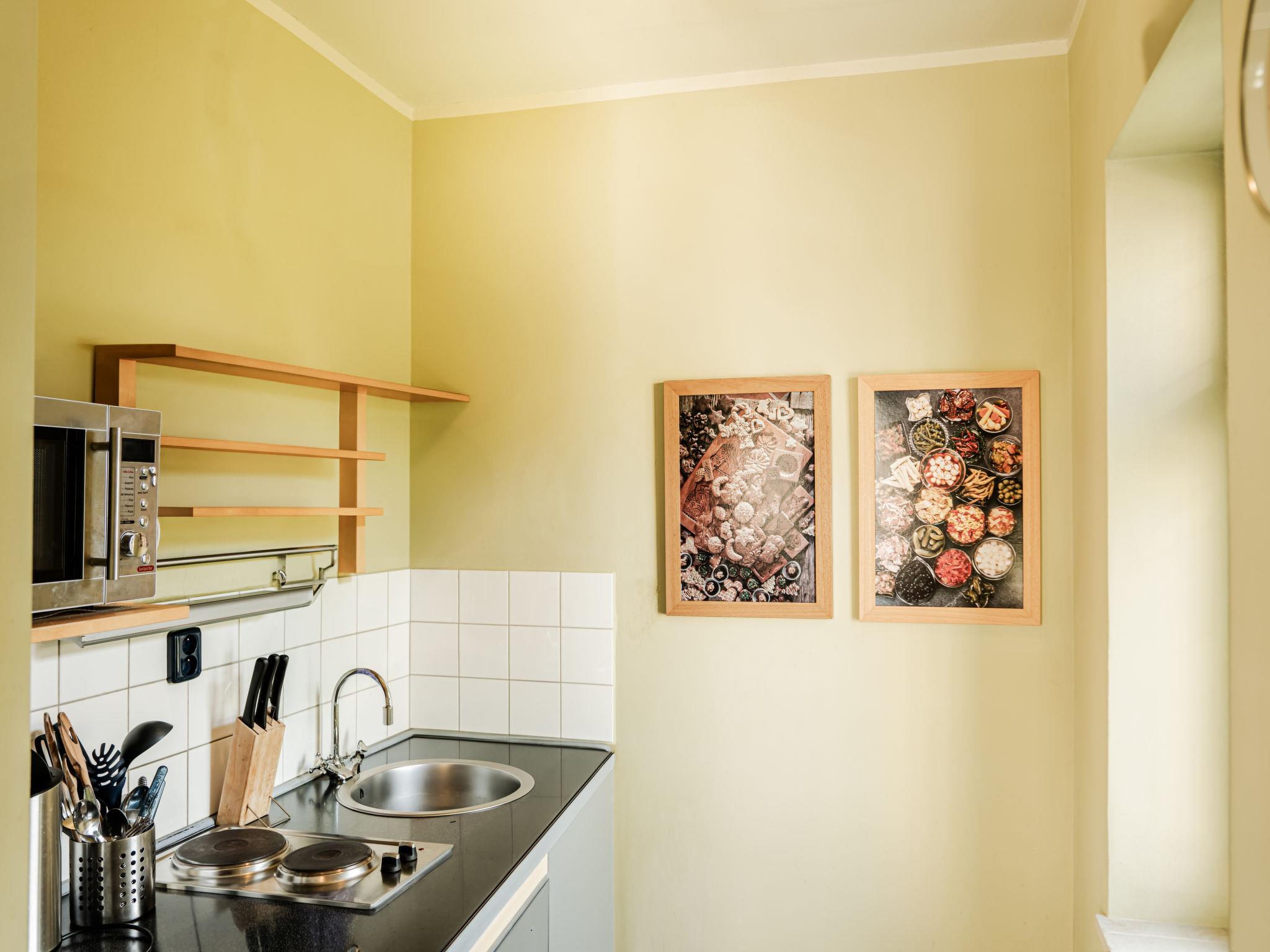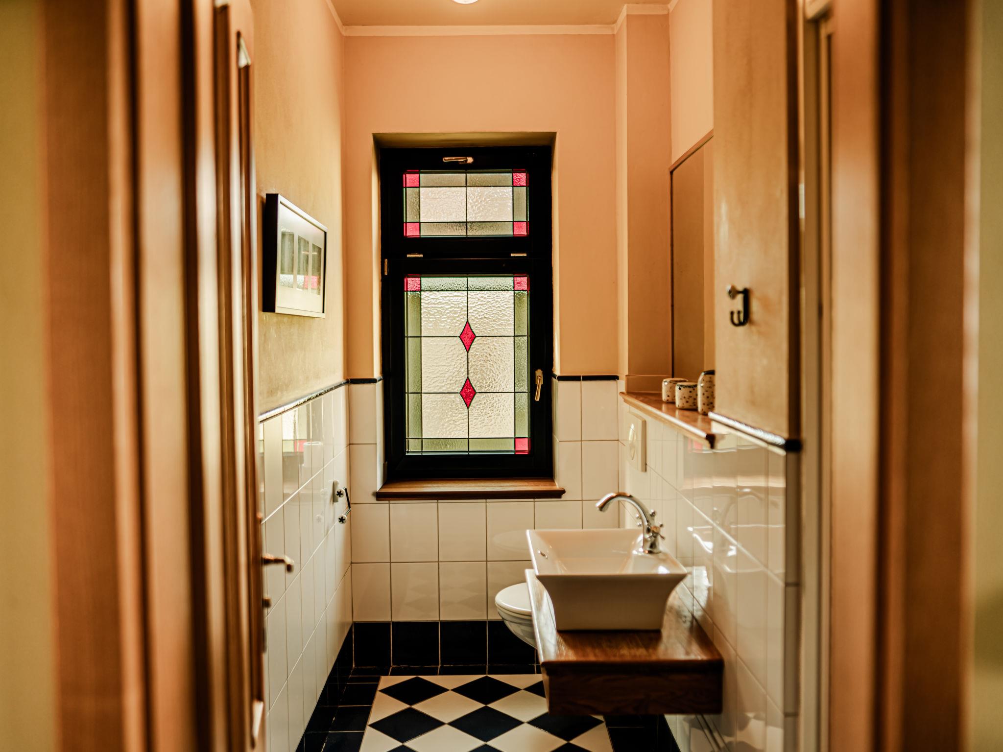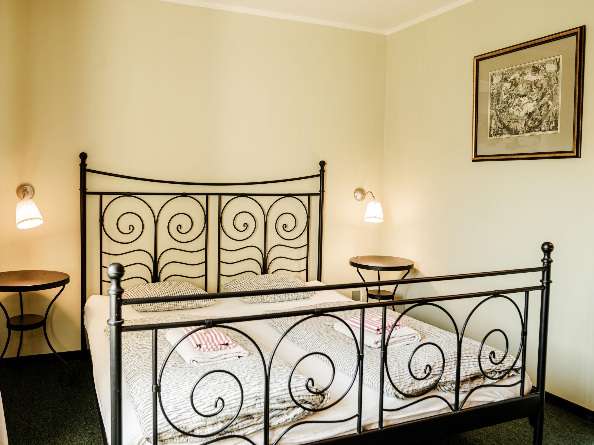 "Goethe", 3-room apartment 47 m2 on 1st floor. Very beautiful and cosy furnishings: living/sleeping room with 1 pull-out bed (2 pers.), dining table and satellite TV. 2 rooms, each room with 1 double bed. Kitchenette (2 hot plates, kettle, microwave, freezer). Shower/WC. Very beautiful view of the garden. Facilities: Internet (WiFi, free). Parking (fenced) at the house. Please note: suitable for families. Non-smokers only. Maximum 1 pet/ dog allowed. Fire extinguisher.