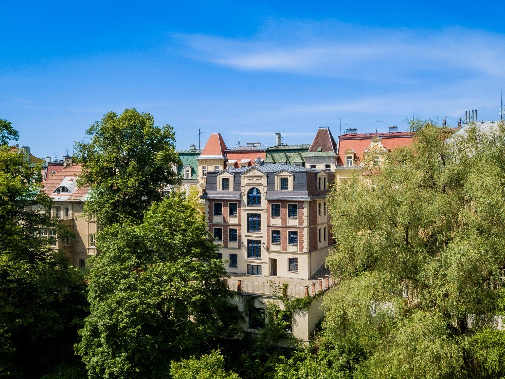 The mansion "Villa Merlin" is a house built in the old English style, situated in a residence quarter on the edge of the historical city centre of Marianske Lazne. House, 3 storeys, built in 2006. In the resort, 100 m from the centre, in a central, quiet position, located by a road, in the countryside. In the house: storage room for skis, central heating system. Parking on the premises. Shop, restaurant 100 m, bus stop "Mariánské lázne, tržnice" 400 m, outdoor swimming pool 1 km, indoor swimming pool 1 km. Golf course (18 hole) 3 km, tennis 500 m, slopes 3 km. Please note: the photo is just an example. Additional accommodations can be booked. The southeast side is opened over the house terrace into one of the most beautiful portions of the historical spa park. The proprietor arrange gladly on demand of guests an attendance of cultural events, of cure treatment, of drinking cures, a visit in the swimming pool, at the golf or tennis court, in the riding school, trips into the environs as well as scenic flights.