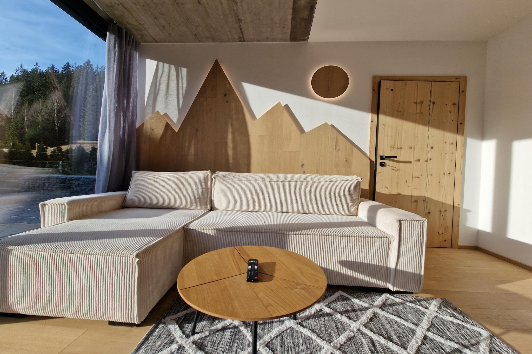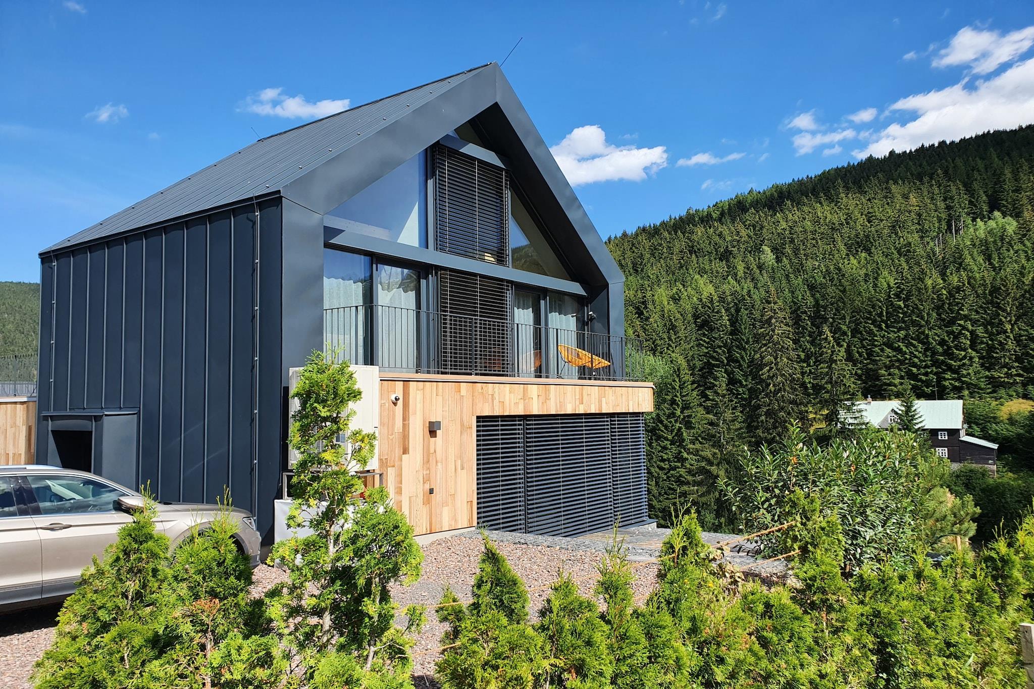 Oplev den perfekte blanding af natur og komfort i denne luksuslejlighed i Krkonoše-bjergene. Forestil dig at starte din dag med en kop kaffe på terrassen og se ud på de majestætiske bjergtoppe. Uanset om du er ivrig efter at vandre de nærliggende stier eller køre på skiløjperne kun få minutter væk, tilbyder denne beliggenhed uendelige muligheder for eventyr. Efter en dag udendørs kan du slappe af med en drink, mens du ser solen gå ned over bjergene. Denne moderne bygning byder på to smukt indrettede lejligheder, som hver har store vinduer, der indrammer det fantastiske bjerglandskab. Interiøret kombinerer luksuriøse træ- og stenmaterialer, hvilket skaber en hyggelig, men elegant atmosfære. Gratis privat parkering er tilgængelig, hvilket sikrer din bekvemmelighed under hele dit ophold. Lejligheden i stueetagen er perfekt til 3 gæster og omfatter et komfortabelt soveværelse, en stue med en sovesofa og et fuldt udstyret køkken. Det moderne badeværelse og yderligere faciliteter, såsom en barneseng og høj stol efter anmodning, sikrer et behageligt ophold. For skiløbere er der et fælles skiopbevaringsområde. Lejligheden har også en rummelig 25m² terrasse. For større grupper kan du overveje at booke loftslejligheden, som kan rumme op til 5 personer. Placeringen er ideel, med både byens centrum og skiløjperne kun en kort gåtur væk, og tilbyder det bedste fra begge verdener til eventyr og afslapning.