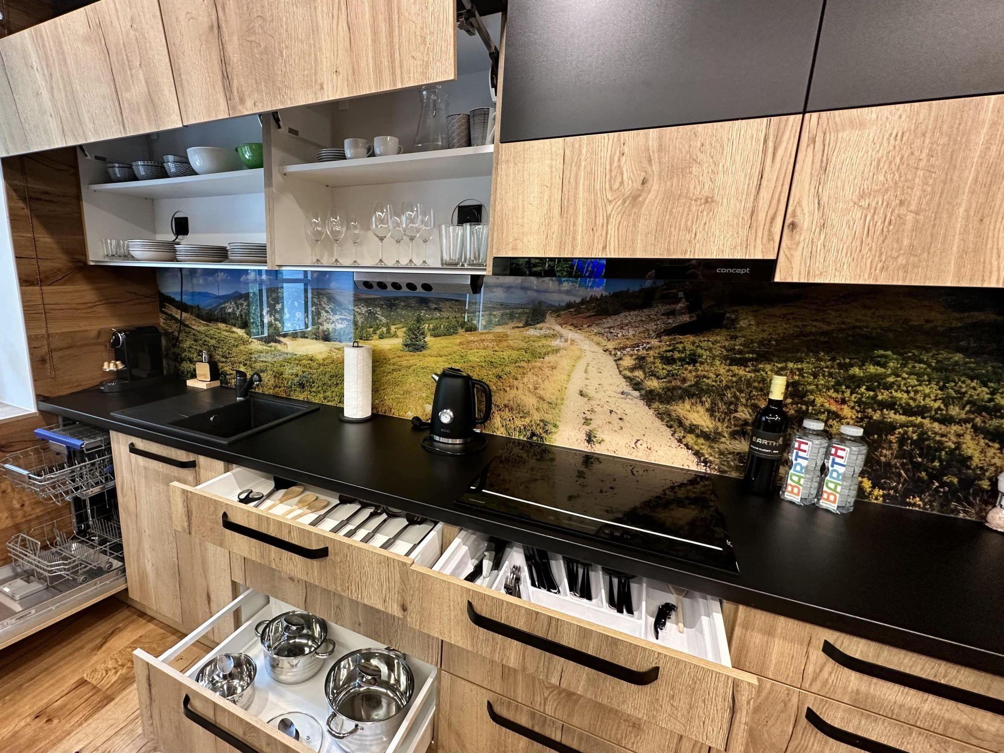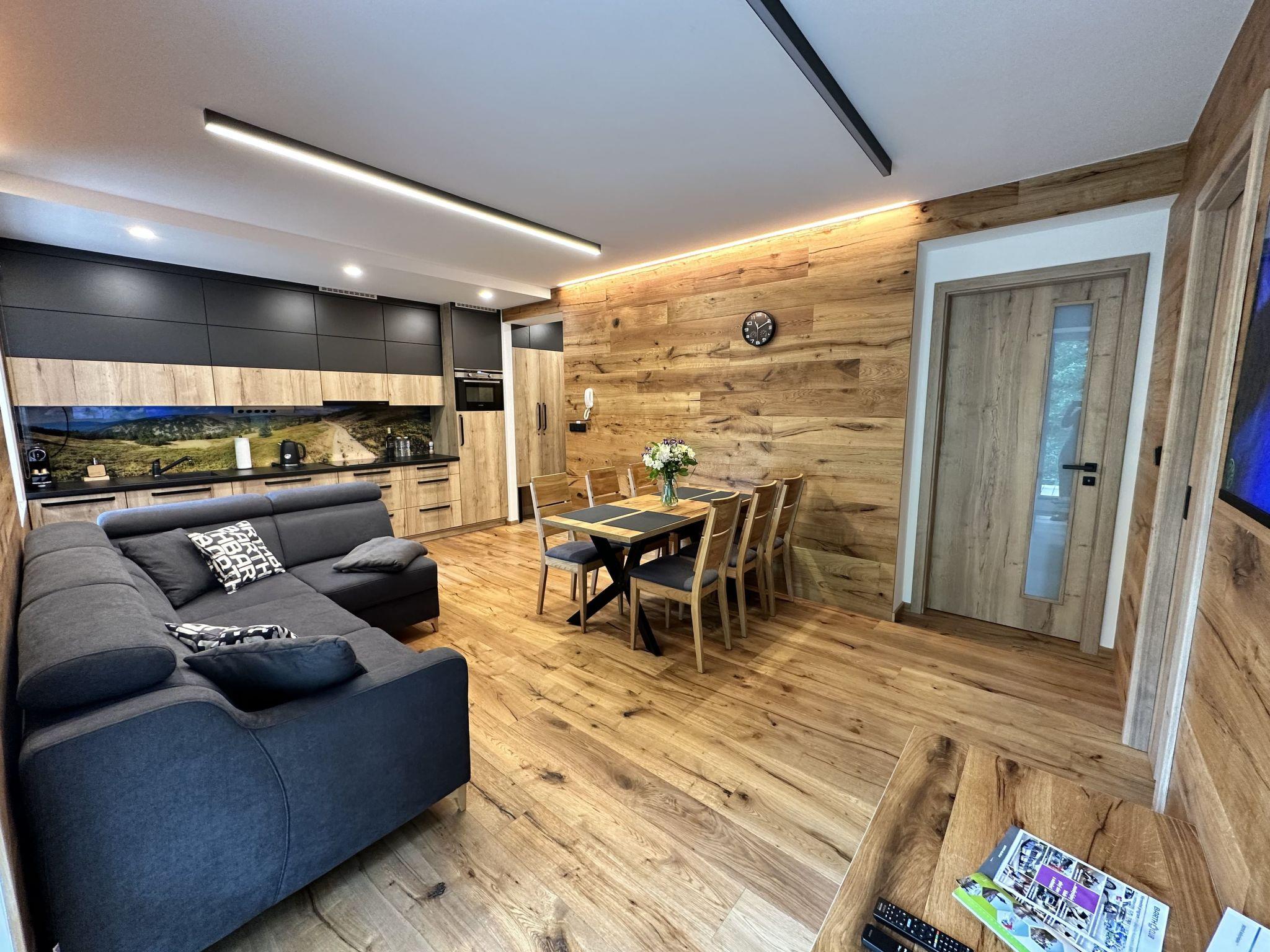 Modern, luxurious residence "Máj", 3 storeys, detached, renovated in 2023. In the centre of Pec pod Snežkou, 100 m from the edge of the forest, 1.3 km from the skiing area, 10 m from the river. In the house: storage room for skis, central heating system. Parking at the house. Shop 60 m, grocery 200 m, restaurant 60 m, bar, café 100 m, bicycle rental 500 m, pub garden 60 m, bus stop "Pec pod Snežkou" 300 m, indoor swimming pool 500 m. Sports centre 500 m, walking paths from the house, cycle lane 20 m, ski lift 1.3 km, chair lift 1.3 km, skisport facilities 1.3 km, ski rental 60 m, ski bus stop 200 m, ski school 1.3 km, children's ski school 1.3 km, cross country ski track 150 m, children's playground 400 m. Nearby attractions: Relaxpark, bobová dráha 400 m, Snežka (lanovka) 1.2 km, Obrí dul, Modrý dul, vodopády 3 km, Malá Úpa 8 km, Janské Lázne 15 km, Vrchlabí, Trutnov 30 km. Well-known ski regions can easily be reached: Pec pod Snežkou – Cerná Hora 1.3 km, Velká Úpa 2.5 km, Janské Lázne 15 km. Well-known lakes can easily be reached: Dolce 25 km. Hiking paths: Krkonošský národní park. Groups of teenagers on request only. The owner does not accept any youth groups.