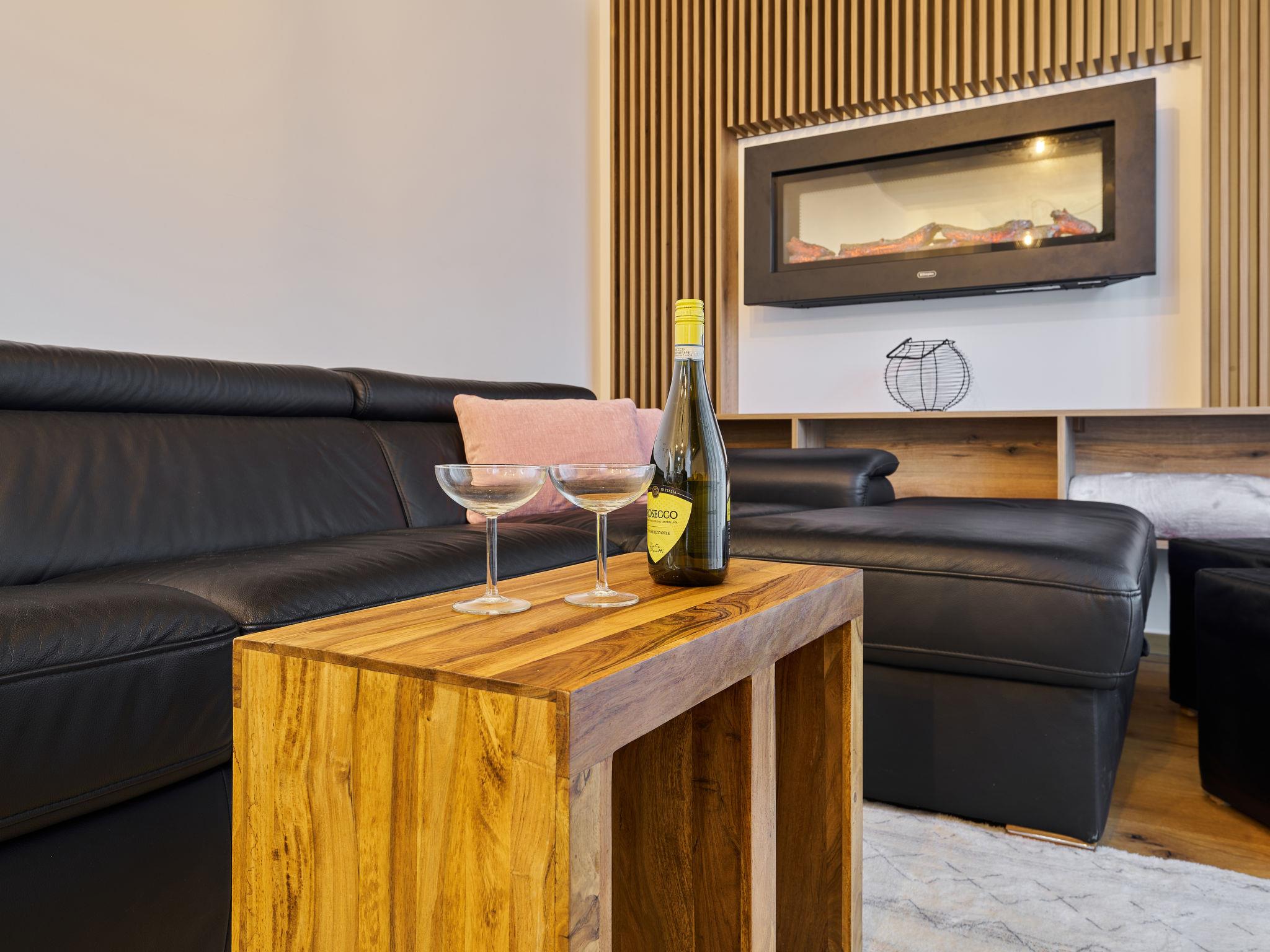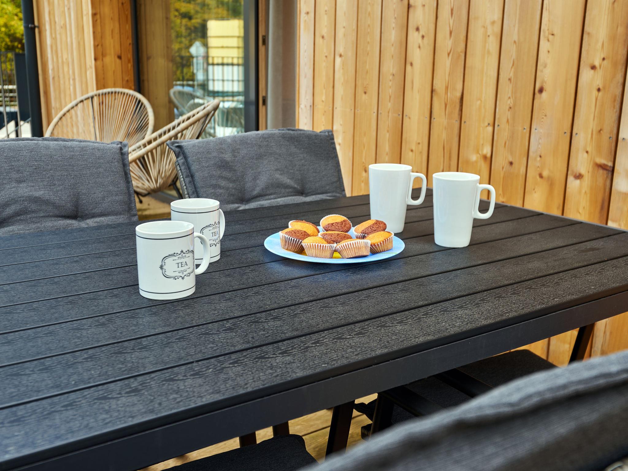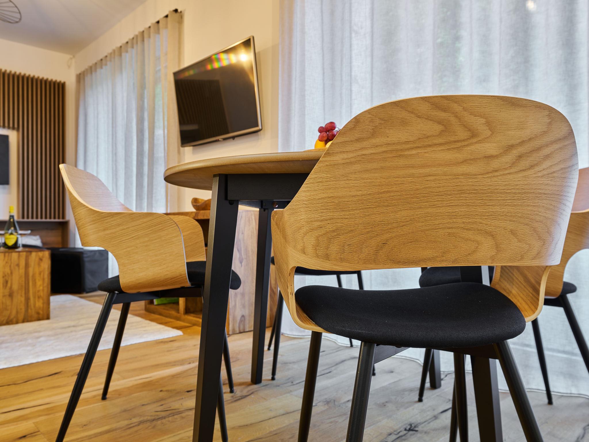 "Vogue Ridge Retreat & Terrace", 3-room apartment 74 m2, on the ground floor. Spacious and bright, very beautiful and modern furnishings: living/dining room with open-hearth fireplace, dining table and TV. Exit to the terrace. 1 room with 1 double bed, shower/WC and TV. Exit to the terrace. 1 room with 1 double bed and shower/WC. Kitchenette (oven, dishwasher, 4 induction hot plates, toaster, kettle, freezer, electric coffee machine). Heating. Large terrace 30 m2. Terrace furniture. Beautiful view of the countryside and the river. Facilities: Internet (WiFi, free). Parking (1 car). Please note: suitable for families. Non-smokers only.