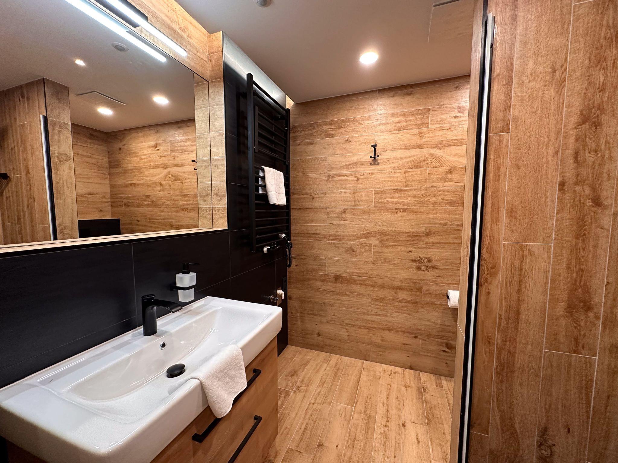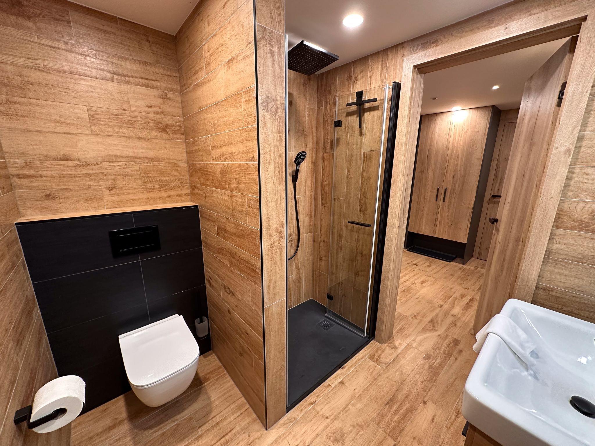Newly built Residence Krakonoš in the center of Pec pod Snežkou, in the immediate vicinity of the bobsleigh track, the rope park and the picturesque lake by the Úpa river. Modern, luxurious apartment block, 3 storeys, detached, built in 2023. In the centre of Pec pod Snežkou, 100 m from the edge of the forest, 1.5 km from the skiing area, 100 m from the river. In the complex: sauna, infrared sauna (all included), storage room for bicycles, storage room for skis, central heating system. Parking at the house. Grocery 300 m, restaurant 20 m, bar 100 m, bicycle rental 500 m, bus stop "Pec pod Snežkou, RELAXPARK" 190 m, indoor swimming pool 500 m. Sports centre 500 m, walking paths from the house 20 m, cycle lane, ski lift 1.5 km, chair lift 1.5 km, gondola lift 600 m, skisport facilities 1.5 km, slopes 1.5 km, ski rental 100 m, ski bus stop 500 m, ski school 1.5 km, children's ski school 1.5 km, cross country ski track 150 m, children's playground 500 m. Nearby attractions: Relaxpark, bobová dráha 100 m, Snežka (lanovka) 600 m, Obrí dul, Modrý dul, vodopády 3 km, Aquacentrum Jánské Lázne 15 km, Vrchlabí, Trutn 30 km, Aquapark Špindleruv Mlýn 45 km. Well-known ski regions can easily be reached: Pec pod Snežkou–Cerná Hora 1.5 km, Velká Úpa 2,5 km, Penkavcí vrch 6 km, Trešnovka– Horní Maršov, Janské Lázne 15 km. Well-known lakes can easily be reached: Dolce 25 km. Hiking paths: Krkonošský národní park.