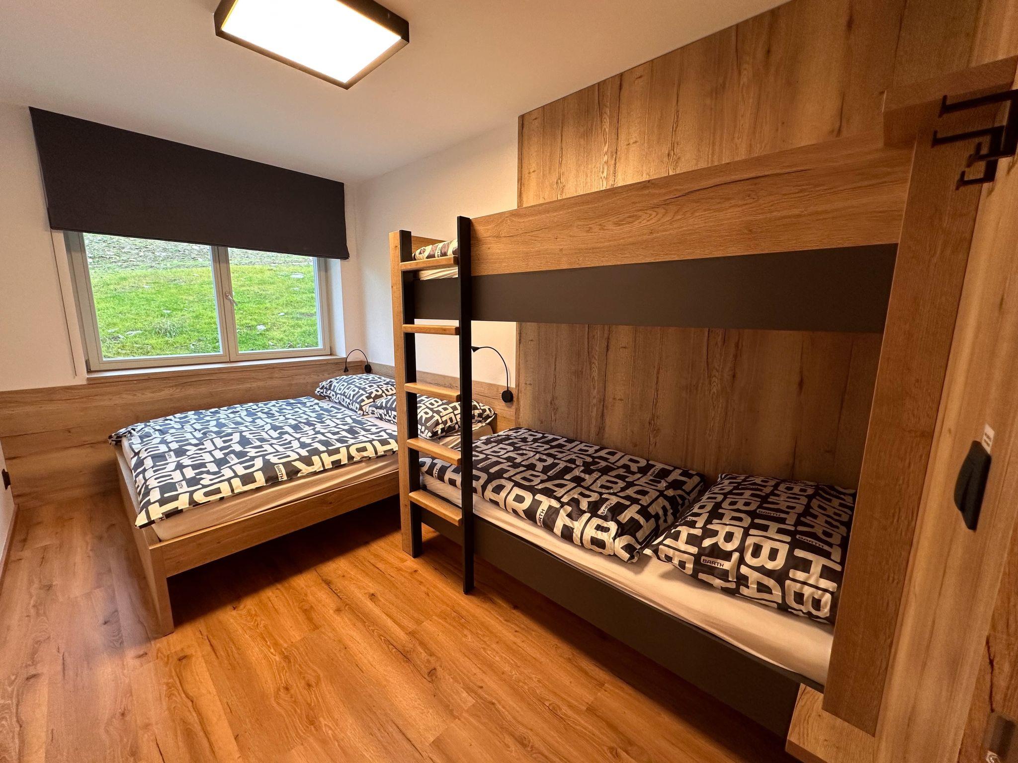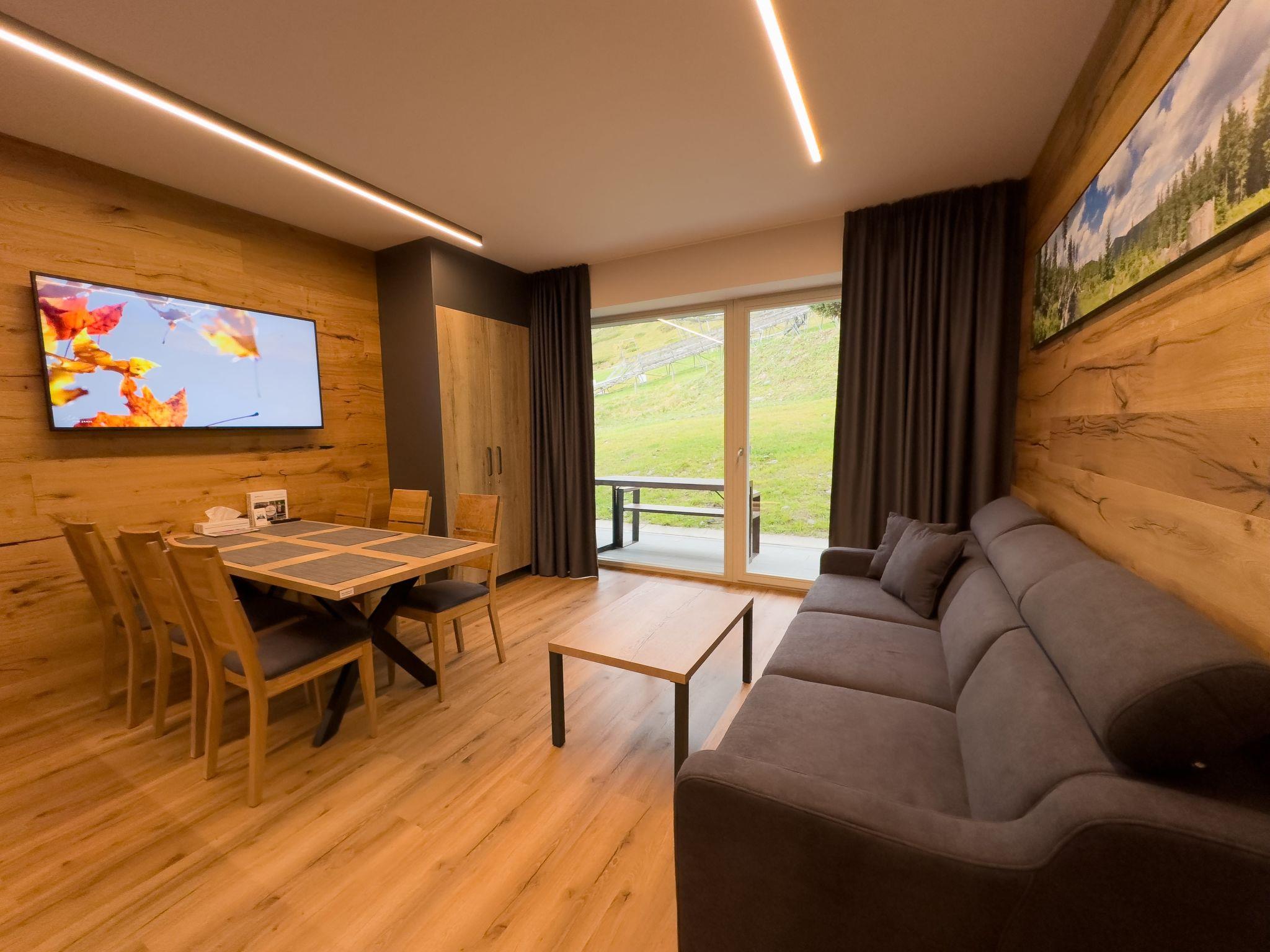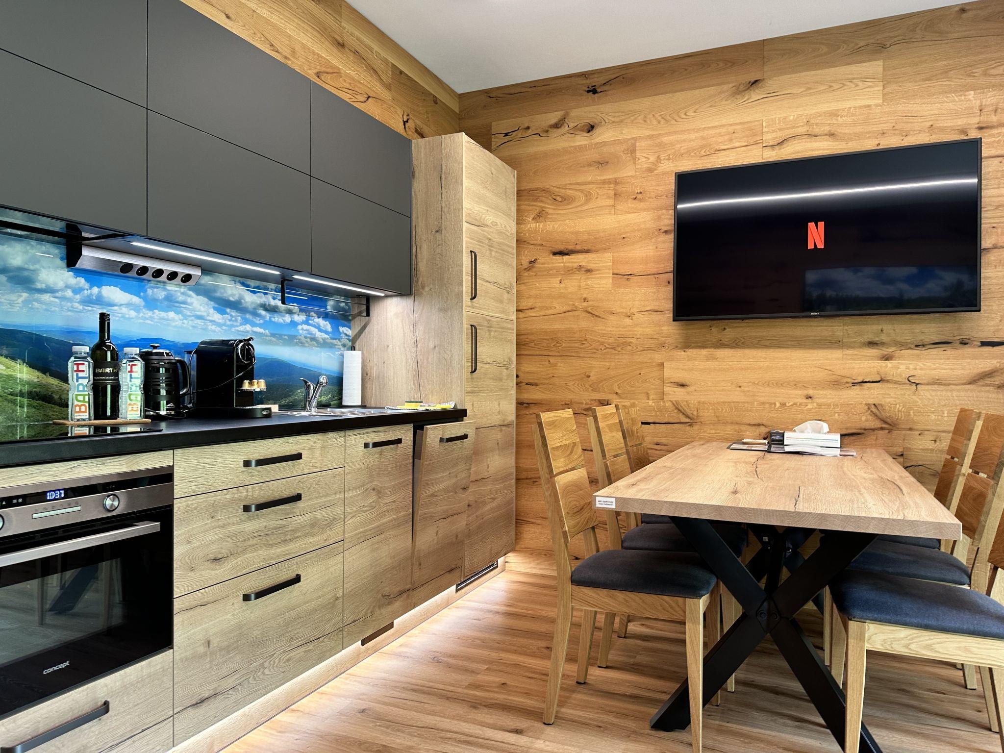 "Rezidence Krakonoš 102", 2-room apartment on the ground floor. Spacious, luxurious furnishings: living room with 1 sofabed, dining table and TV. Exit to the terrace. 1 room with 1 x 2 bunk beds, 1 double bed. Kitchenette (oven, dishwasher, 4 ceramic glass hob hotplates, microwave, freezer, electric coffee machine). Shower/WC. Terrace. Terrace furniture. Beautiful view of the countryside. Facilities: Internet (WiFi, free). Parking (roofed). E-charging station. Please note: suitable for families. Non-smokers only.