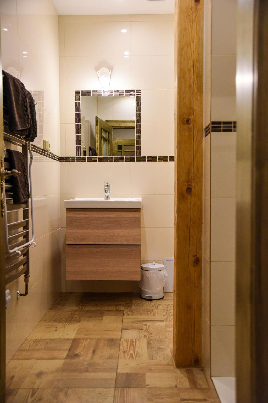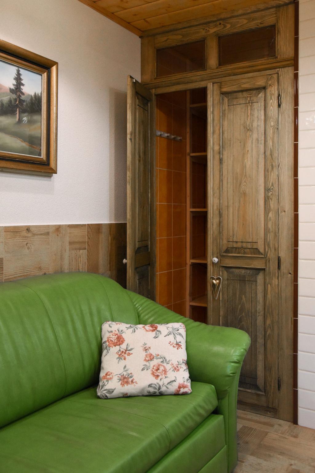 "Stará Hut", 3-room apartment 60 m2 on 1st floor. Fully renovated in 2017, beautiful and modern furnishings: living/sleeping room with 1 bed, 1 pull-out bed, dining table and satellite TV. 1 room with 1 x 1 bunk beds, 1 double bed. 1 room with 1 x 1 bunk beds, 1 double bed. Exit to the balcony. Kitchenette (oven, dishwasher, 4 ceramic glass hob hotplates, toaster, kettle, microwave, electric coffee machine). Shower/WC. Floor heating. Balcony. Beautiful view of the river and the forest. Facilities: children's high chair, baby cot. Internet (WiFi, free). Please note: suitable for families. Non-smokers only. Maximum 2 small pets/ dogs allowed. Smoke alarm, fire extinguisher.