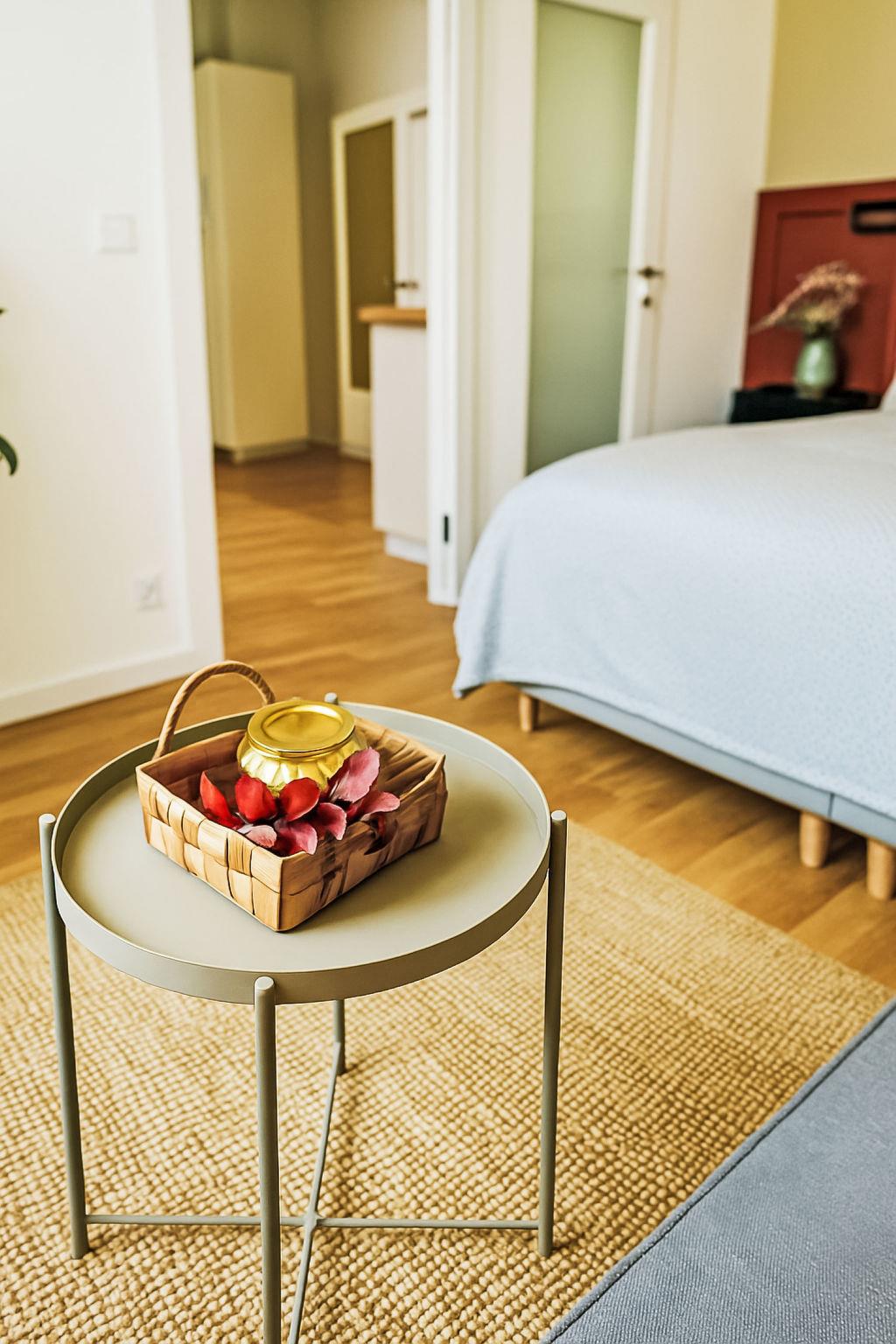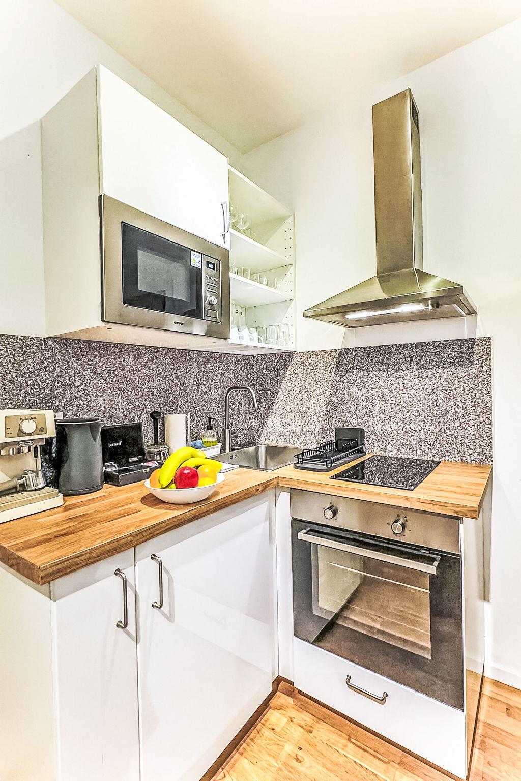 2-room apartment 38 m2 on 5th floor. Bright, fully renovated, very beautiful and modern furnishings: open living/dining room with 1 sofabed, 1 double bed and TV (flat screen). 1 double bedroom. Small kitchenette (2 hot plates, oven, kettle, microwave, electric coffee machine). Shower/WC. Heating. Wooden floors. Facilities: washing machine, baby cot, hair dryer. Internet (WiFi, free). Please note: suitable for families apartment courtyard side. Non-smokers only. Maximum 1 pet/ dog allowed. Smoke alarm, fire extinguisher.