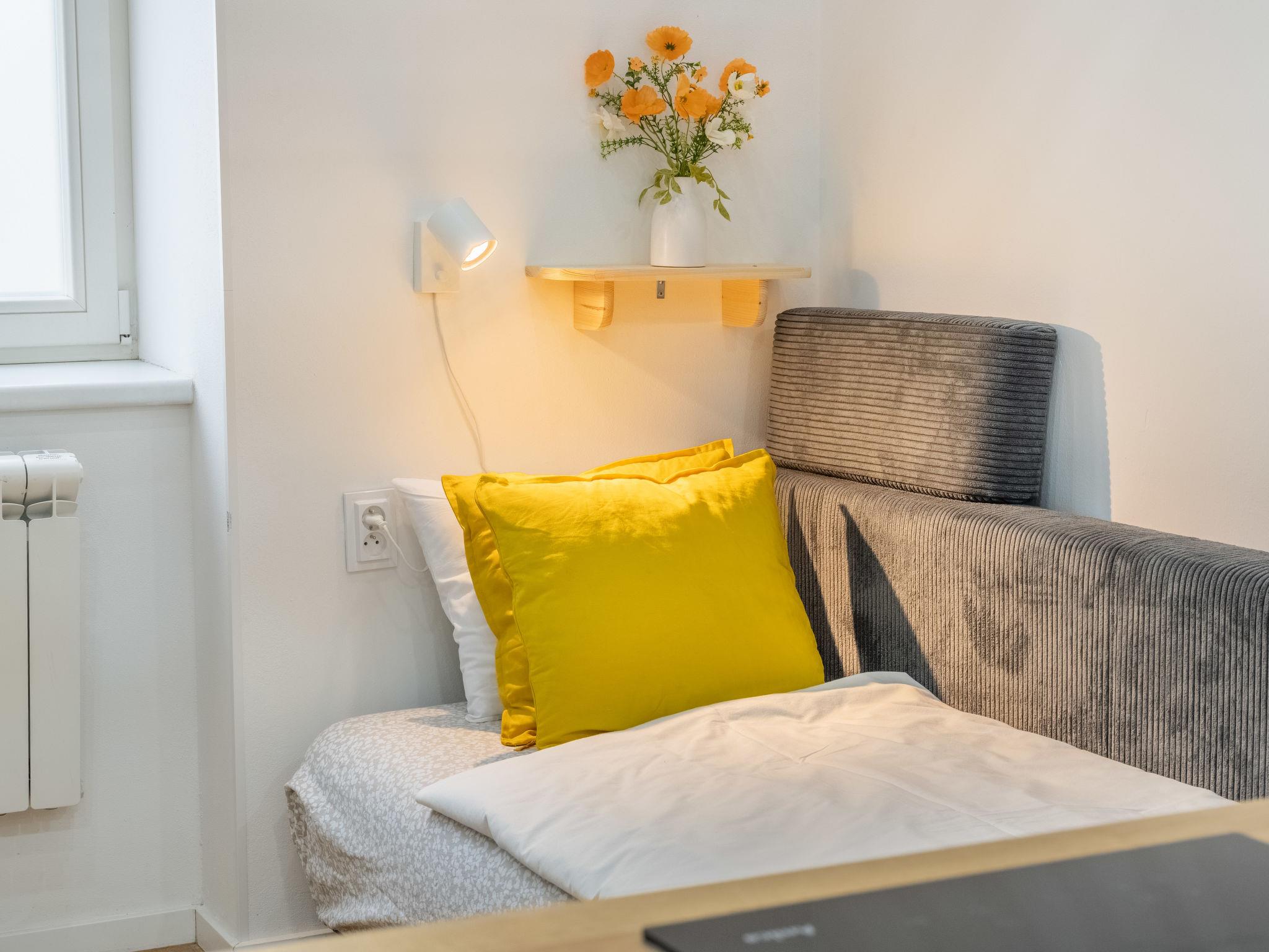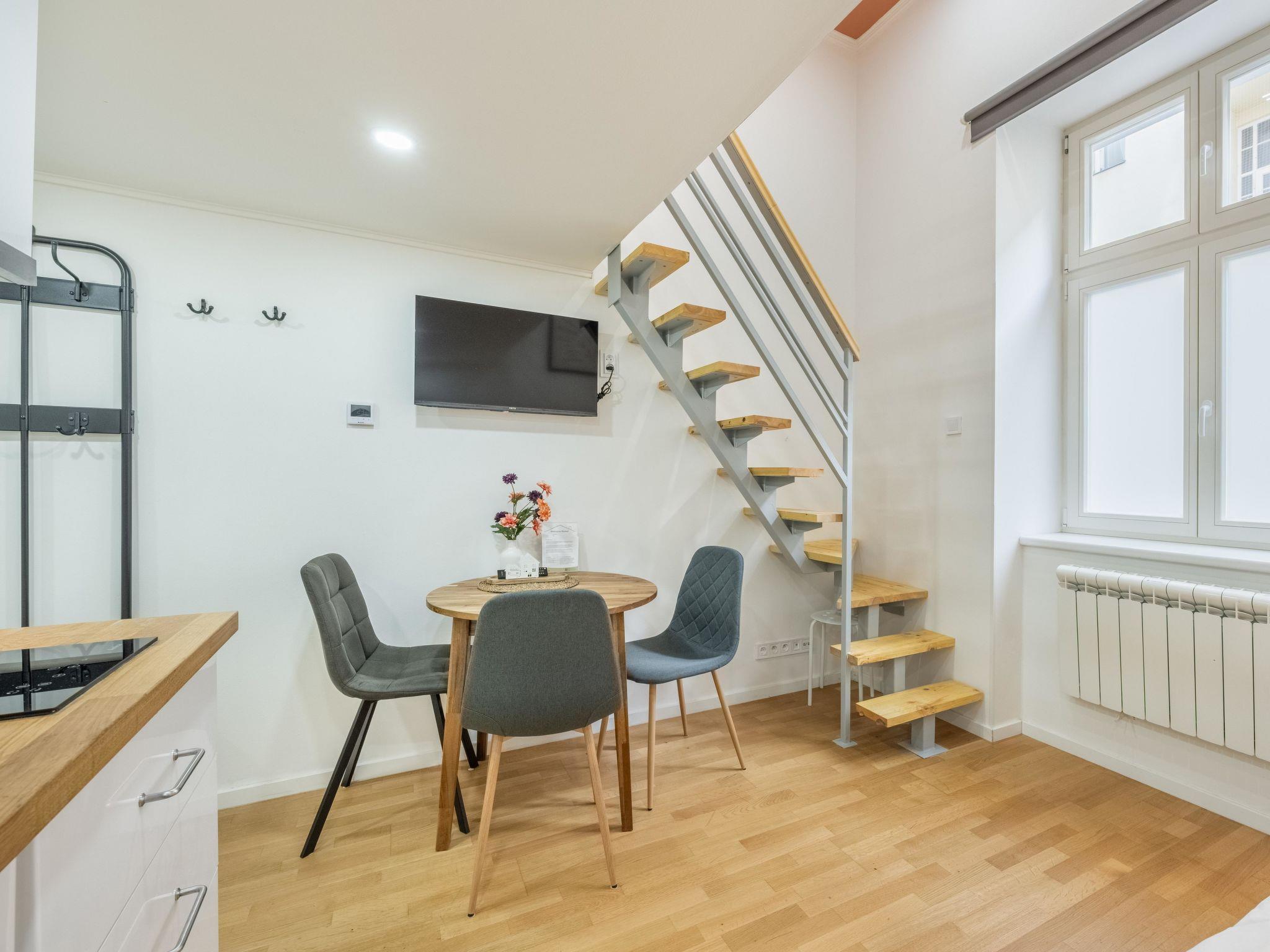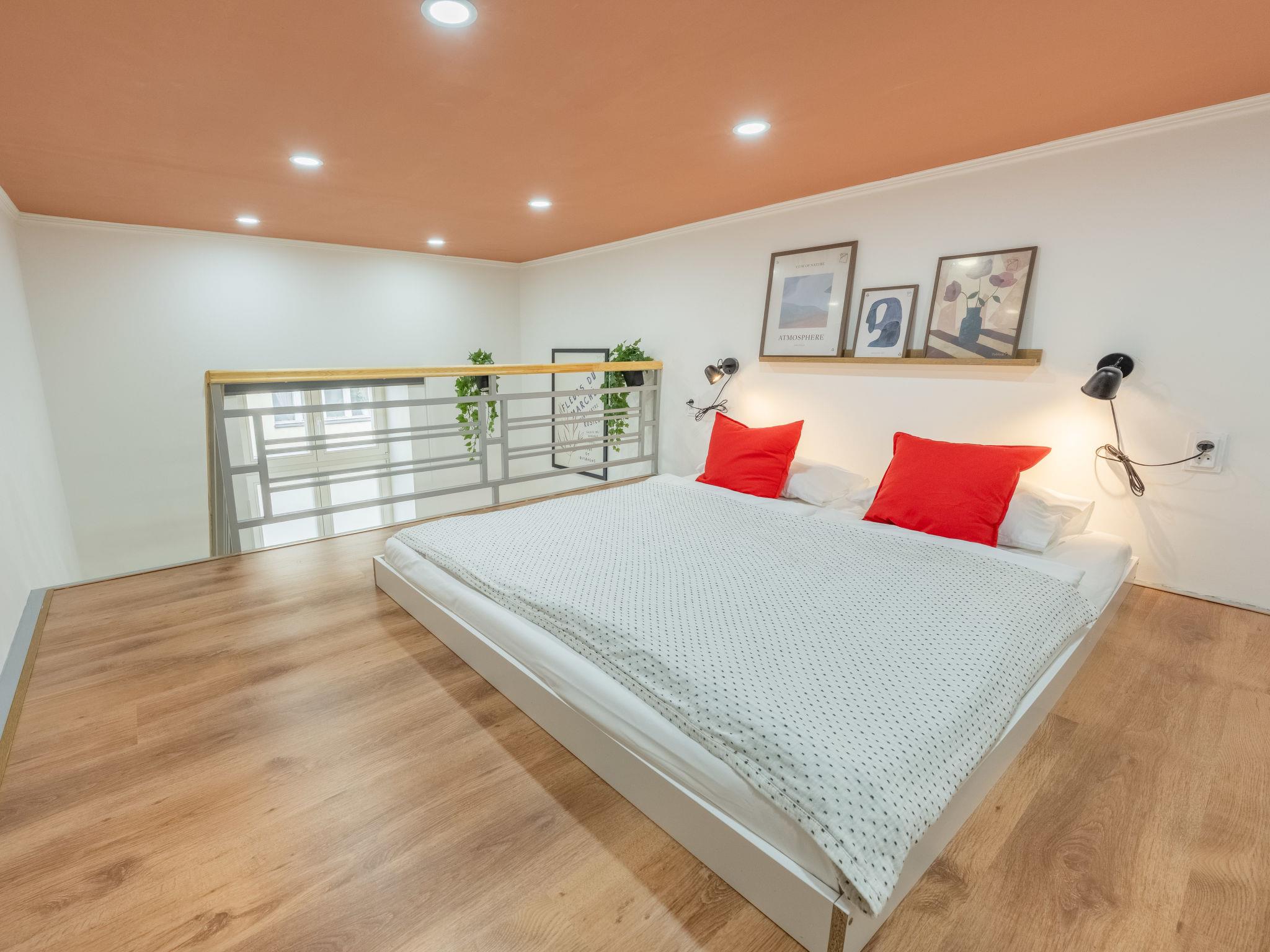 2-room apartment 30 m2 on 2nd floor. Bright, fully renovated, very beautiful and modern furnishings: entrance hall. Living/dining room with 1 double sofabed (150 cm, length 200 cm), dining table and TV. Kitchenette (2 induction hot plates, toaster, kettle, microwave, freezer, electric coffee machine). Shower/WC. Upper floor: (steep stair) open gallery with 1 double bed (180 cm, length 200 cm). Facilities: washing machine, baby cot, hair dryer. Internet (WiFi, free). Please note: suitable for families apartment courtyard side. Non-smokers only. Maximum 1 pet/ dog allowed. Smoke alarm, fire extinguisher.