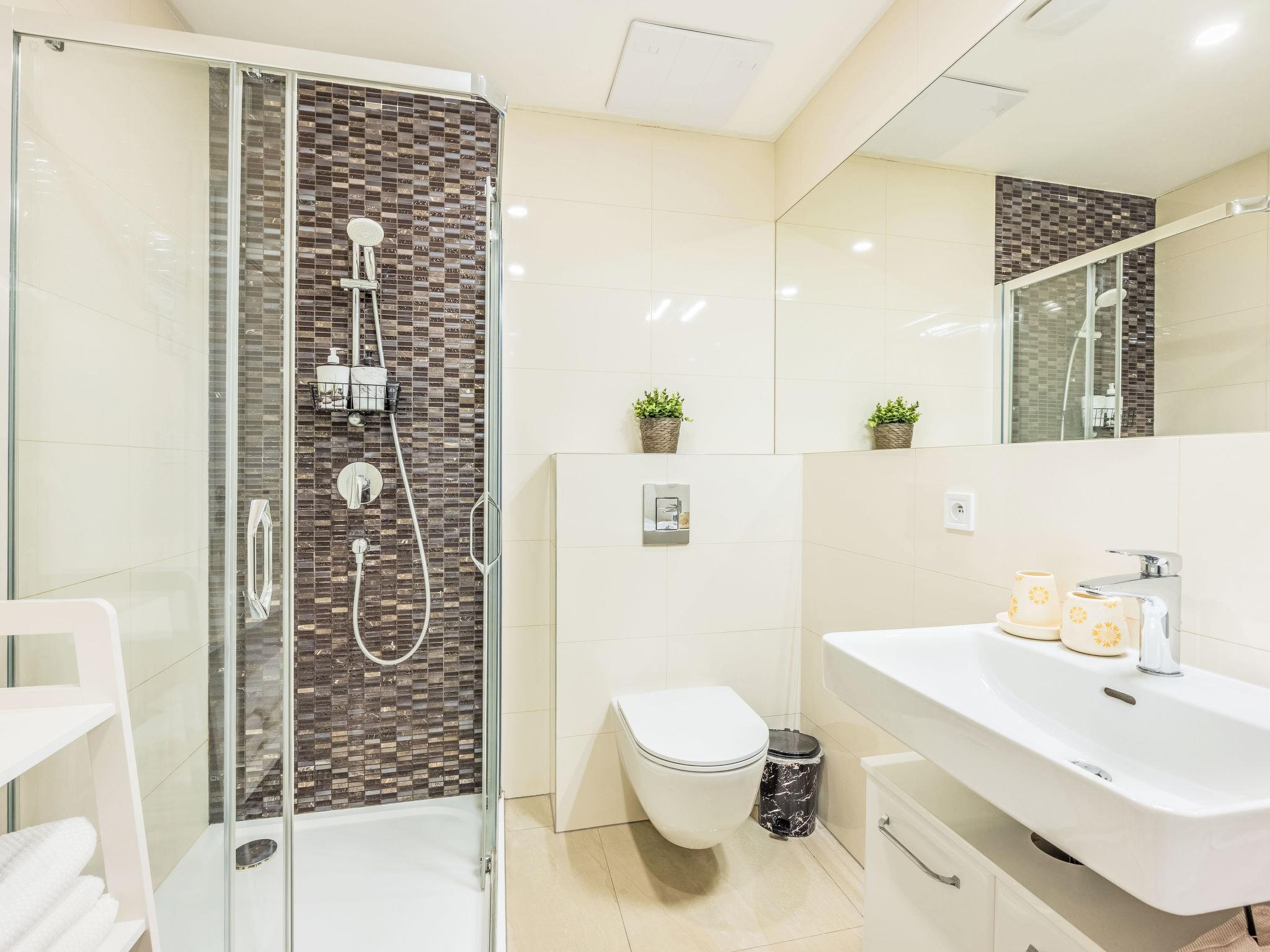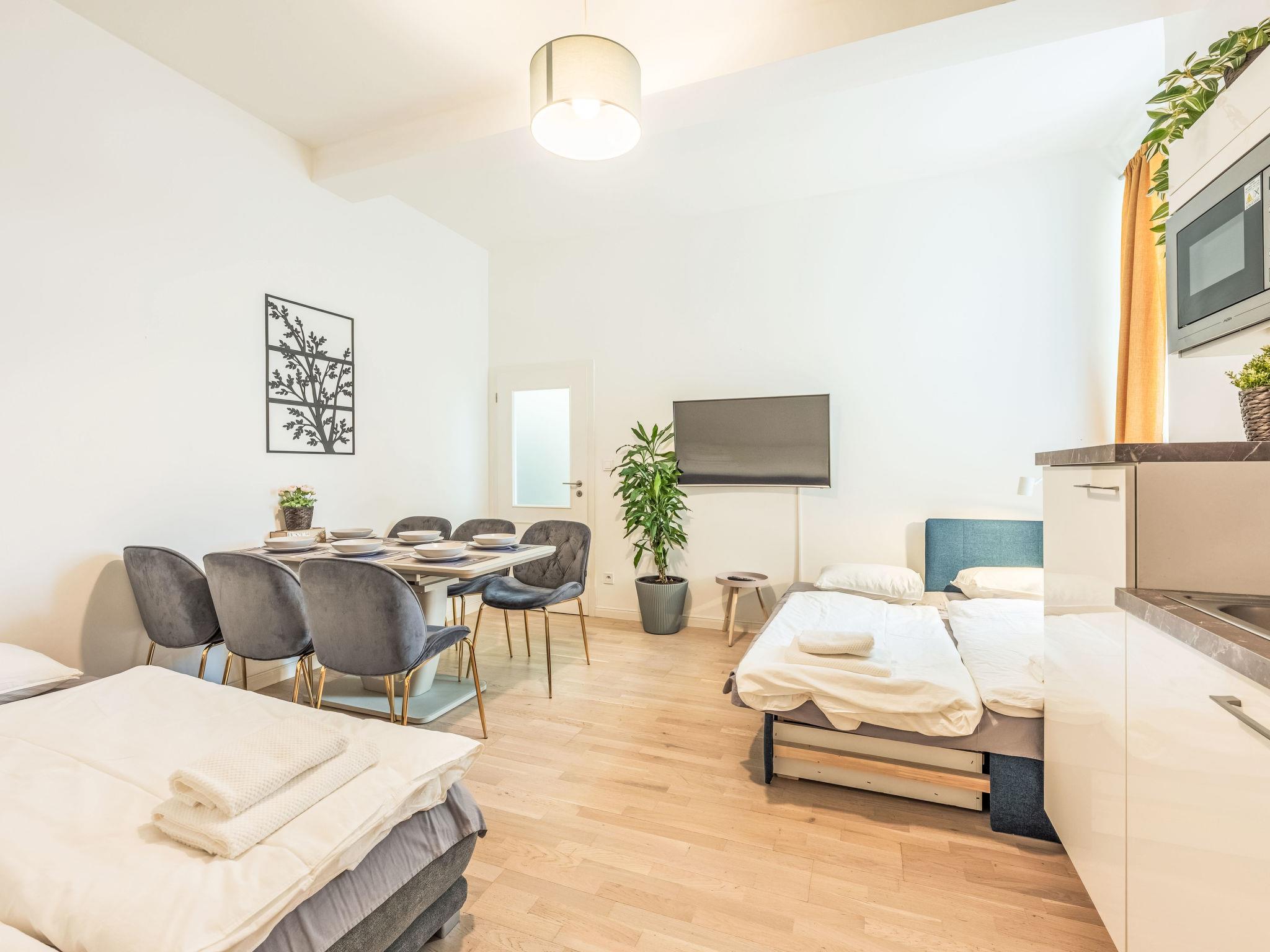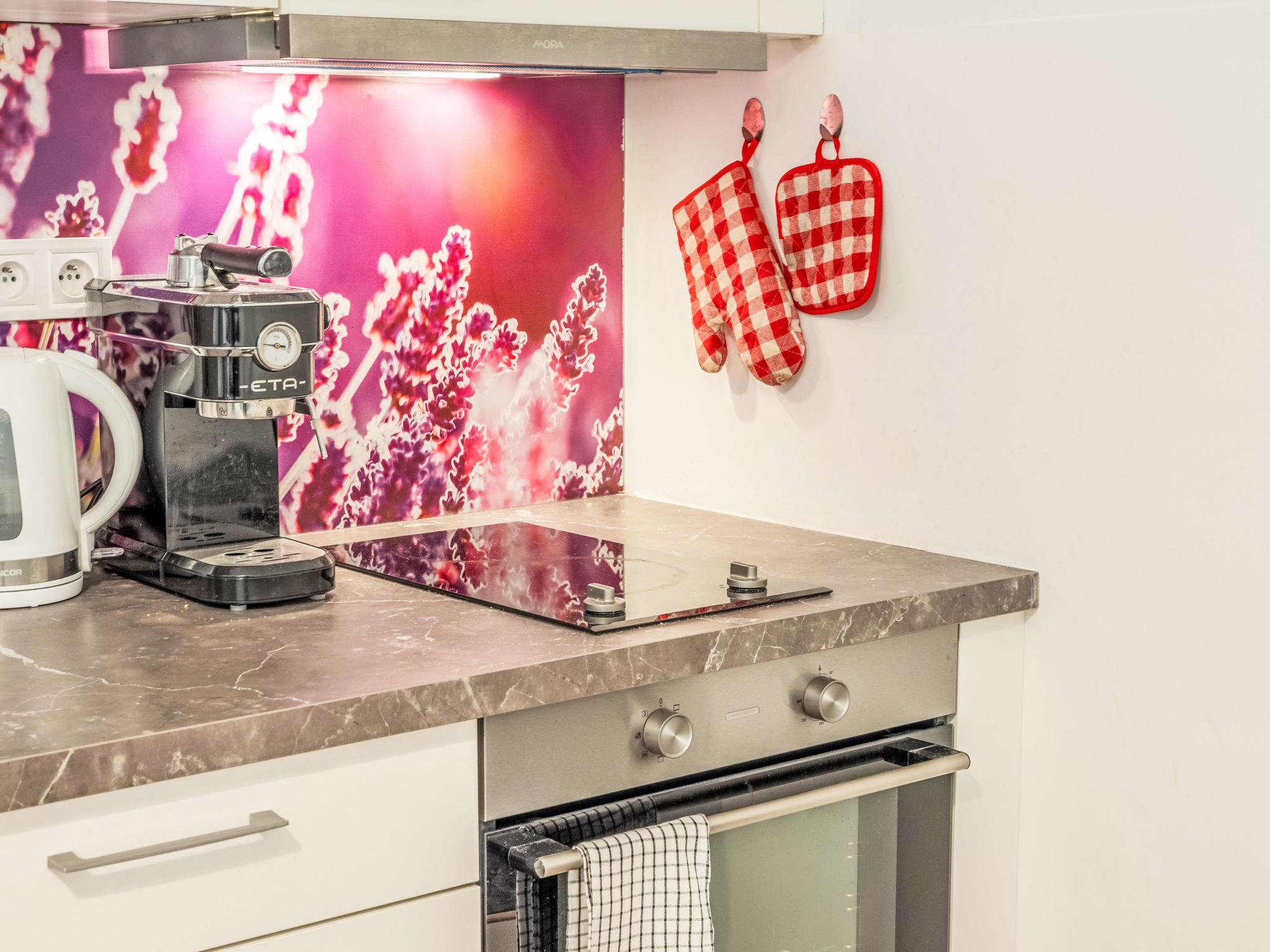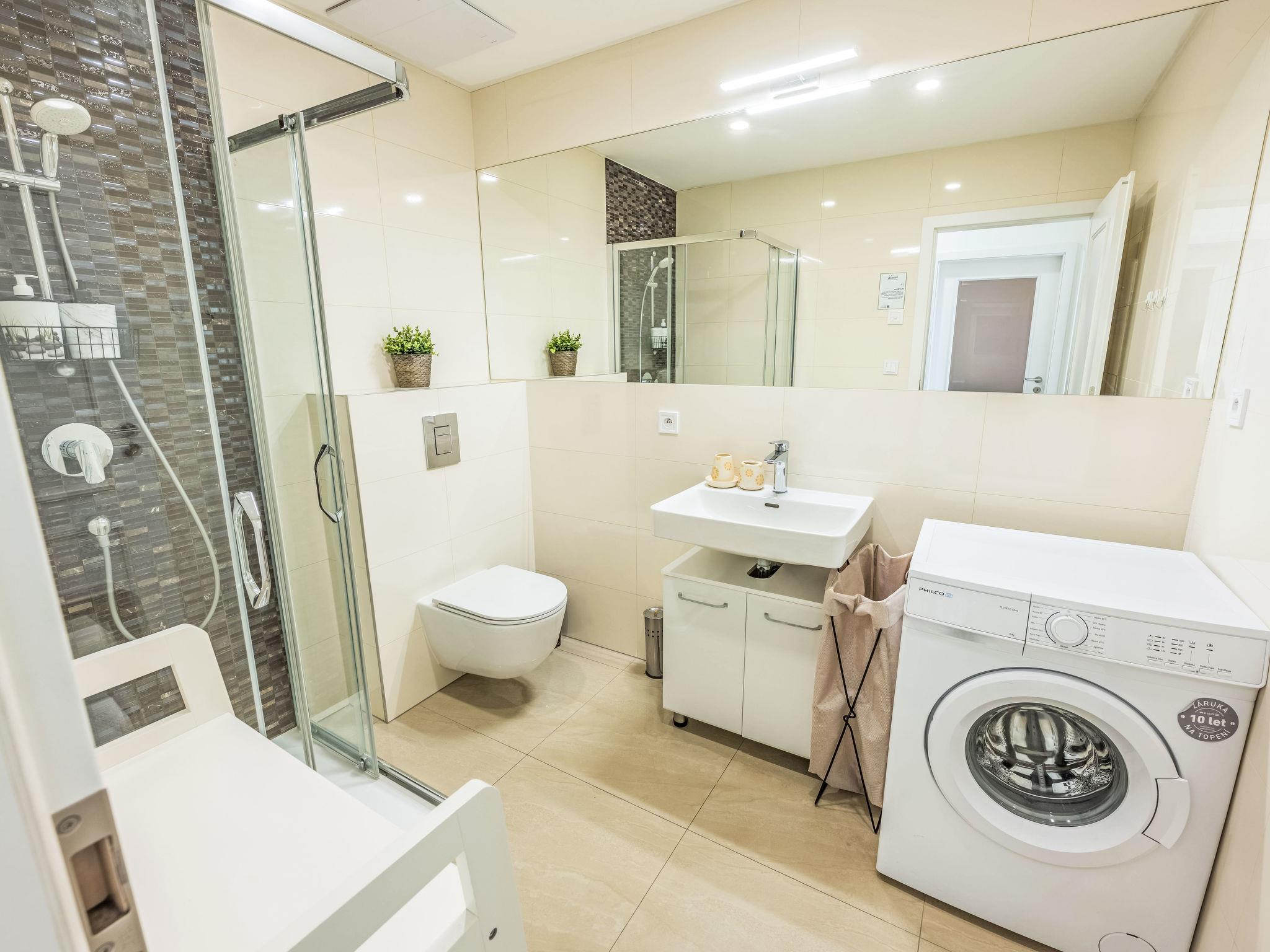 2-room apartment 42 m2 on 4th floor. Bright, fully renovated, very beautiful and modern furnishings: entrance hall. Living/dining room with 2 double beds, dining table and TV. 1 room with 1 bed and 1 double bed. Kitchenette (oven, 2 induction hot plates, toaster, kettle, microwave, freezer, electric coffee machine). Shower/WC. Facilities: washing machine, baby cot, hair dryer. Internet (WiFi, free). Please note: suitable for families apartment courtyard side. Non-smokers only. Maximum 1 pet/ dog allowed. Smoke alarm, fire extinguisher.