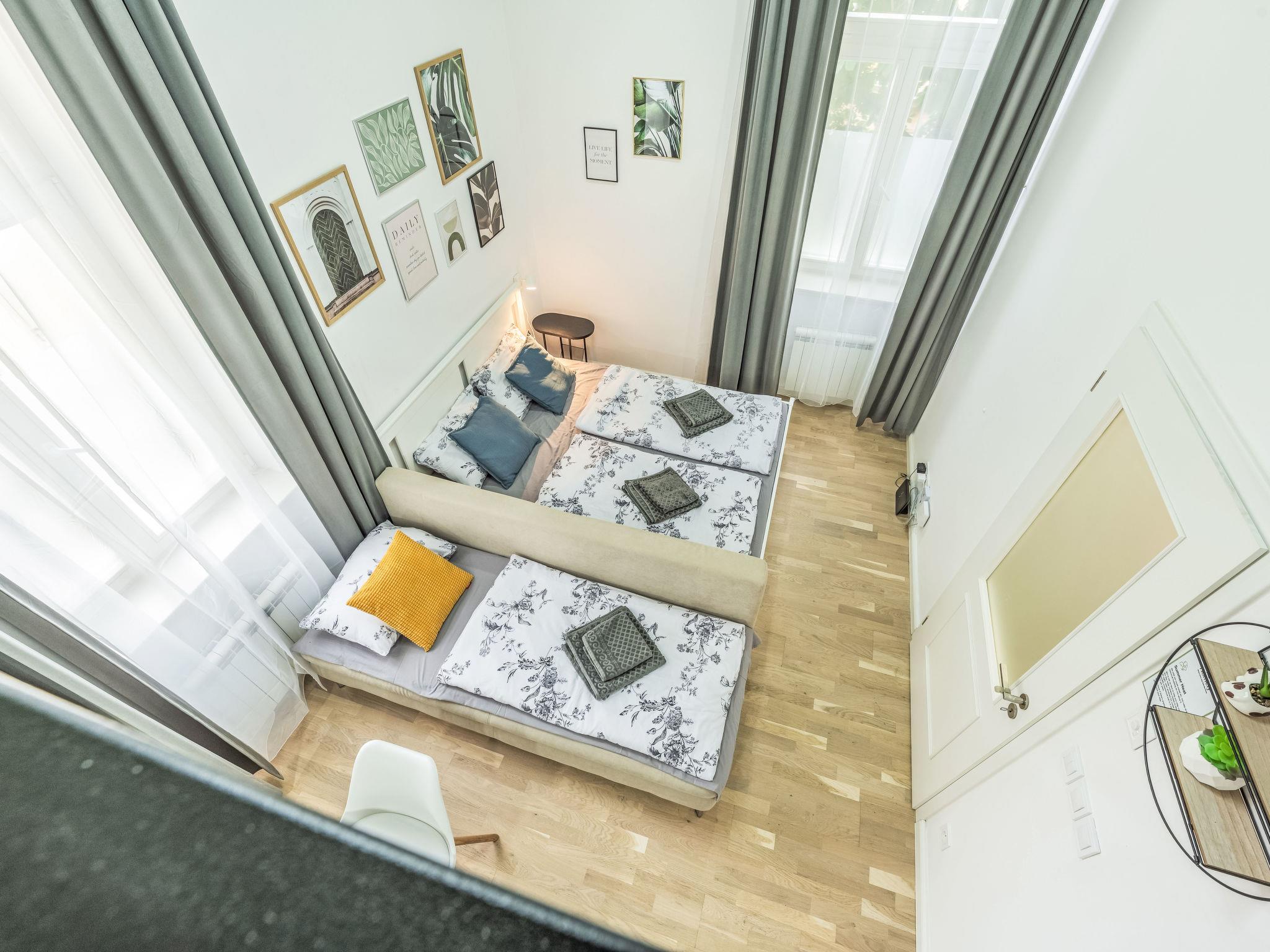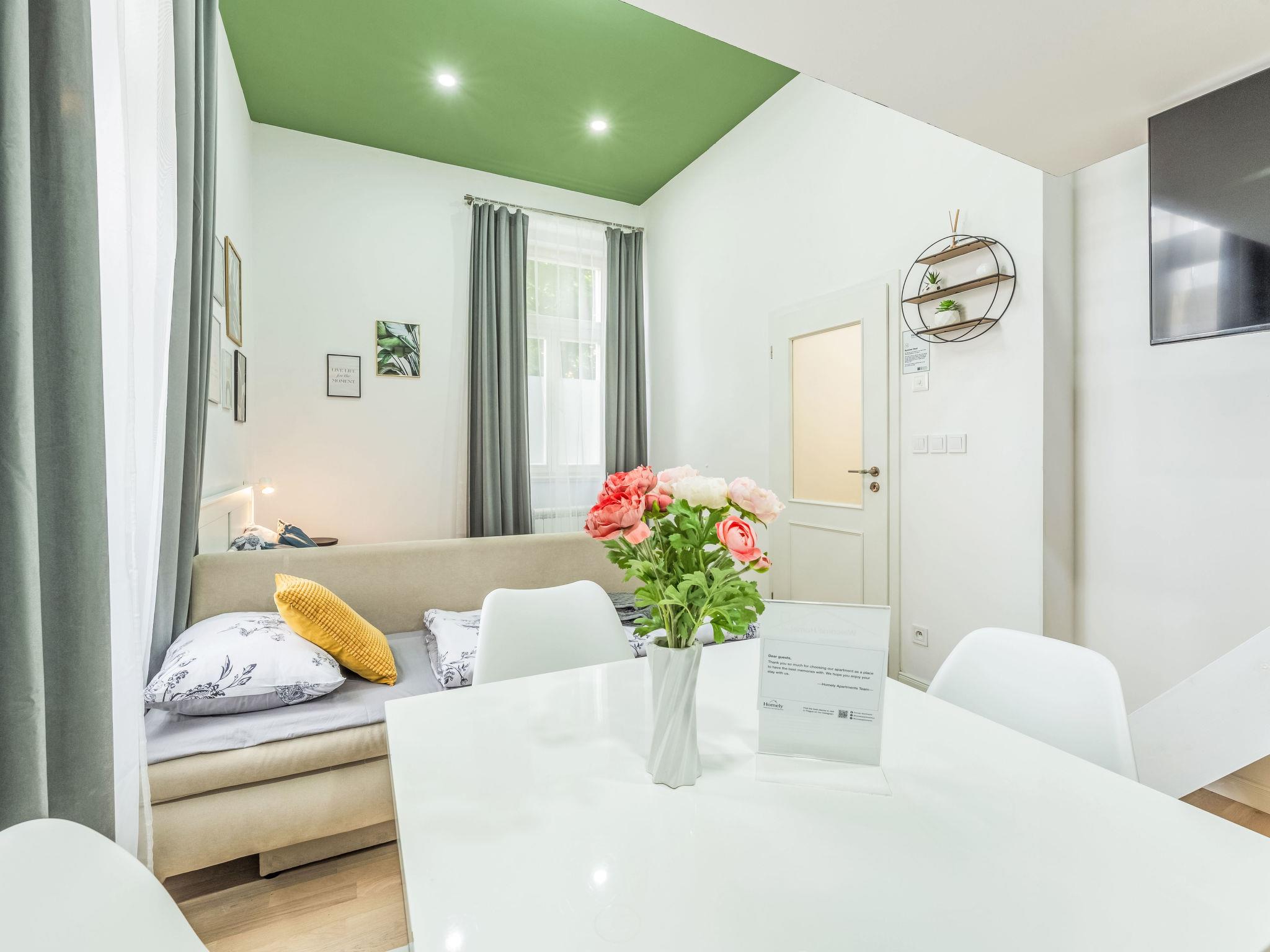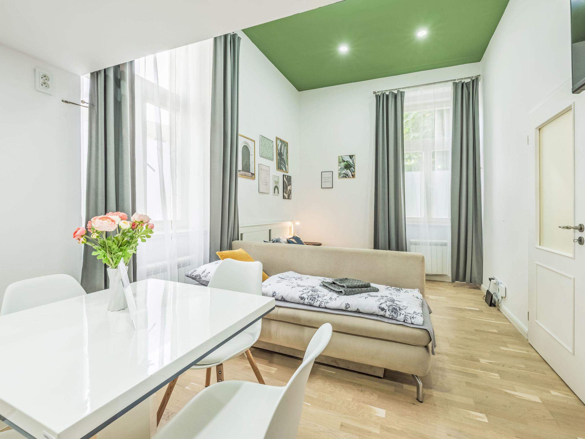 2-room apartment 32 m2 on 2nd floor. Bright, fully renovated, very beautiful and modern furnishings: entrance hall. Living/dining room with 1 sofabed, 1 double bed, dining table and TV. Open small gallery with 2 sleeping facilities. Kitchenette (2 induction hot plates, toaster, kettle, microwave, freezer, electric coffee machine). Shower/WC. Facilities: washing machine, baby cot, hair dryer. Internet (WiFi, free). Please note: suitable for families apartment courtyard side. Non-smokers only. Maximum 1 pet/ dog allowed. Smoke alarm. Instead of an enclosed bedroom, some sleeping areas are located in an open-plan area (gallery, alcove, etc.).