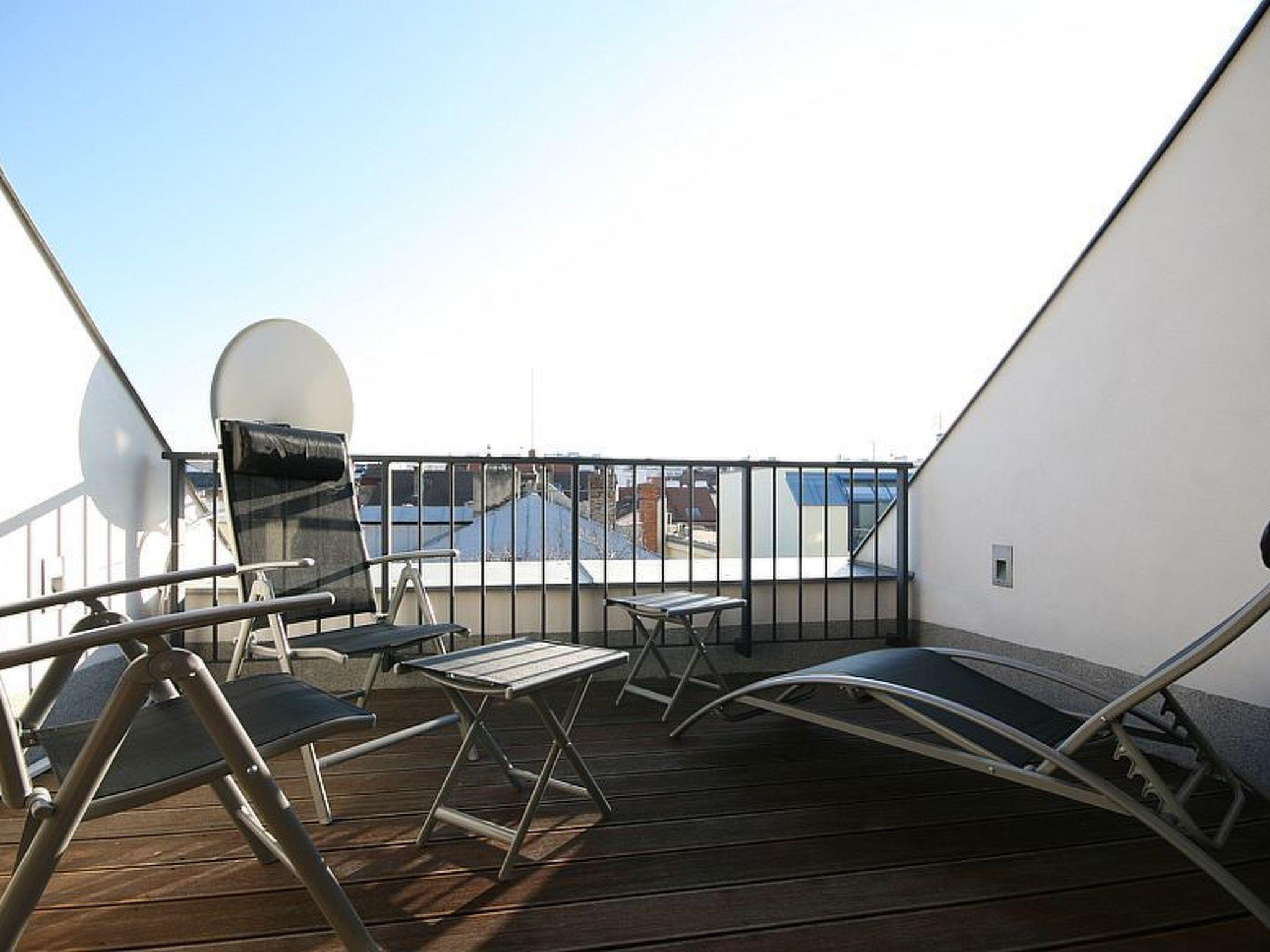 The apartment has a roof terrace with garden furniture.