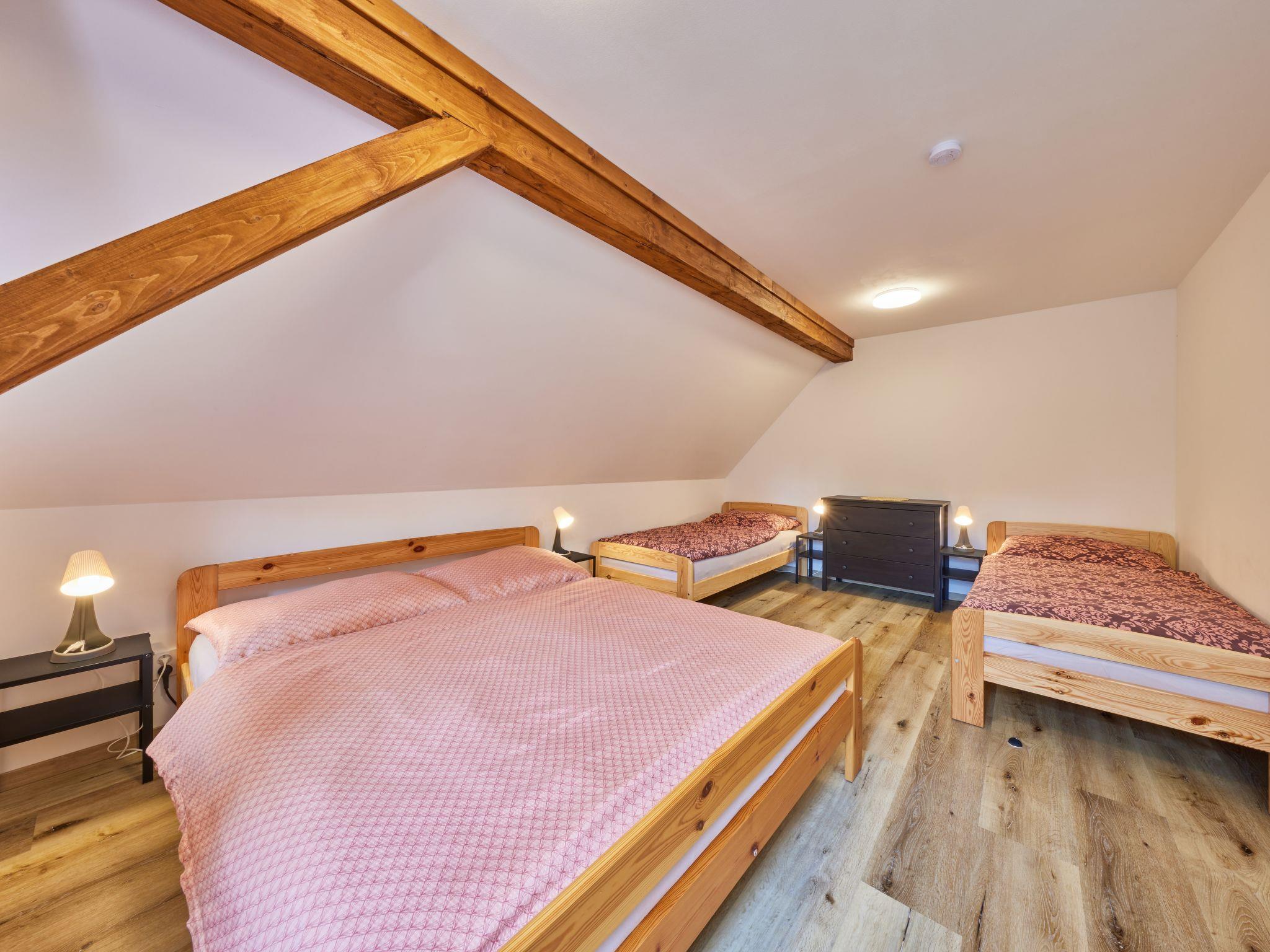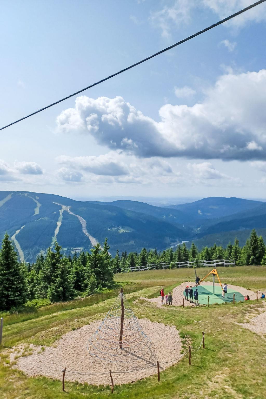 4 km from Rudník: Very beautiful chalet "Bolkov", 2 storeys, built in 1940, renovated in 2021. 2 apartments in the property. On the outskirts, in a quiet, sunny position, 100 m from the edge of the forest, 8 km from the skiing area. For shared use: property 2'500 m2, garden (not fenced). Table tennis, patio, garden furniture, fireplace, children's playground (swing, sandbox). In the house: trampoline, storage room for bicycles, storage room for skis, washing machine, tumble dryer (for shared use). Parking (for 5 cars) on the premises. Grocery 4 km, supermarket 11 km, restaurant 400 m, bus stop "Rudník - pivovar" 2 km, thermal baths "Janské Lázne" 14 km. Tennis 14 km, walking paths from the house 10 m, cycle lane 100 m, ski lift 8 km, chair lift 8 km, slopes 8 km, ski school 8 km, children's ski school 8 km, sled run 12 km, cross country ski track 100 m, ice rink 14 km. Nearby attractions: Cerná hora, Stezka v korunách stromu 12 km, Vrchlabí 13 km, Janské Lázne Spa 14 m, Aquapark Trutnov 21 km, Labská prehrada 26 km, Zoo Safari Dvur Králové, Špindleruv Mlýn 28 km, Hospital Kuks 37 km, Adršpašské skály 40 km. Well-known ski regions can easily be reached: Cerný Dul 8 km, Mladé Buky 12 km, Janské Lázne 14 km, Herlíkovice 19 km, Pec pod Snežkou 26 km. Hiking paths: Snežka 25 km. Please note: suitable for families.