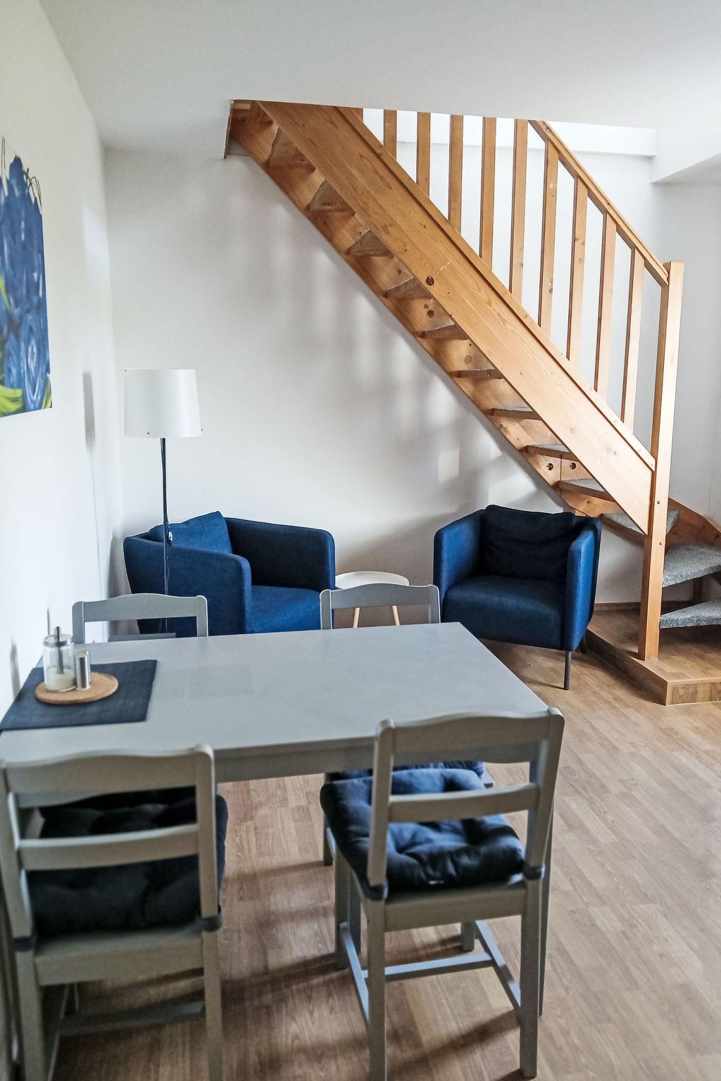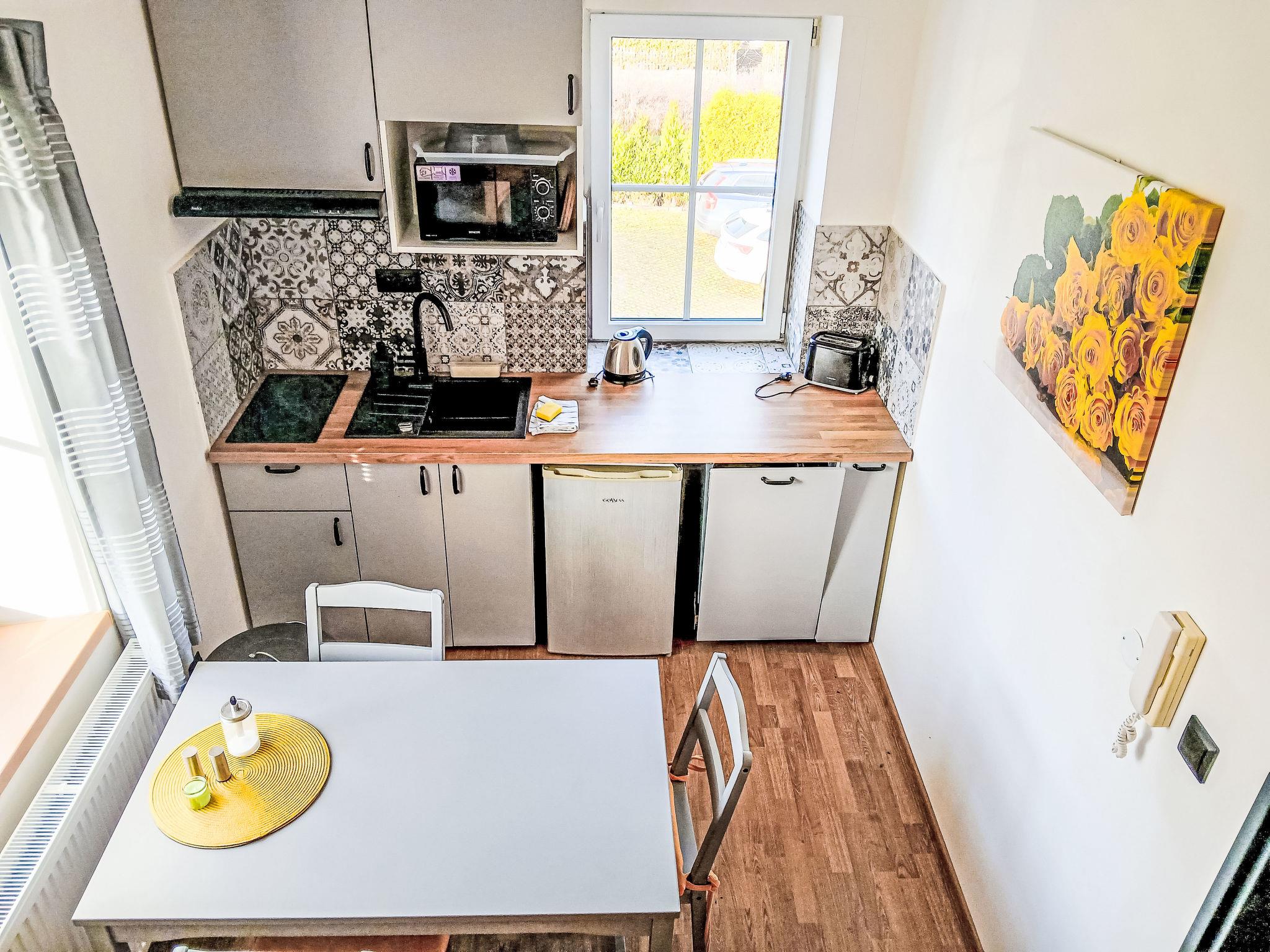 "Ružová 2", 2-room apartment. Comfortable and beautiful furnishings: living/dining room. Kitchenette (dishwasher, 2 induction hot plates, toaster, kettle, microwave) with dining table. Shower/WC. Electric heating. Upper floor: (steep stair) open, 1 room with 1 bed and 1 double bed. Very beautiful view. Facilities: hair dryer. Internet (WiFi, free). Please note: suitable for families. Non-smokers only. 1 pet/ dog allowed.