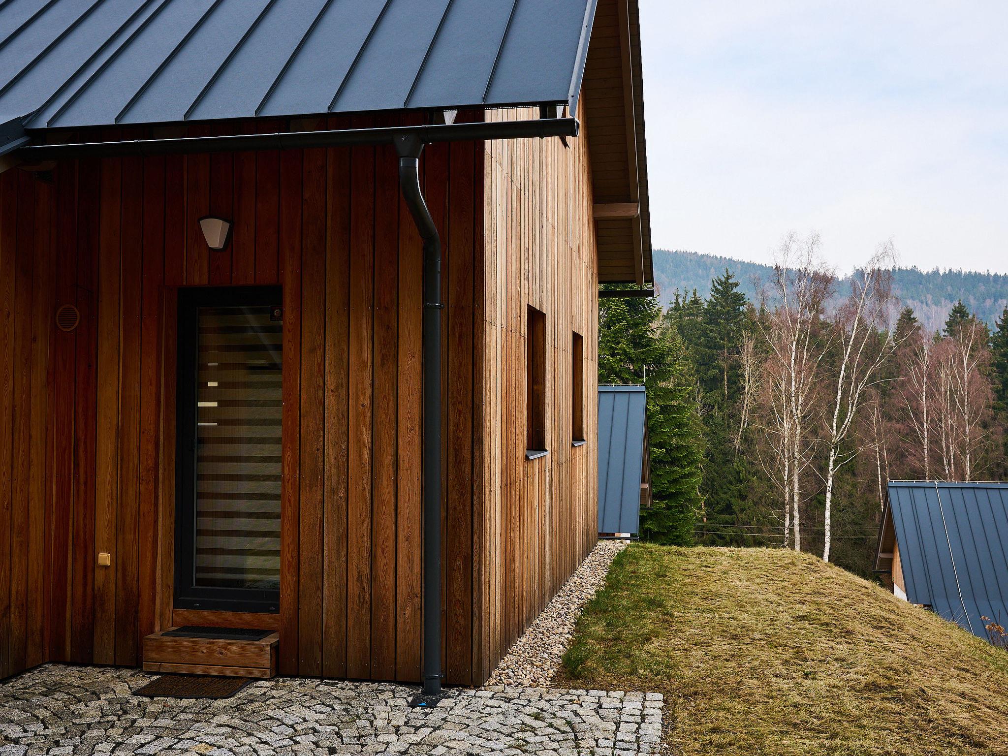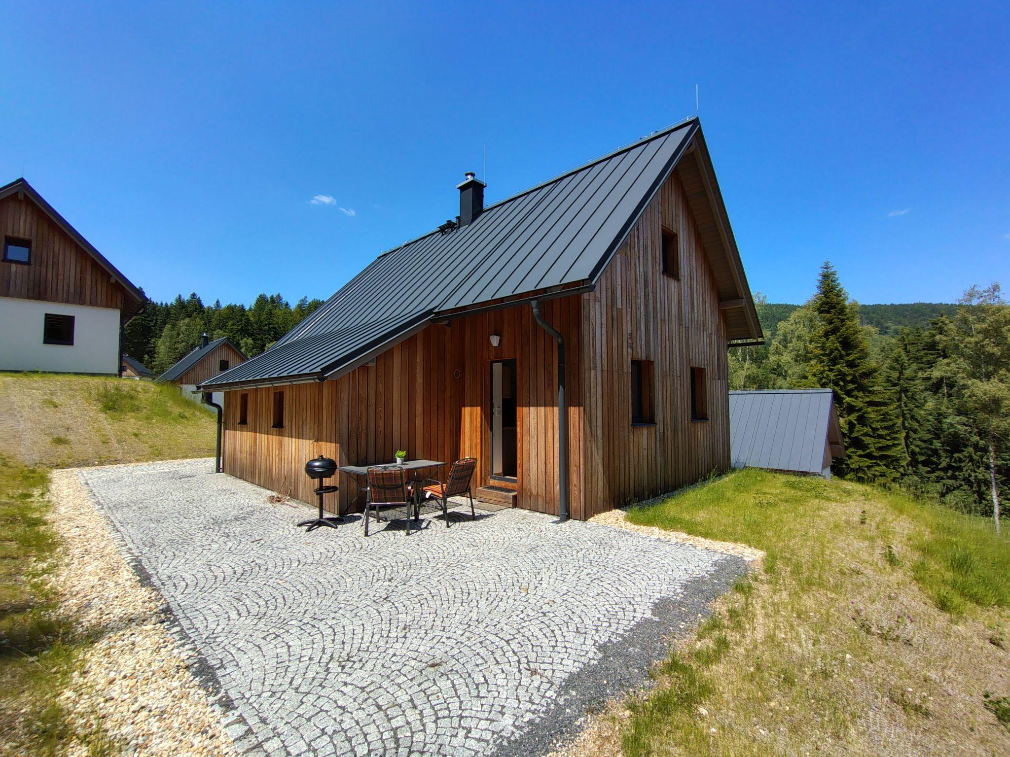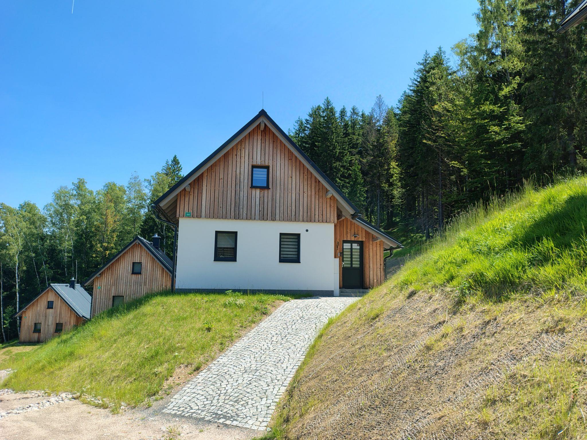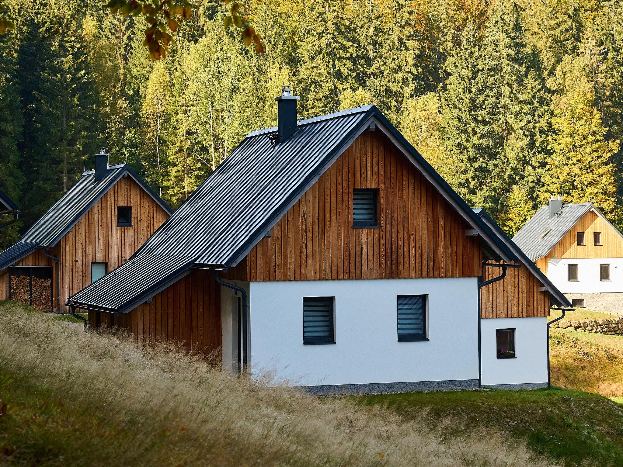 Very beautiful, comfortable chalet "Pod lesem", 2 storeys, detached, built in 2023. Outside the resort, along the wooded area, 2 km from the skiing area. Private: property. Terrace. In Winter: please take snow chains. Parking. Shop 2 km, grocery 2.5 km, supermarket 6 km, shopping centre 20 km, restaurant 2 km, bus stop "Jiretín pod Bukovou" 1.4 km, railway station "Jiretín pod Bukovou" 1.3 km, outdoor swimming pool 7 km, indoor swimming pool 20 km. Golf course (9 hole) 17 km, walking paths from the house 10 m, cycle lane 100 m, ski lift 2 km, slopes 2 km, ski rental 2 km, ski school 2 km, cross country ski track 100 m, children's playground 3 km. Nearby attractions: Rozhledna Cerná Studnice 6 km, Muzeum obrnené techniky Smržovka 6 km, Vodopády Jedlové 7 km, Kittelovo muzeum v Krásné 12 km, Aquapark Babylon, IQLandia, ZOO Liberec 22 km, Bozkovské jeskyne 22 km. Well-known ski regions can easily be reached: Tanvaldský Špicák 2 km, Filip Smržovka 4 km, Svetlý Vrch Albrechtice 4 km, Josefuv Dul 7 km, Severák, Bedrichov 12 km. Hiking paths: Hrebenovka.