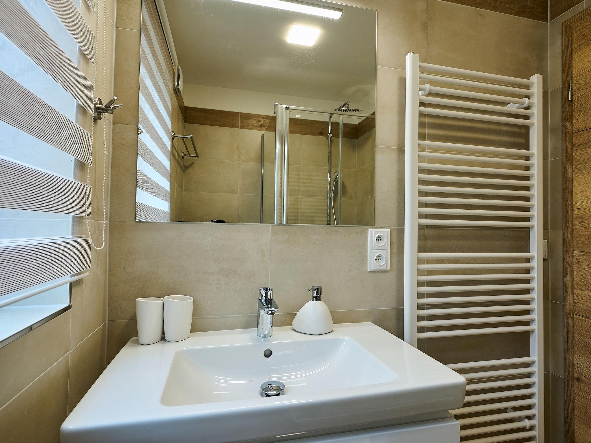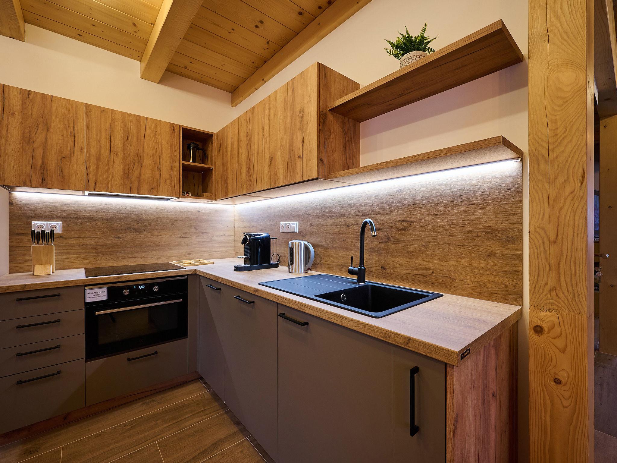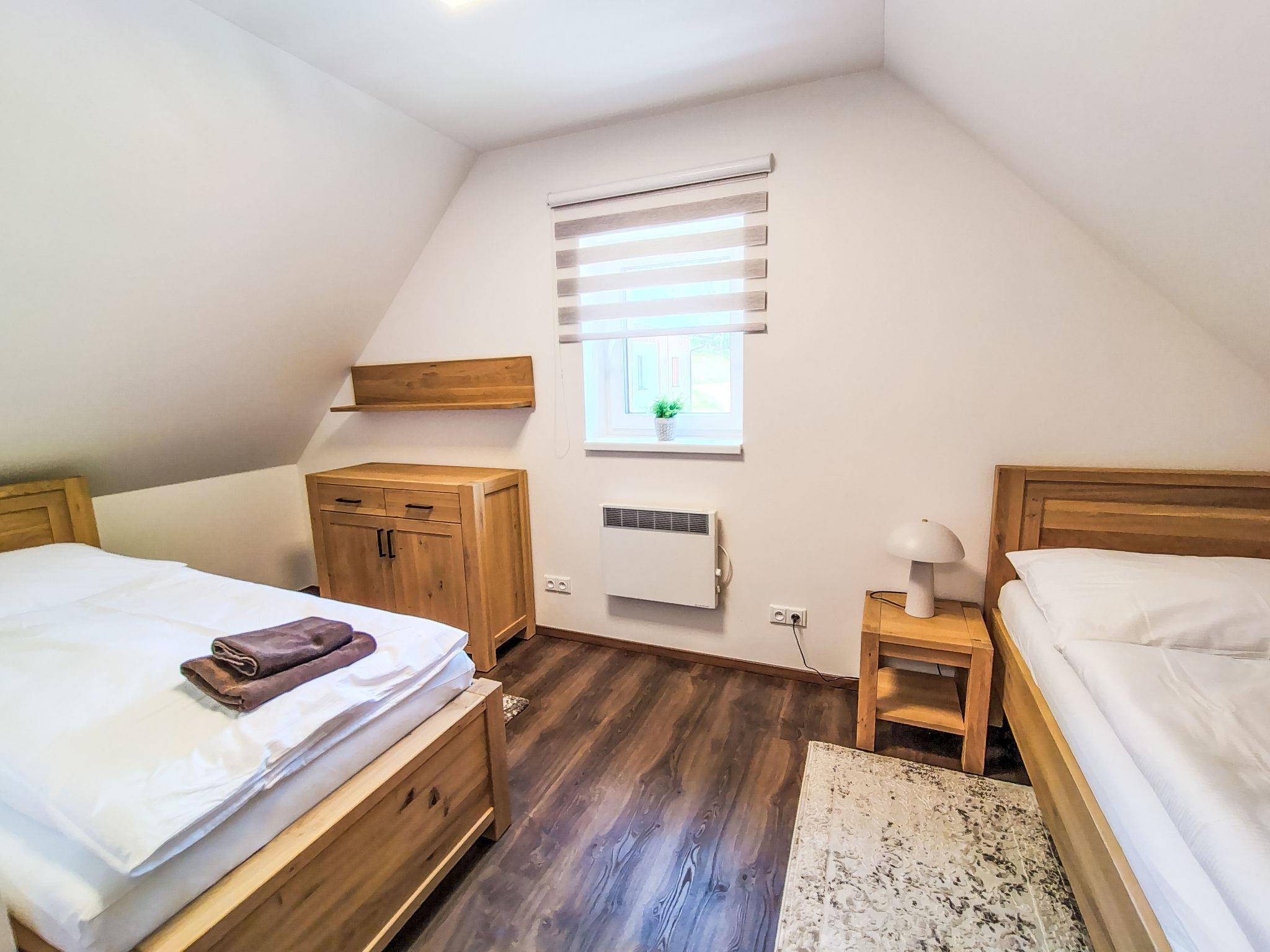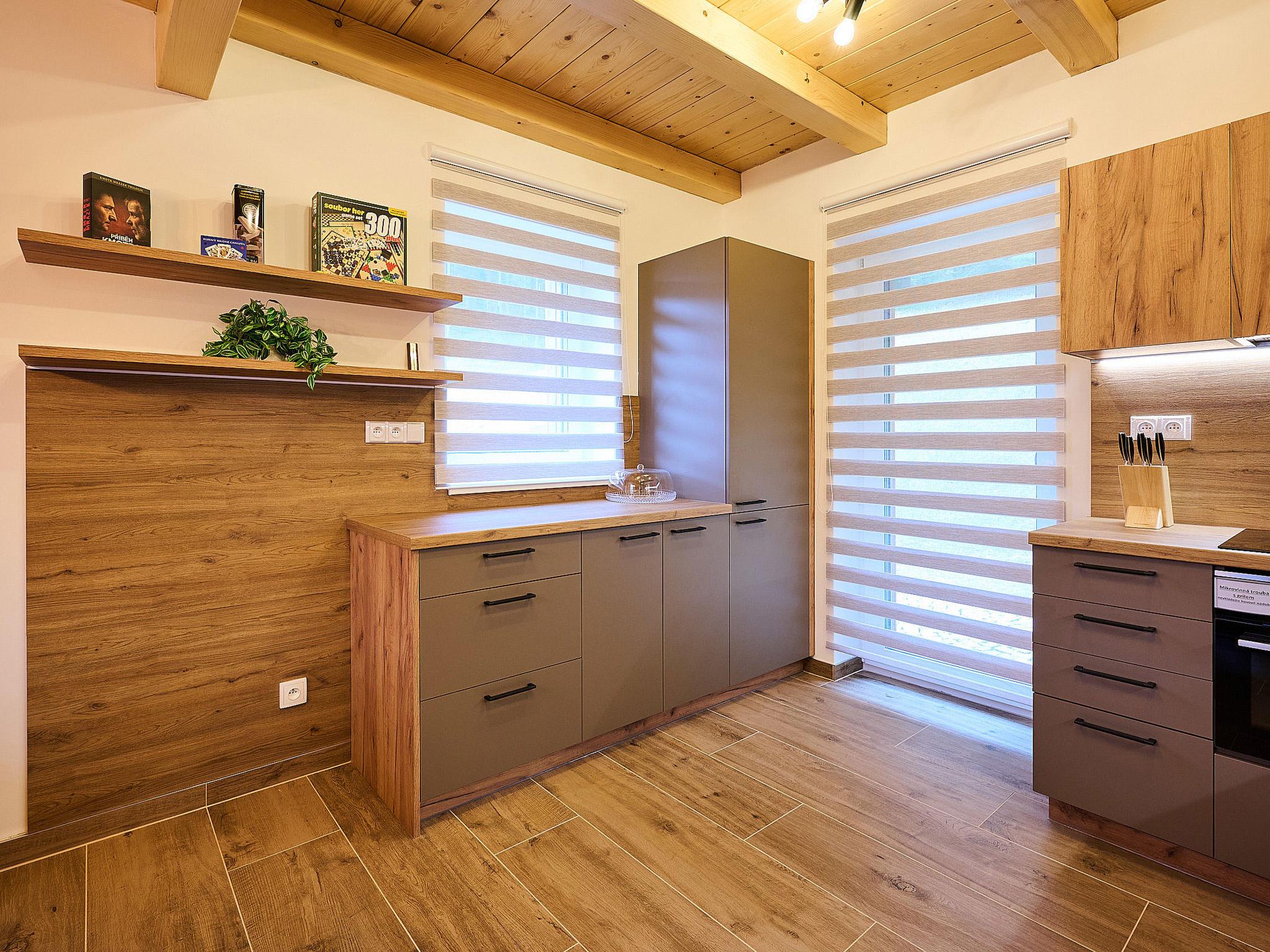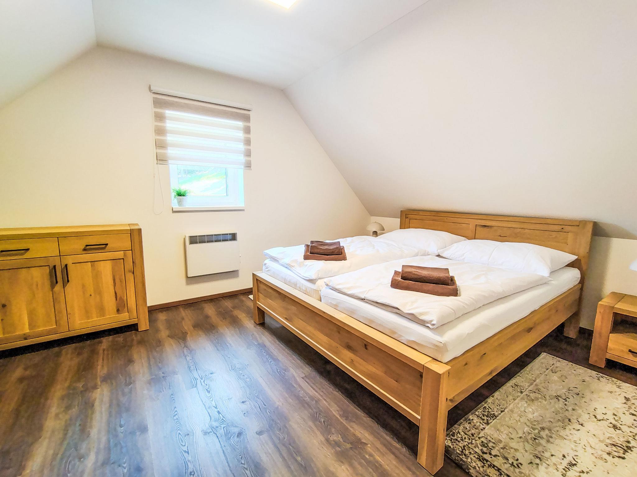 Very beautiful, comfortable chalet "Pod lesem", 2 storeys, detached, built in 2023. Outside the resort, along the wooded area, 2 km from the skiing area. Private: property. Terrace. In Winter: please take snow chains. Parking. Shop 2 km, grocery 2.5 km, supermarket 6 km, shopping centre 20 km, restaurant 2 km, bus stop "Jiretín pod Bukovou" 1.4 km, railway station "Jiretín pod Bukovou" 1.3 km, outdoor swimming pool 7 km, indoor swimming pool 20 km. Golf course (9 hole) 17 km, walking paths from the house 10 m, cycle lane 100 m, ski lift 2 km, slopes 2 km, ski rental 2 km, ski school 2 km, cross country ski track 100 m, children's playground 3 km. Nearby attractions: Rozhledna Cerná Studnice 6 km, Muzeum obrnené techniky Smržovka 6 km, Vodopády Jedlové 7 km, Kittelovo muzeum v Krásné 12 km, Aquapark Babylon, IQLandia, ZOO Liberec 22 km, Bozkovské jeskyne 22 km. Well-known ski regions can easily be reached: Tanvaldský Špicák 2 km, Filip Smržovka 4 km, Svetlý Vrch Albrechtice 4 km, Josefuv Dul 7 km, Severák, Bedrichov 12 km. Hiking paths: Hrebenovka.