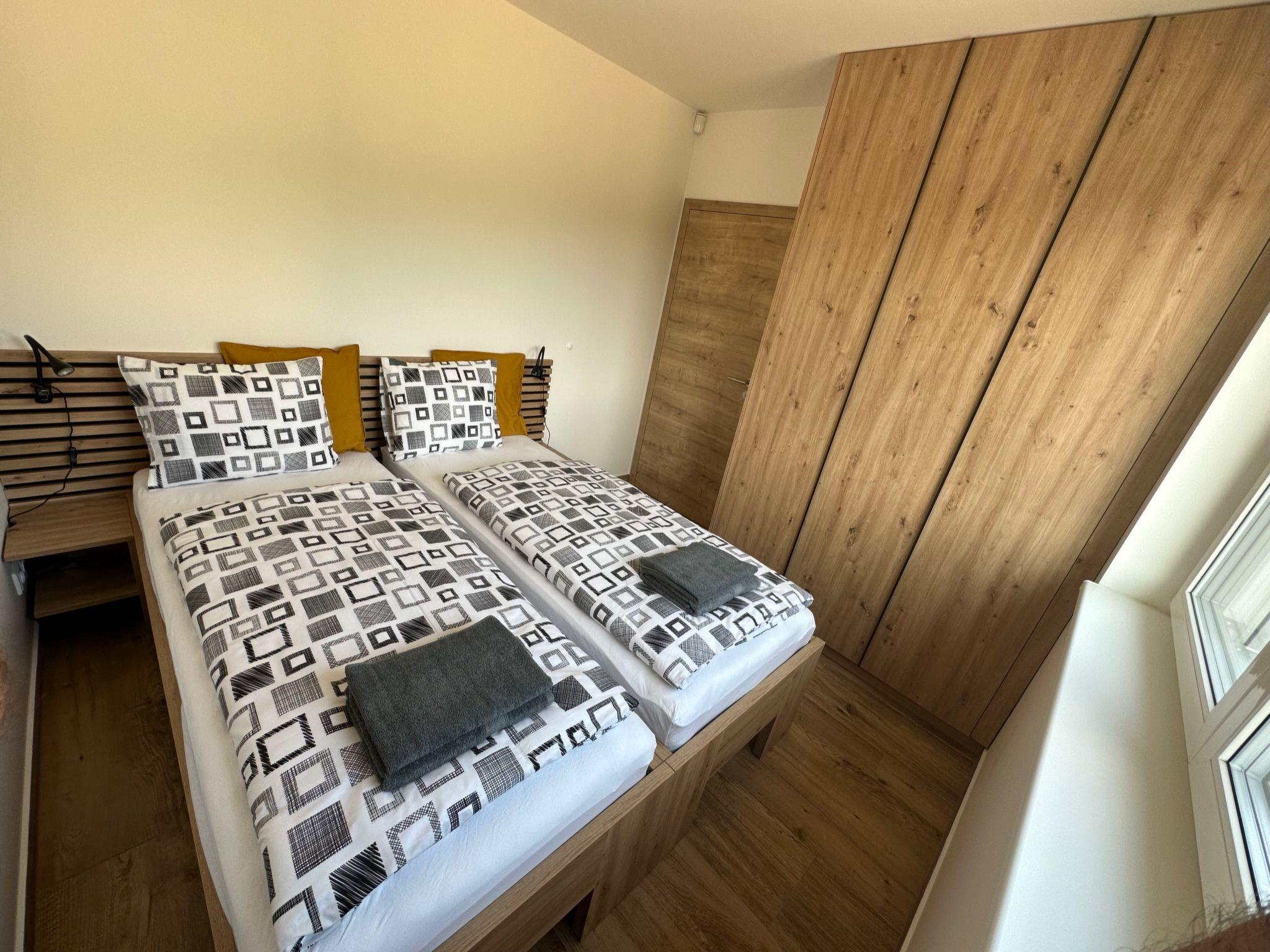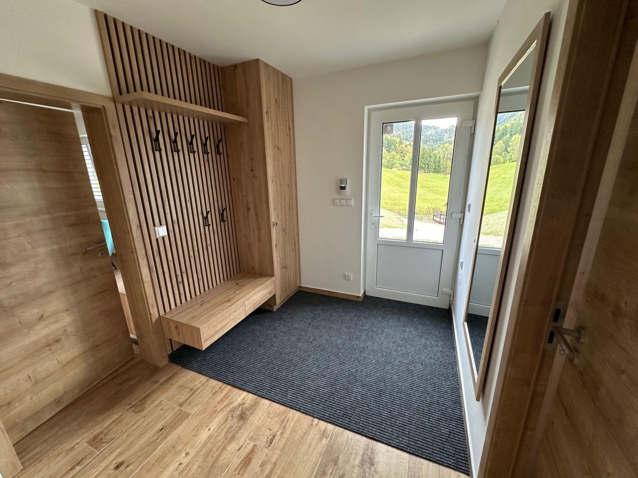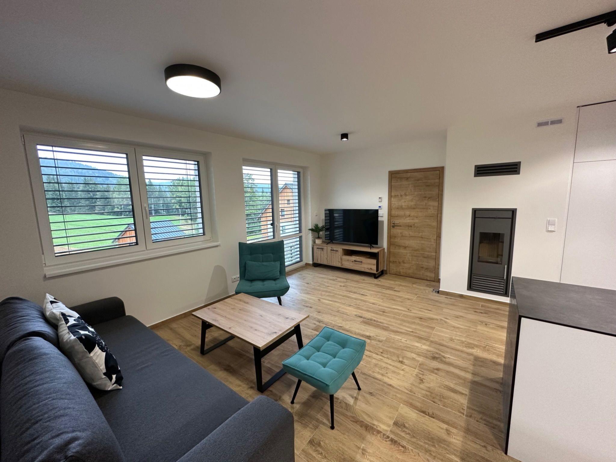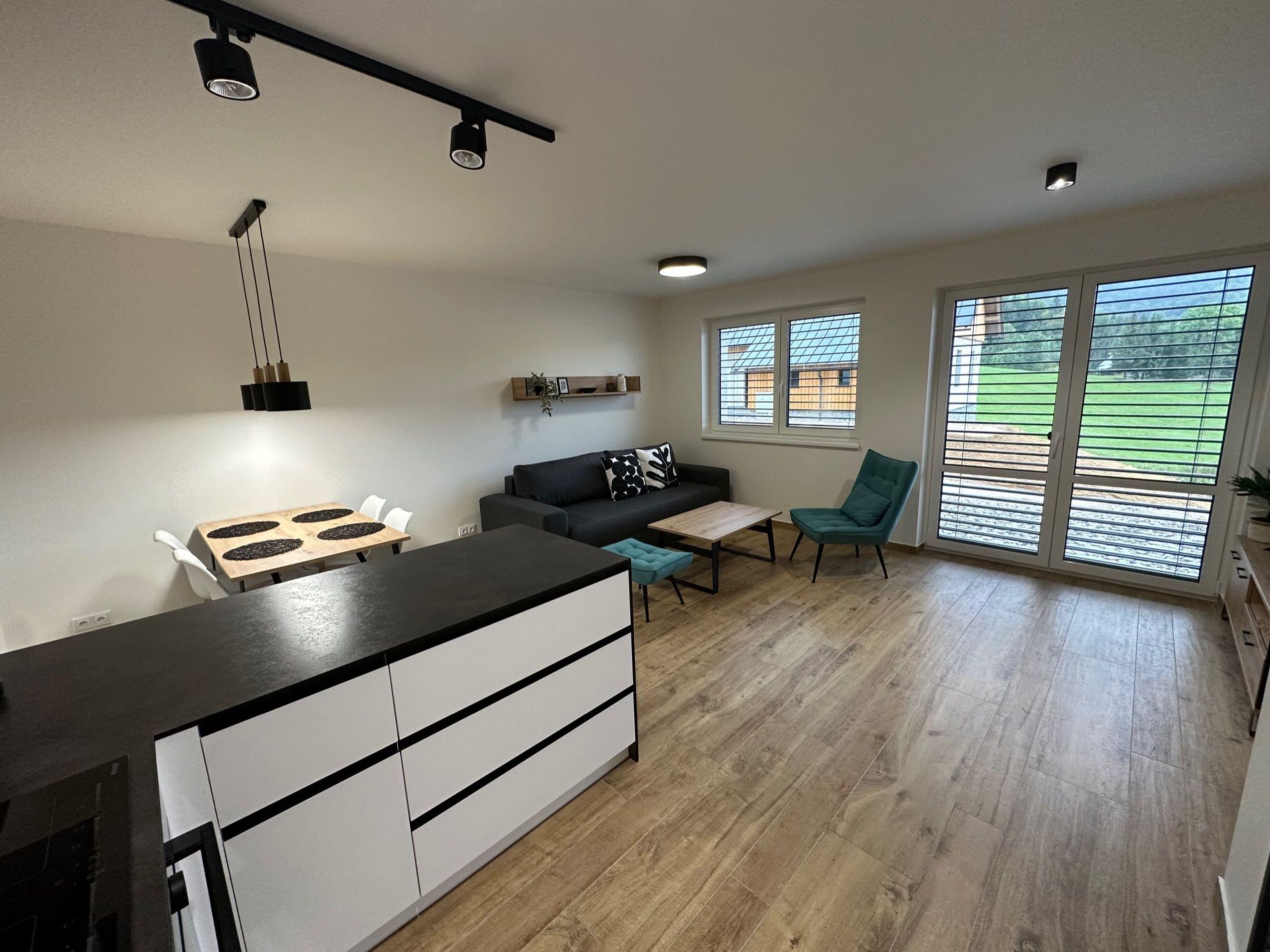 "13ka Ground Oasis with Terrace", 3-room apartment on the ground floor. Very beautiful and modern furnishings: open living room with panoramic window with Scandinavian wood stove and digital TV. Exit to the terrace. 2 rooms, each room with 1 double bed. Open kitchen (oven, dishwasher, 4 induction hot plates, toaster, kettle, microwave, electric coffee machine, Capsules for coffee machine (Nespreso)) with dining table. Shower/WC. Floor heating. Terrace furniture, barbecue, box-room. Beautiful panoramic view of the valley. Facilities: washing machine, children's high chair, hair dryer. Internet (WiFi, free). Parking at 20 m. E-charging station. Please note: suitable for families. Non-smoking house.