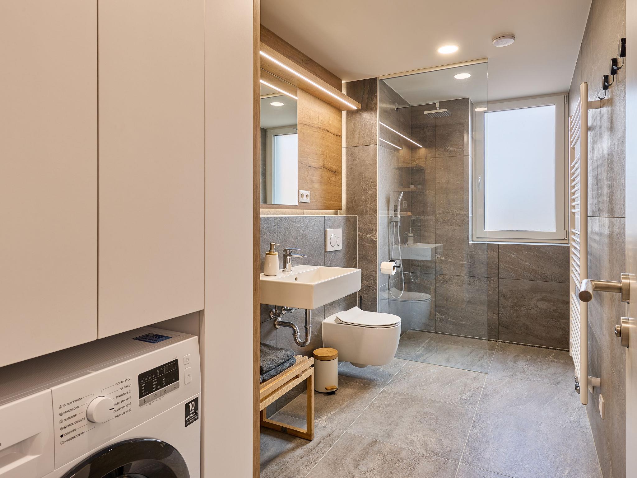 "Chic Mountain Terrace Lounge", 3-room apartment 69 m2, on the ground floor. Object suitable for 4 adults + 2 children. Comfortable and beautiful furnishings: 2 rooms, each room with 1 double bed. Exit to the terrace. Kitchen-/living room (oven, dishwasher, 4 induction hot plates, toaster, microwave, freezer, electric coffee machine, Capsules for coffee machine (Nespresso) extra) with 1 sofabed. Shower/WC, sep. WC. Large terrace. Box-room. Parking (2 cars). Suitable for families.