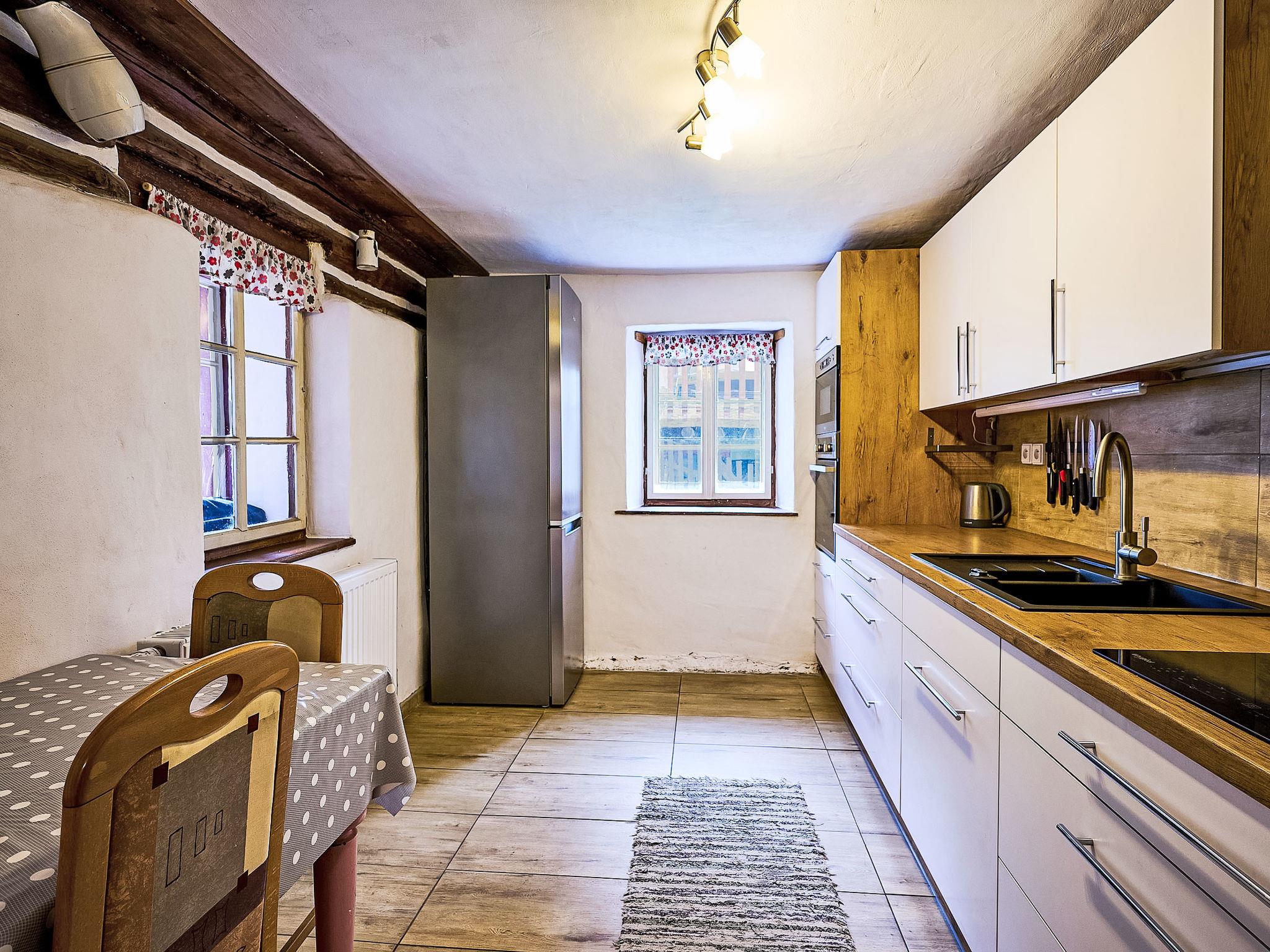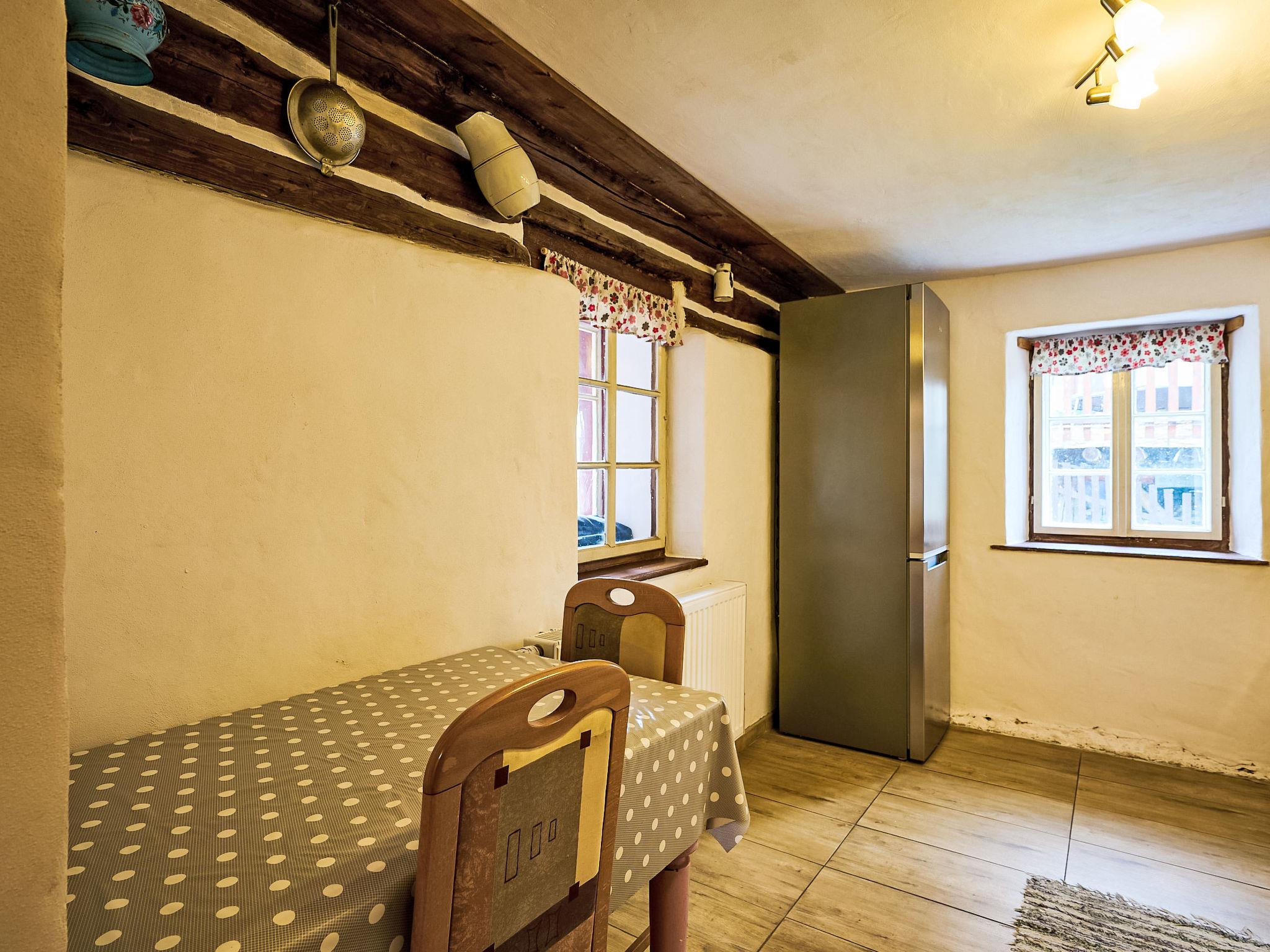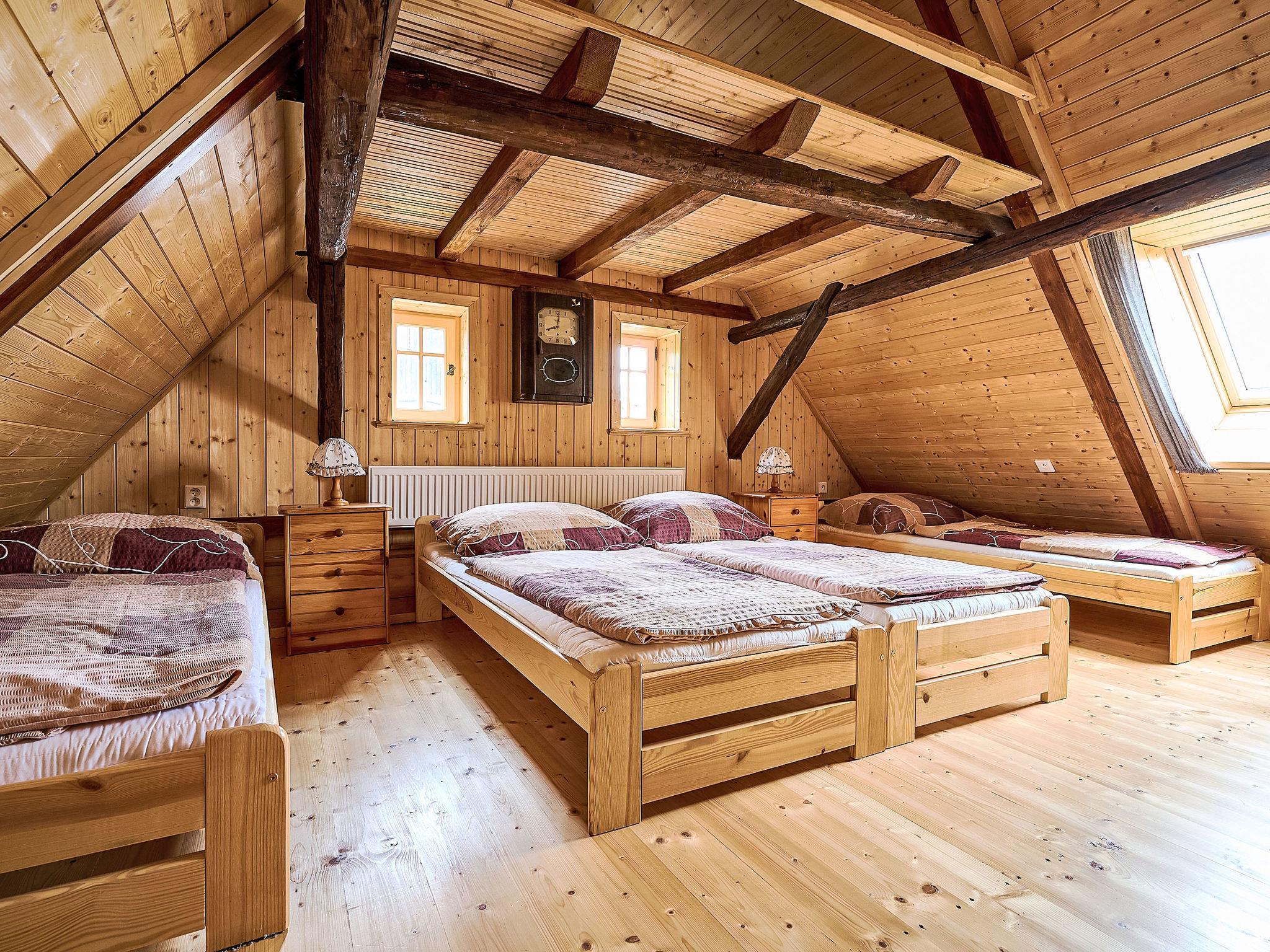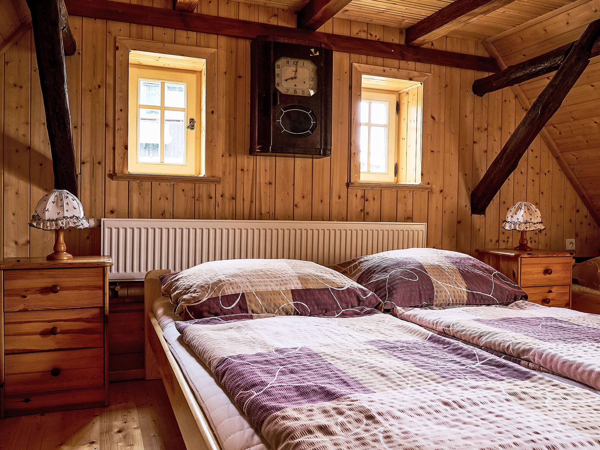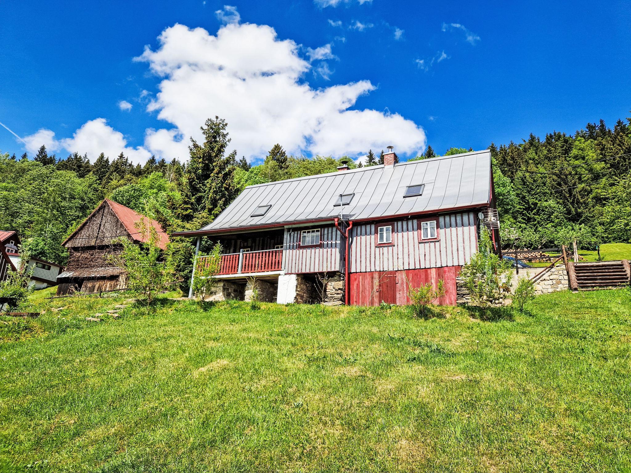 Very old "rustico" cottage "Jizerka", built in 1770. In a quiet, sunny position on top of a hill. Private: garden (not fenced). Terrace, garden furniture, fireplace, parking (for 2 cars). Shop 6 km, supermarket 6 km, restaurant 3 km, bar 4 km, café 3 m, bus stop "Ceský Šumburk, sokolovna" 400 m. Minigolf 3 km, ski lift 3 km, ski rental 3 km, ski school 3 km. Nearby attractions: Štepánka 3.5 km, Maják J. Cimrmana 3 km, Terezínka 7 km, Malý Špicák Tanvald 8 km, Svetlý vrch 10 km, Termy Cieplickie(Pl) 40 km. Well-known ski regions can easily be reached: Rejdice 7 km, Paseky nad Jizerou 10 km, U Cápa 3 km. Hiking paths: Bukovec 13 km, Jizerka 12km, Bozkov, Riegrova stezka 30 km, Cerná Studnice 10 km. Please note: suitable for families. The owner does not accept any groups.