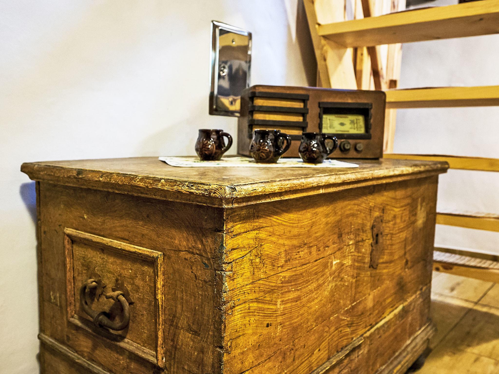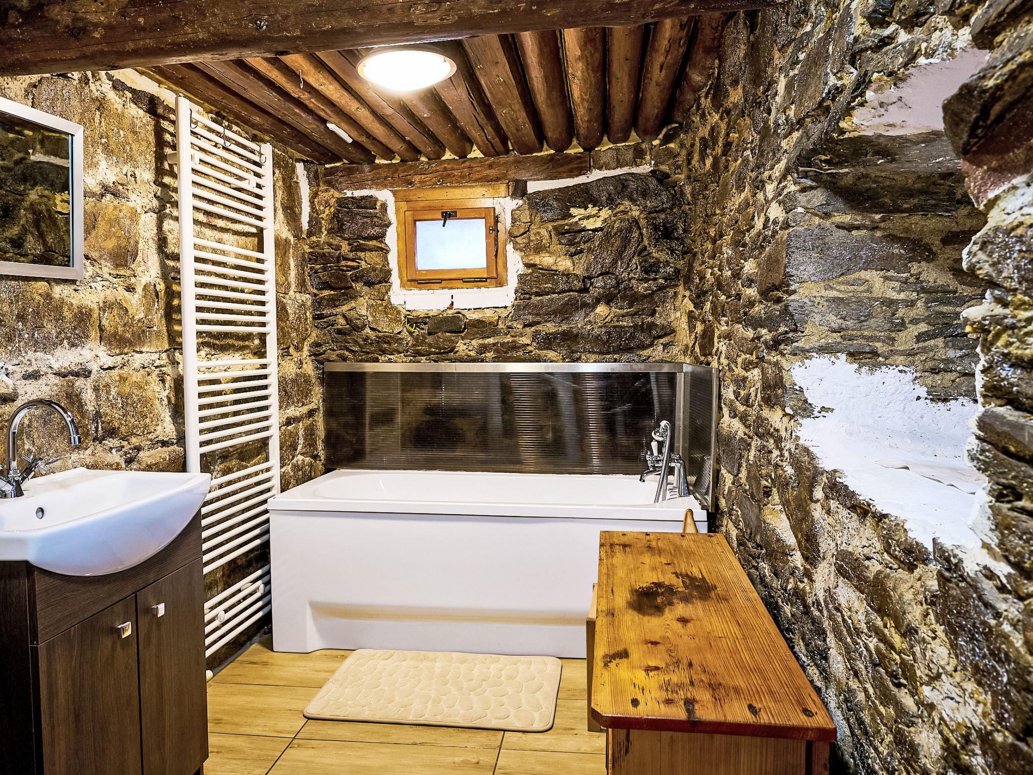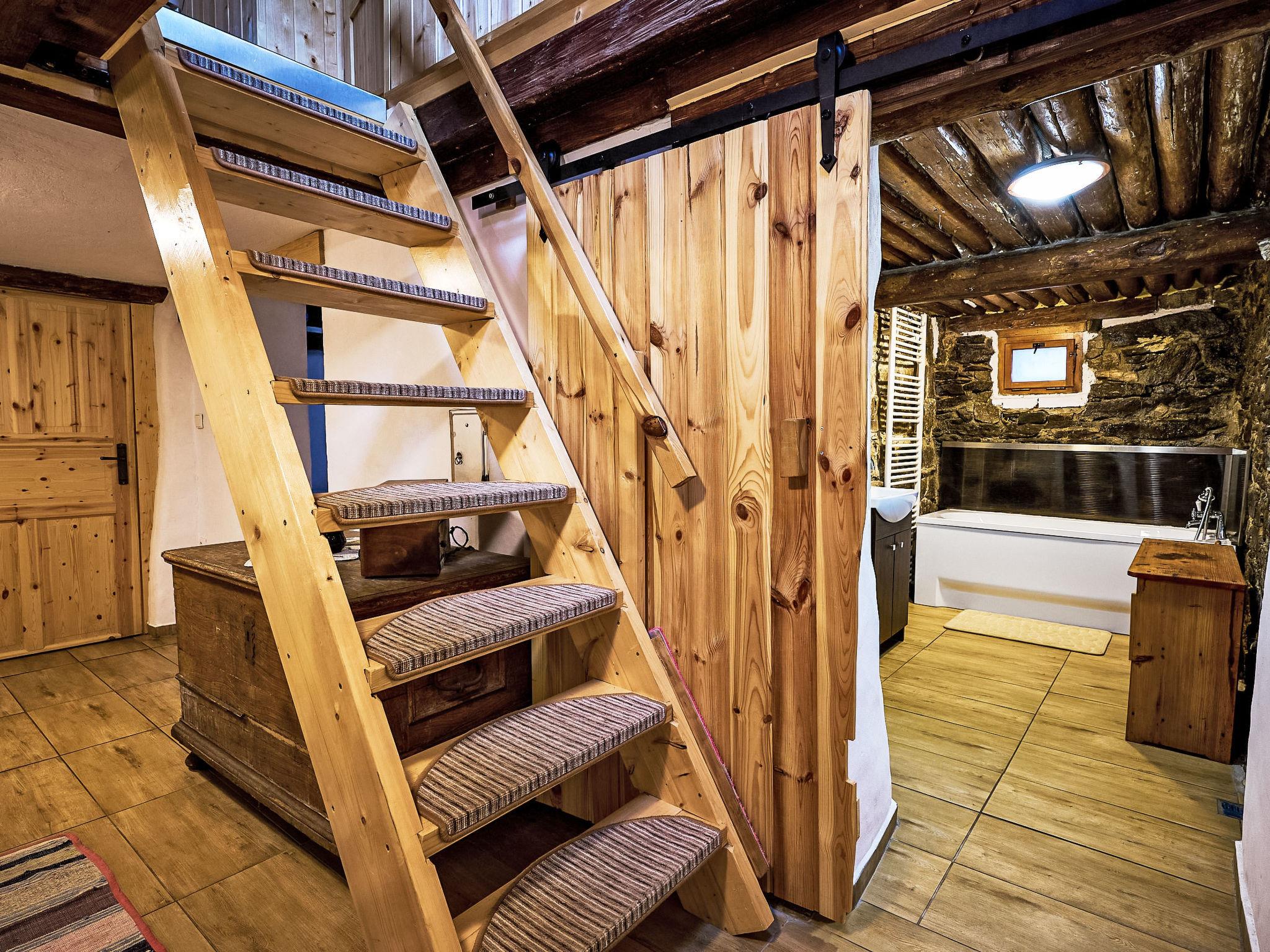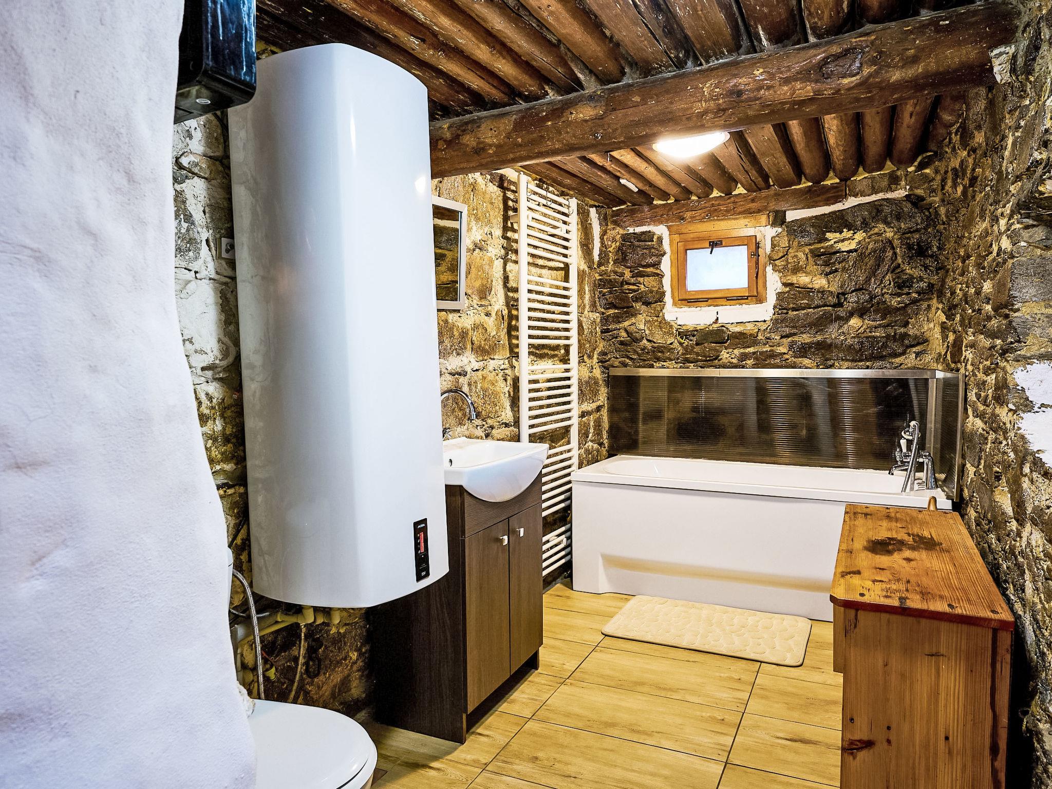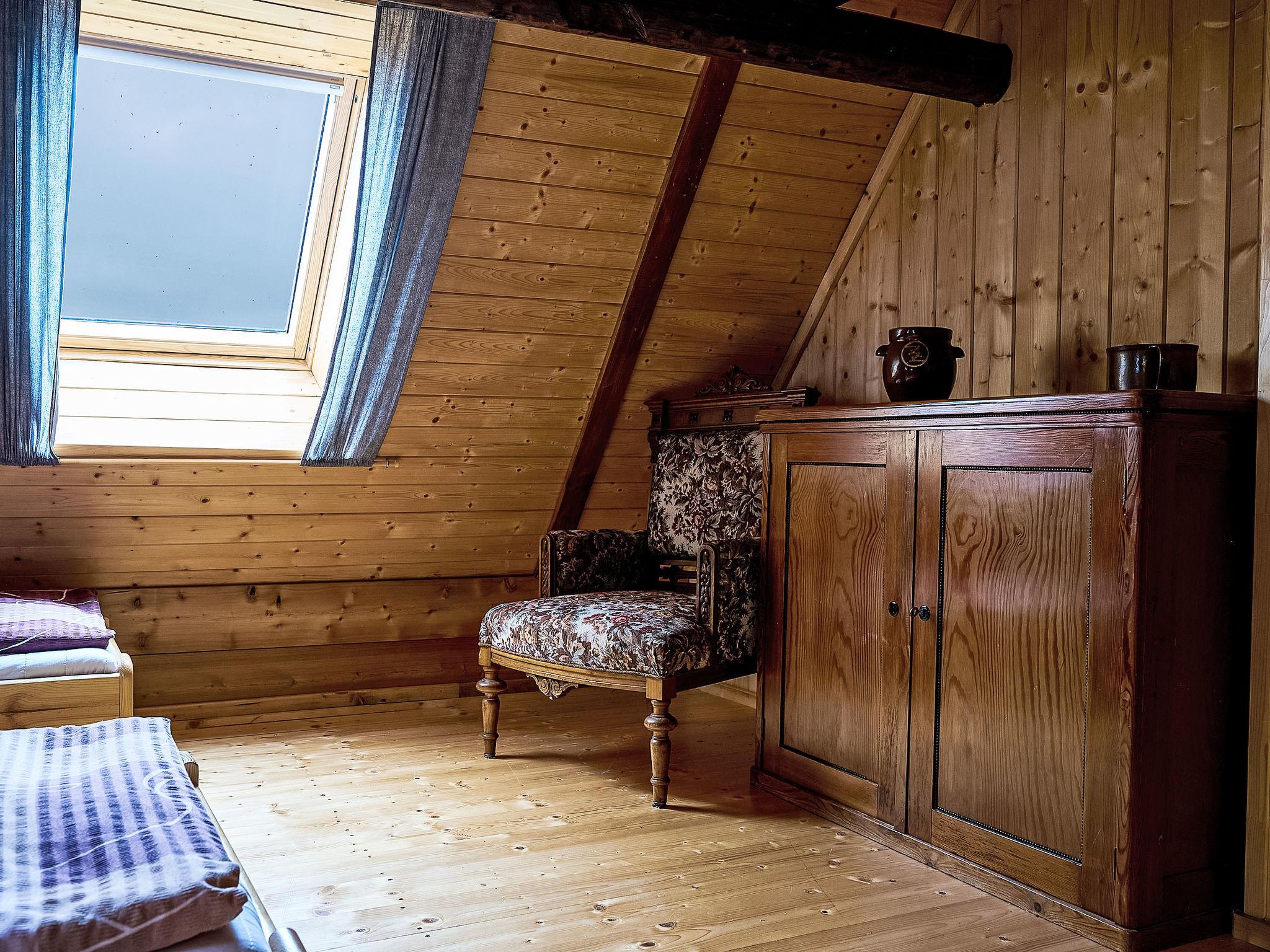 3-room cottage. Rustic and wooden furniture furnishings: living room with 1 sofabed, Scandinavian wood stove, dining table and TV. Kitchen (oven, 4 ceramic glass hob hotplates, kettle, microwave, freezer) with Scandinavian wood stove. Bath/WC. Electric heating. 2nd upper floor: 1 room 20 m2, with sloping ceilings with 2 beds and 1 double bed. 1 room with sloping ceilings with 1 bed and 1 double bed. Box-room. Beautiful panoramic view of the mountains and the garden. Facilities: Internet (WiFi, free). Please note: non-smoking house.