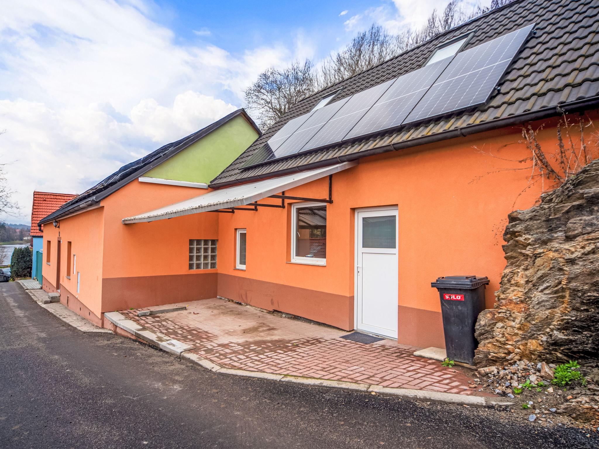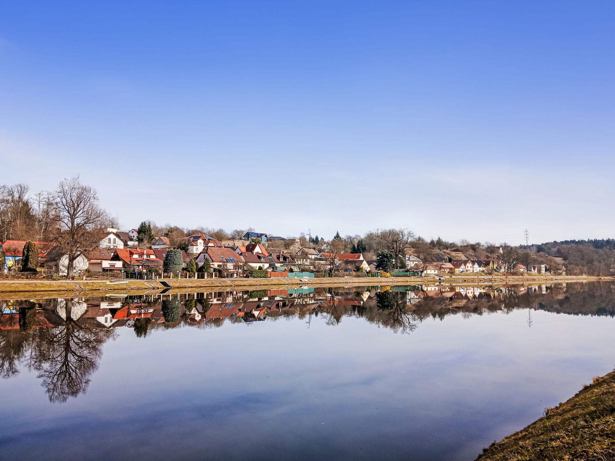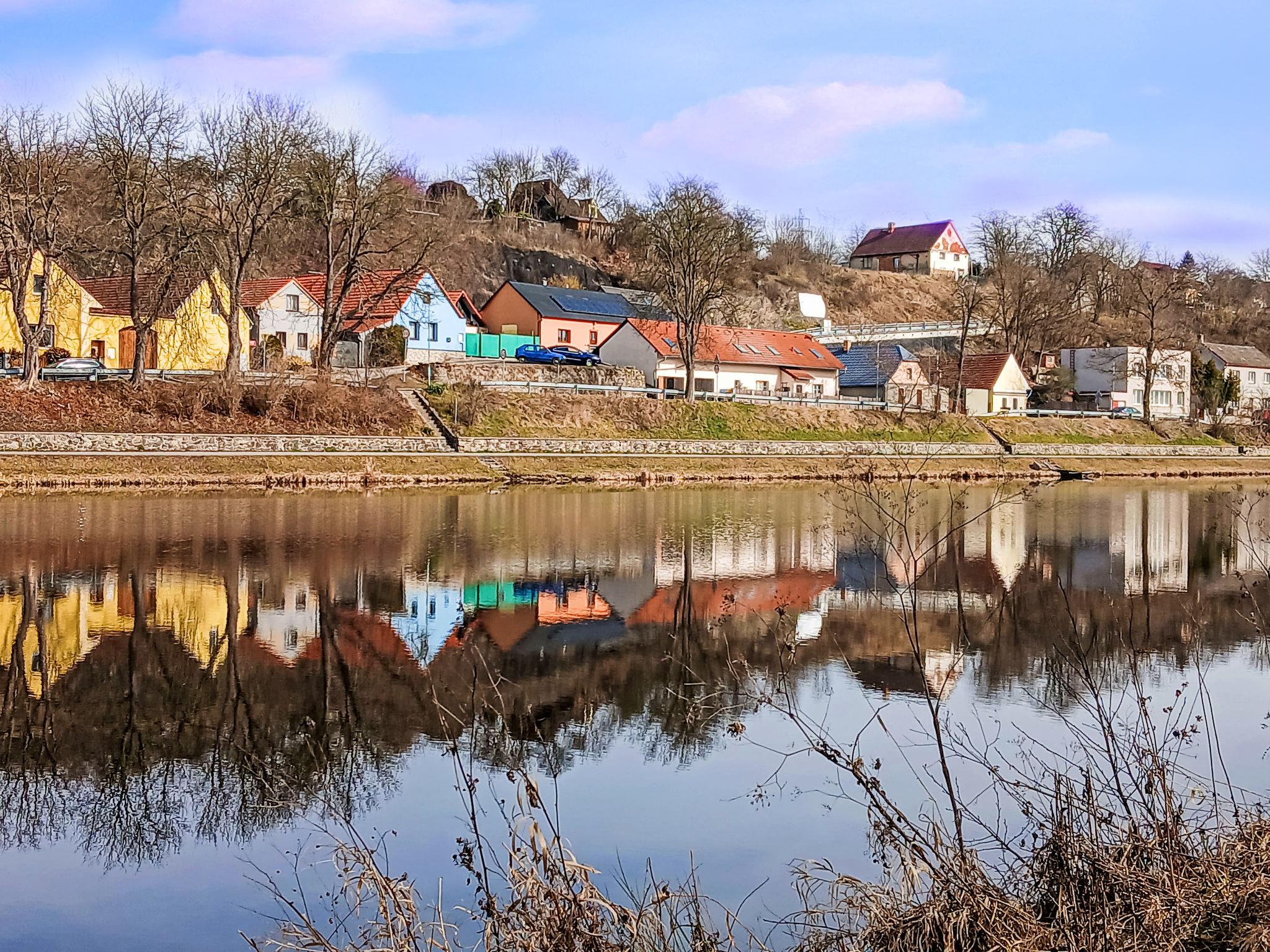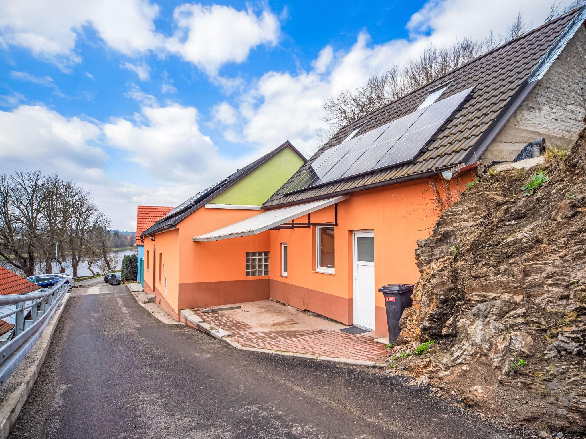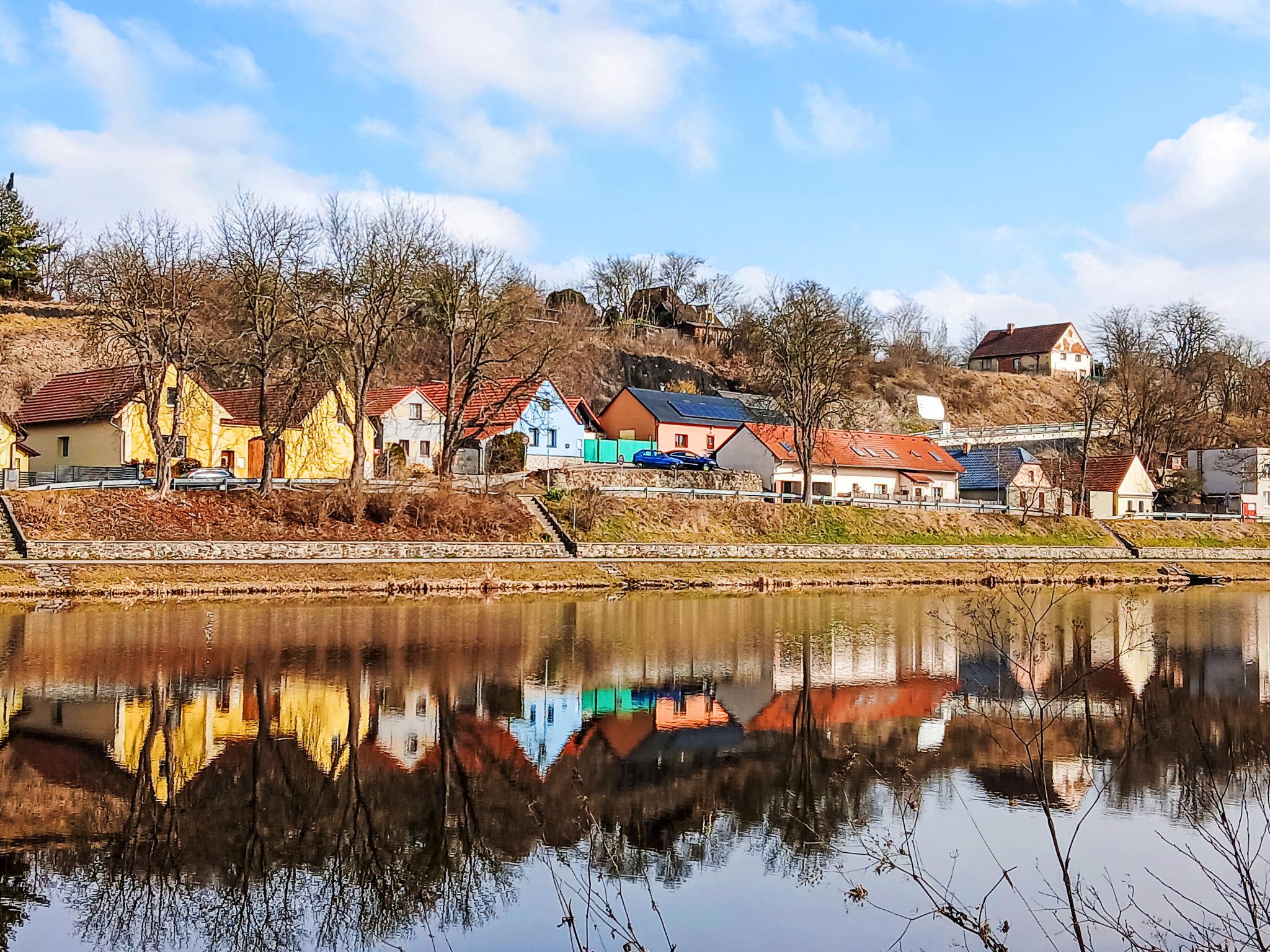 Small, simple house semi-detached. In a sunny, elevated position, 100 m from the river. Private: terrace, garden furniture, barbecue. Steep motor access to the house. Parking at the house. Supermarket 3 km, restaurant 2 km, café 3 km, pub garden 1.9 km, bus stop "Týn nad Vltavou, Zadní Podskalí" 1.4 km. Nearby attractions: Zámek Týn nad Vltavou 4 km, Prírodovedné muzeum Semenec 3.5 km, Zámek Bechyne 13 km. Well-known lakes can easily be reached: Vodní nádrž Korensko 7 km. Hiking paths: Cervený Vrch 4.9 km. Please note: Owner lives in separate semi-detached house. The owner has a dog.