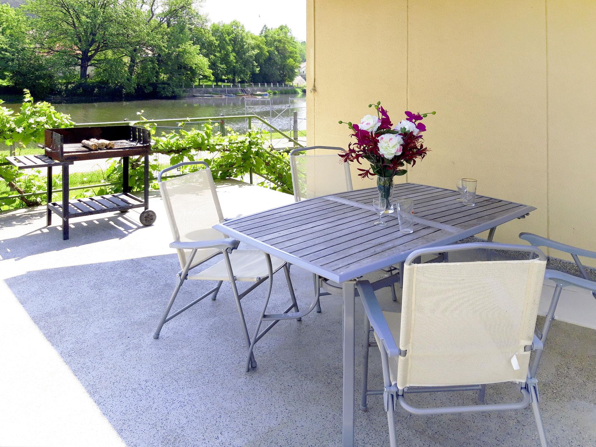 4-room house 150 m2 on 2 levels. Renovated in 2012, cosy furnishings: living room with satellite TV, radio and CD-player. 1 room with 3 beds. Open kitchen (oven, 4 ceramic glass hob hotplates, toaster, kettle, microwave, electric coffee machine) with dining table. Shower, sep. WC. Electric heating. Upper floor: 1 room with 2 beds and 1 folding bed. 1 room with 2 beds. Shower, sep. WC. Electric heating. Terrace. Terrace furniture, barbecue (portable). Marvellous view of the river. Facilities: washing machine, children's high chair, baby cot. Internet (WiFi, free). Please note: maximum 2 pets/ dogs allowed. Fire extinguisher.