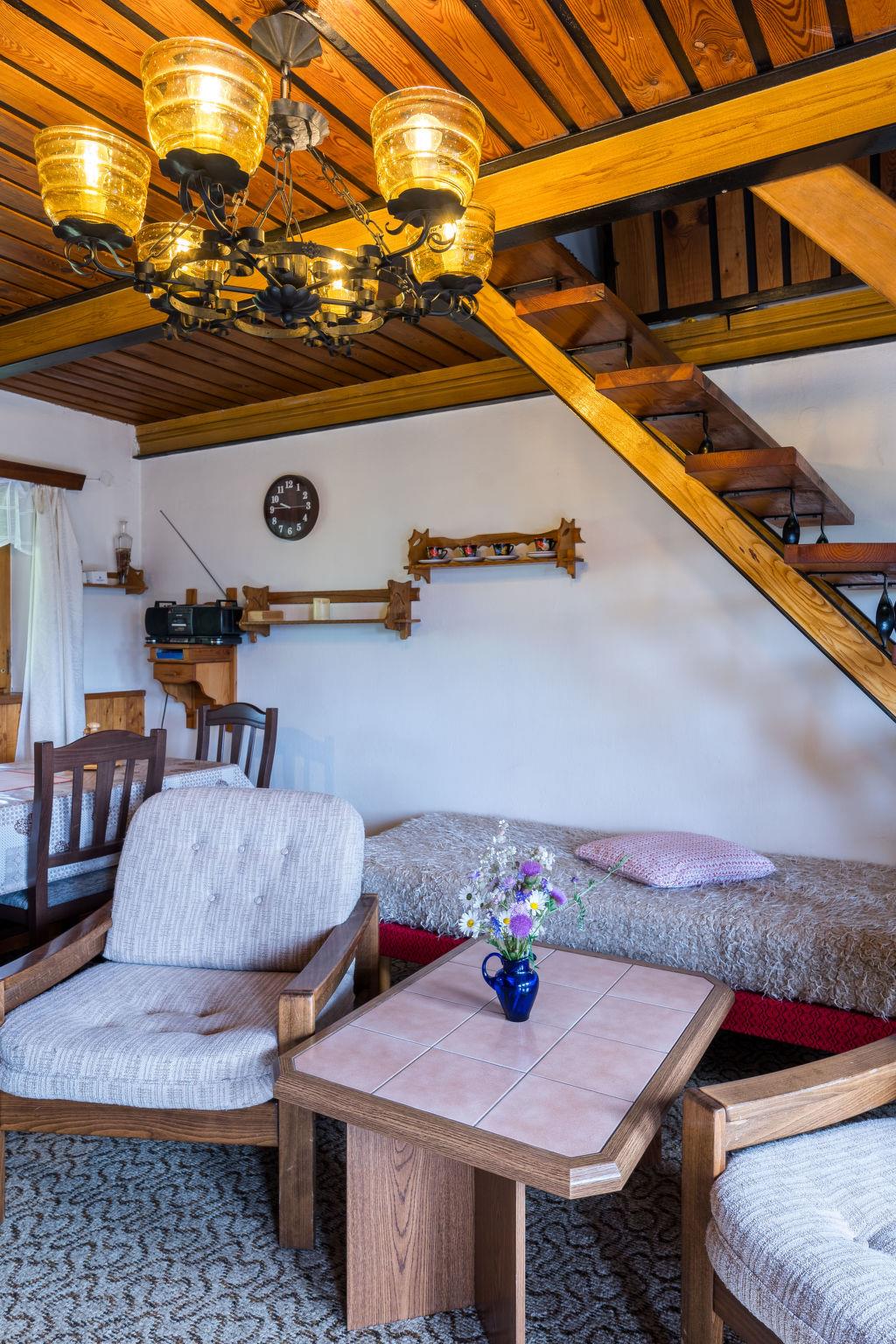 "Hoja 1", 3-room semi-detached house on 2 levels. Spacious, comfortable furnishings: living/dining room with open-hearth fireplace, dining table, TV and heating stove. 1 double bedroom with electric heater. Kitchen (2 ceramic glass hob hotplates, kettle, microwave, electric coffee machine). Shower, sep. WC. Wood heating. Upper floor: 1 room with 2 double beds and electric heater. Very beautiful panoramic view of the countryside. Suitable for families. Maximum 1 pet/ dog allowed.