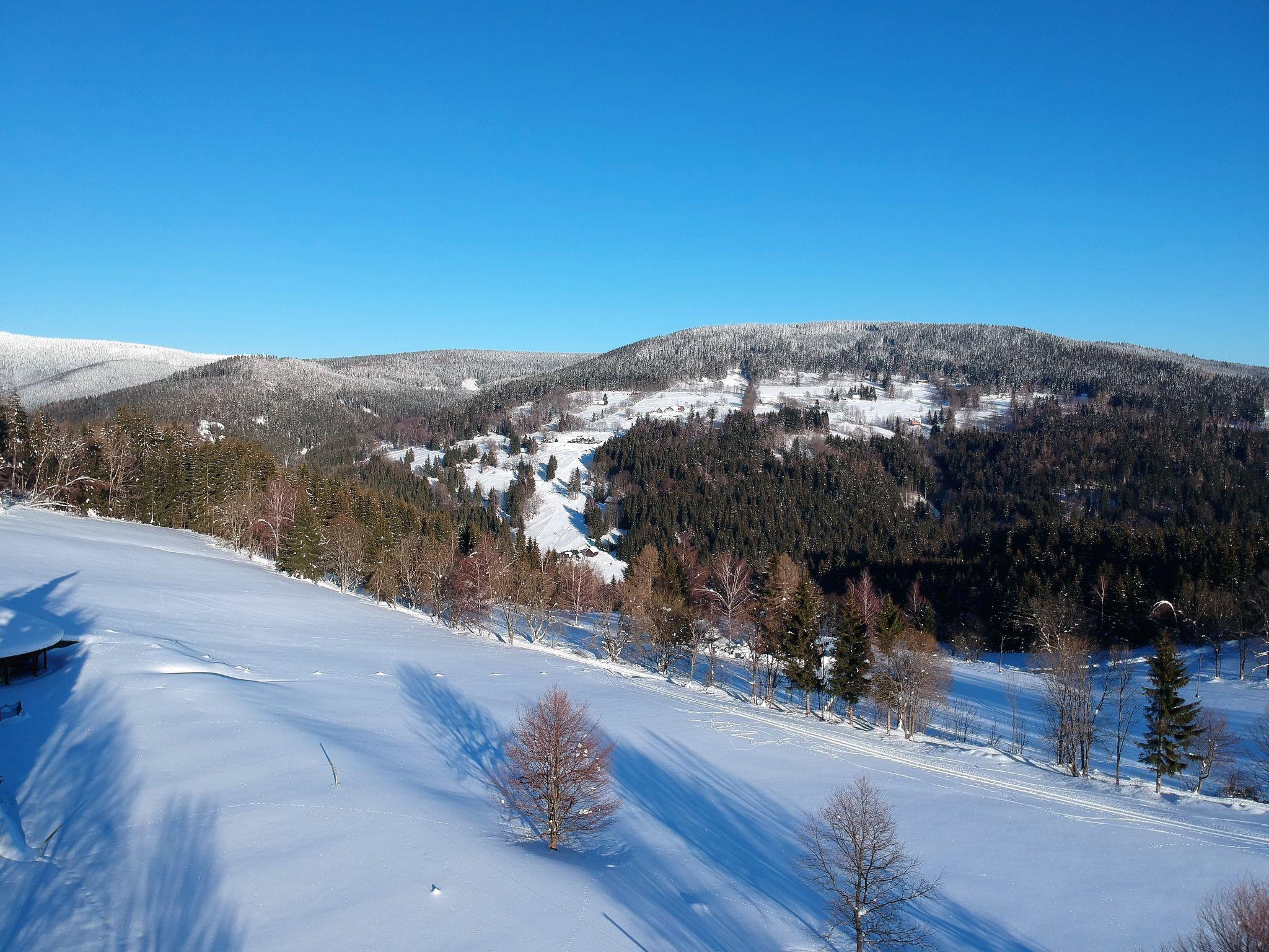 Vítkovice 8 km from Benecko: Cosy cottage "Hoja", surrounded by trees and meadows. 2 apartments in the property. On the outskirts, 100 m from the edge of the forest, 900 m from the skiing area, in a cul-de-sac, in the countryside. For shared use: property, lawn for sunbathing. Terrace, garden furniture. In the house: WiFi. Public parking 500 m. Grocery 2 km, restaurant 1 km, bus stop "Vítkovice, kostel" 1.3 km, railway station "Víchová nad Jizerou" 10 km, outdoor swimming pool 8 km, indoor swimming pool 11 km. Golf course (9 hole) 26 km, riding stable 5 km, walking paths from the house, cycle lane 50 m, ski lift 1 km, chair lift 1 km, ski rental 1 km, ski school 1 km, cross country ski track 200 m, children's playground 2 km. Nearby attractions: Bikepark Aldrov 1,5 km, Farma Hucul 5 km, Rautis Poniklá - perlickové ozdoby 7 km, Zámek Jilemnice, Rokytnice nad Jizerou 11 km, Zámek Vrchlabí 17 km, Harrachov 24 km, Špindleruv Mlýn 30 km, Pec pod Snežkou 45 km. Well-known ski regions can easily be reached: Vurmovka, Aldrov 1 km, Janova Hora 2 km, Rokytnice n. J. 10 km, Benecko 15 km, Herlíkovice 20 km, Špindleruv Mlýn 30 km. Hiking paths: Krkonošský národní park. Please note: Loading and unloading of baggage is possible at the holiday house. The photograph shows a typical example.