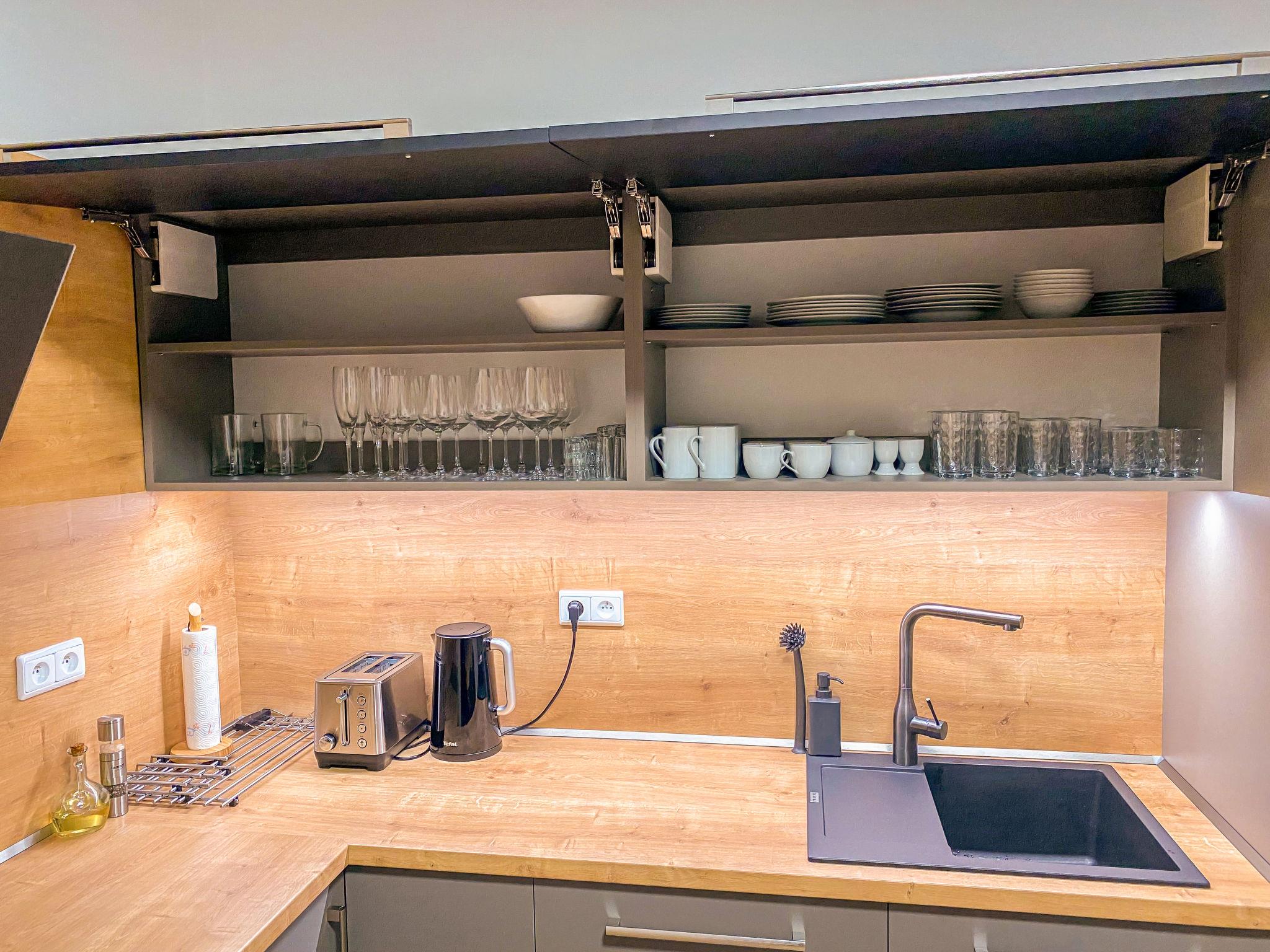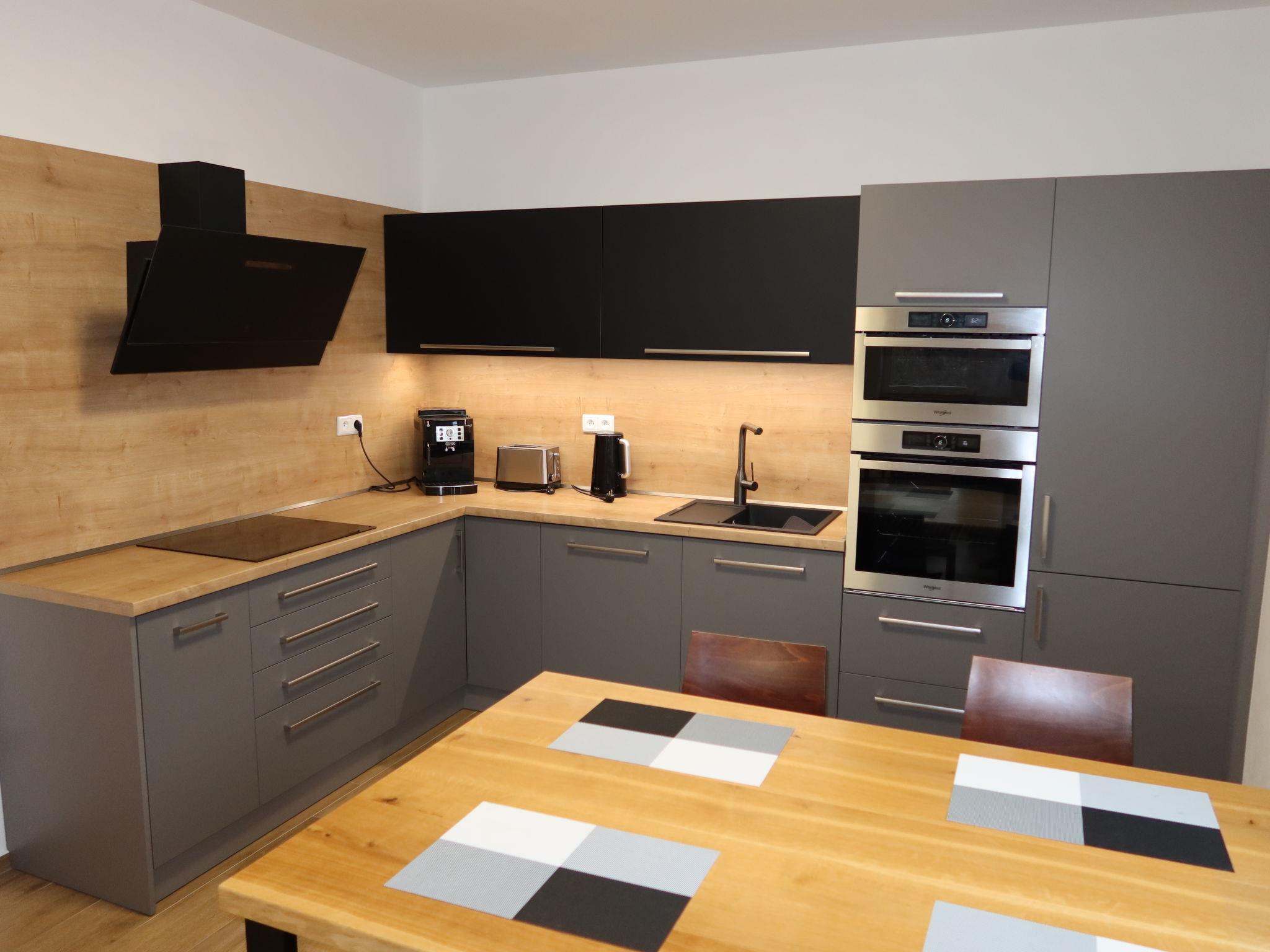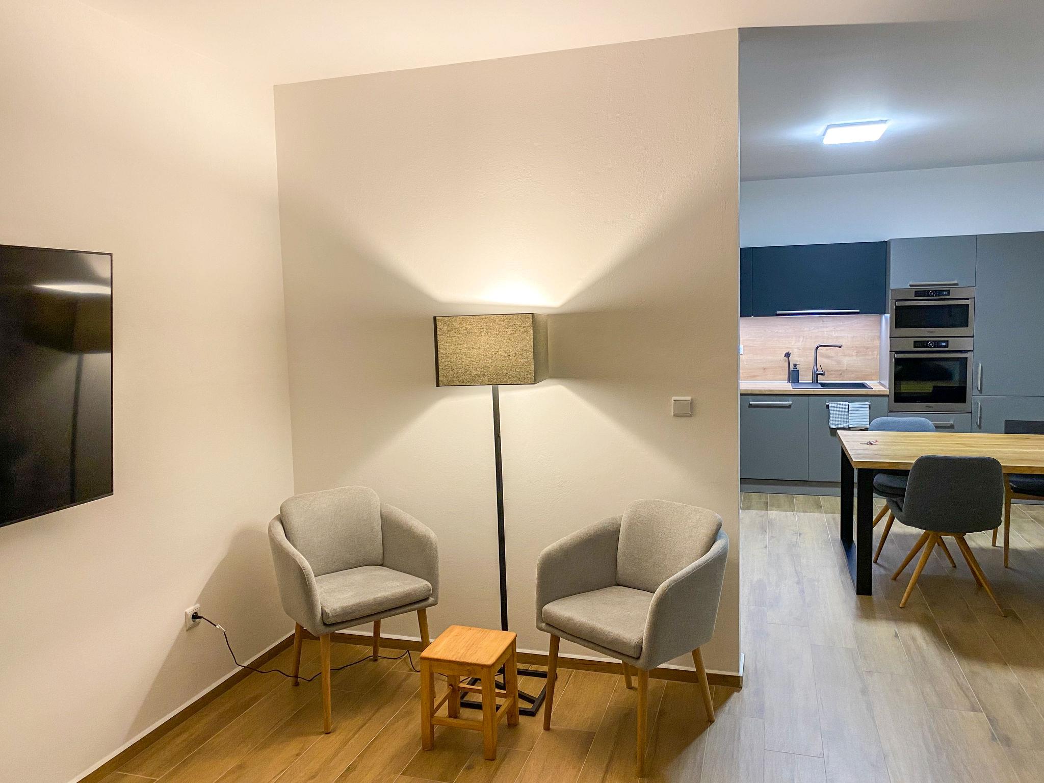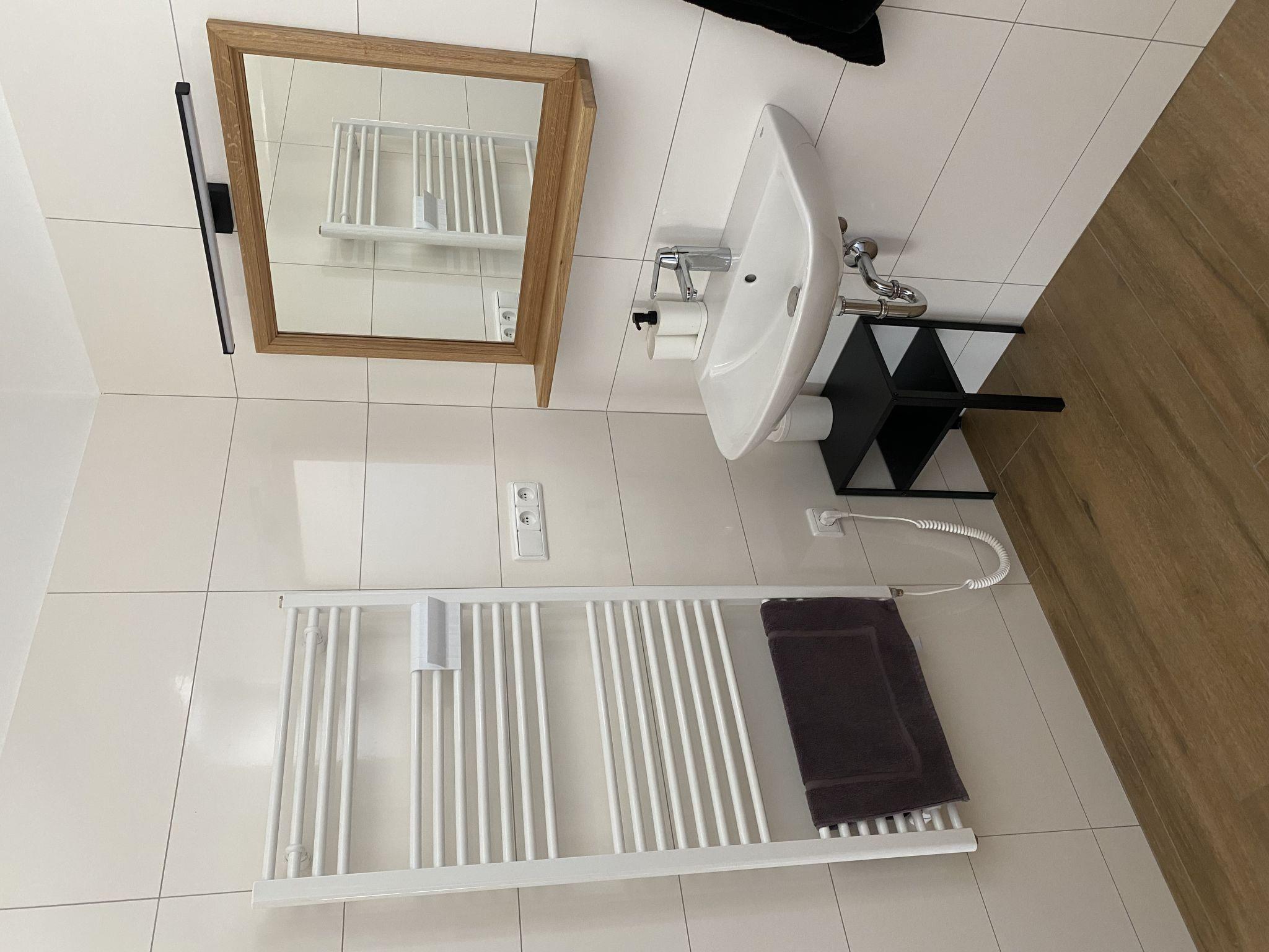 4-room house on 2 levels. Spacious and bright, fully renovated in 2021, very comfortable and beautiful furnishings: open large living room with 1 double sofabed (140 cm, length 190 cm), TV (flat screen). 1 room with 2 beds (100 cm, length 200 cm), 1 double bed (200 cm, length 200 cm). Open kitchen (oven, dishwasher, 4 induction hot plates, toaster, kettle, microwave, freezer) with dining table. Shower/WC. Floor heating. Upper floor: open large living room with 1 double sofabed (140 cm, length 190 cm), TV (flat screen). 1 room with 2 beds (100 cm, length 200 cm), 1 double bed (200 cm, length 200 cm). Open kitchen (oven, dishwasher, 4 induction hot plates, toaster, kettle, microwave, freezer) with dining table. Shower/WC. Floor heating. Terrace. Terrace furniture, barbecue (portable). Facilities: washing machine, children's high chair, baby cot. Internet (WiFi, free). Please note: suitable for families. Non-smoking house.