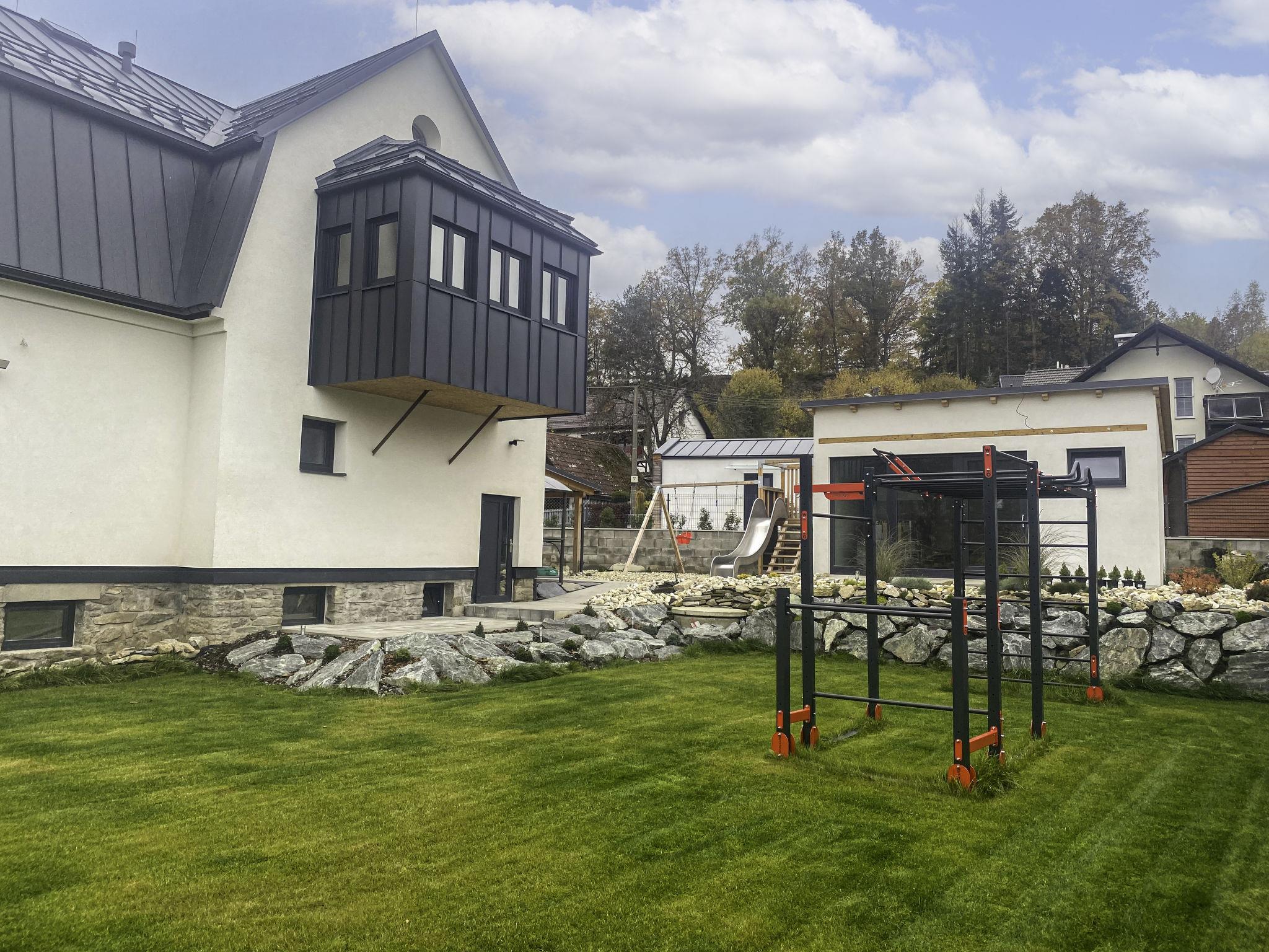 Very beautiful villa "Velké Losiny", 2 storeys, built in 1930, renovated in 2021. 2 apartments in the property. In the resort, 500 m from the centre, in a quiet position, 8 km from the skiing area, in a cul-de-sac. Private: property 750 m2 (fenced), garden. Terrace, garden furniture, barbecue, children's playground (slide, swing). In the house: storage room for skis, central heating system, washing machine, tumble dryer. Parking (for 6 cars) on the premises. Grocery 600 m, supermarket 700 m, shopping centre 10 km, restaurant, café, bus stop 900 m, railway station "Velké Losiny" 900 m, 500 m, thermal baths "Velké Losiny" 500 m. Tennis 9 km, minigolf 700 m, sports centre 9 km, walking paths from the house, cycle lane 100 m, ski lift 8 km, chair lift 10 km, skisport facilities 10 km, slopes 8 km, ski rental 10 km, ski school 10 km, children's ski school 10 km, cross country ski track 8 km, children's playground 1.5 km. Nearby attractions: Termály 500 m, Muzeum papíru, rucní papírna 1 km, Zámek Velké Losiny 1.8 km, Šumperk 11 km, Vodní nádrž Dlouhé stráne 20 km, Jeseník 35 km. Well-known ski regions can easily be reached: Kouty nad Desnou 10 km, Cervenohorské sedlo 20 km, Praded 50 km. Hiking paths: CHKO Jeseníky.
